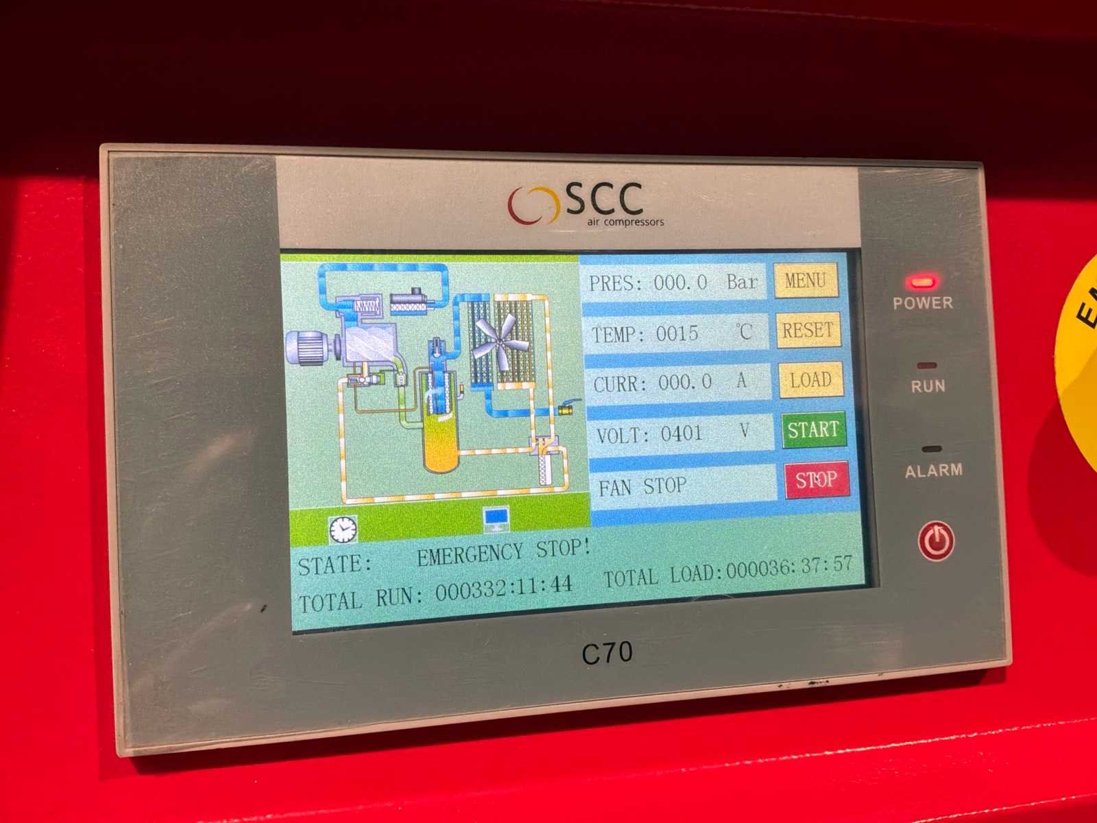 No Merk: SCC Type: Smart 18 TD Bouwjaar: 2022 Serienummer: 202214378 Capaciteit.: 10bar Luchtstroom: 2940l/min Vermogen: 18.5kW Afgelezen urenstand: 332 Luchtdroger: true Aansluiting: 400V Totale afmeting L: 1000mm Totale afmeting Breedte: 2100mm Totale afmeting Hoogte: 1880mm