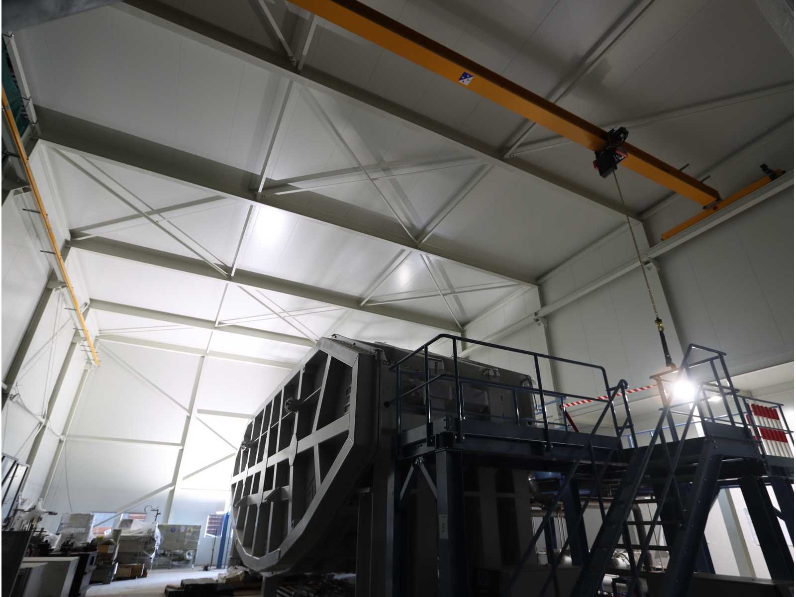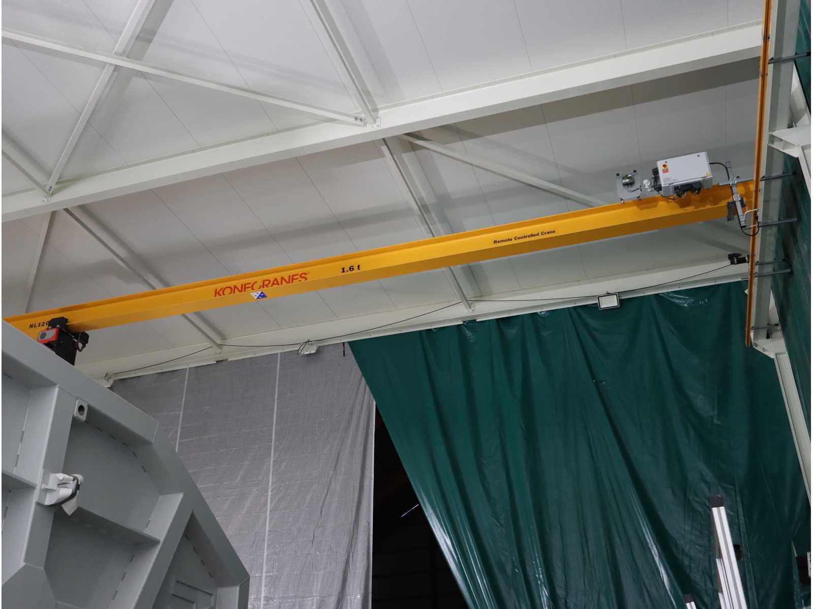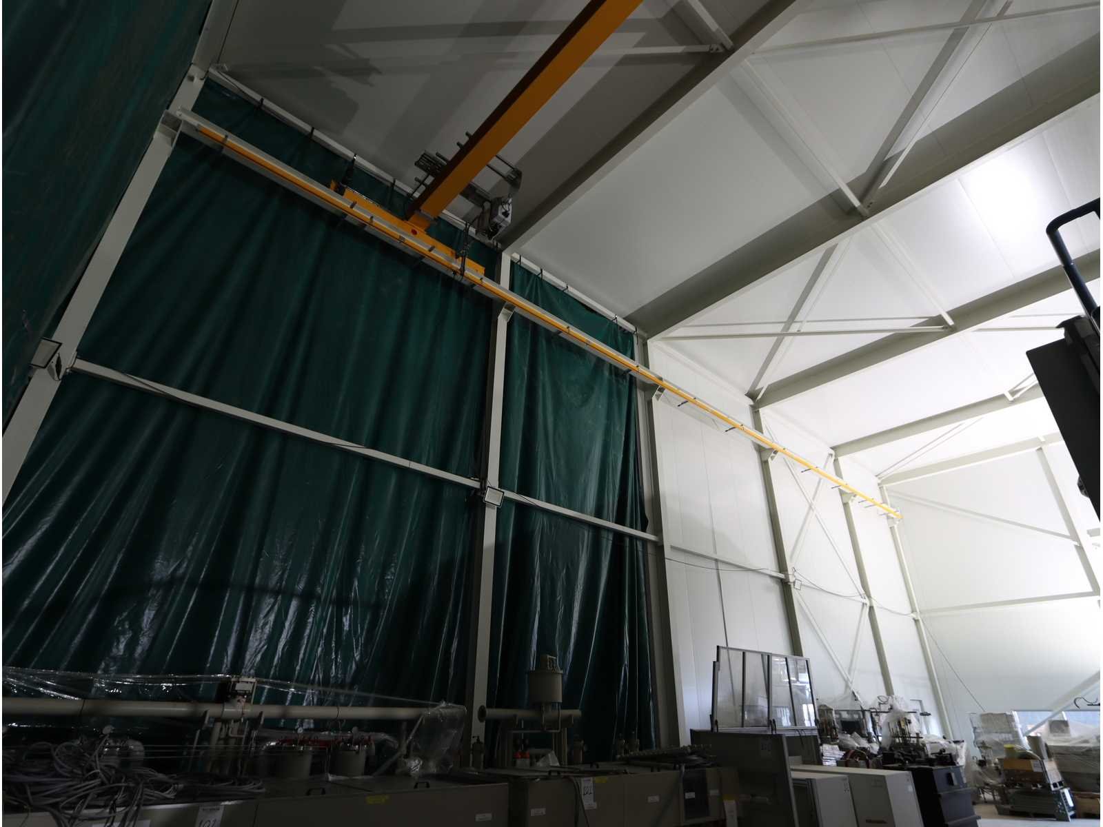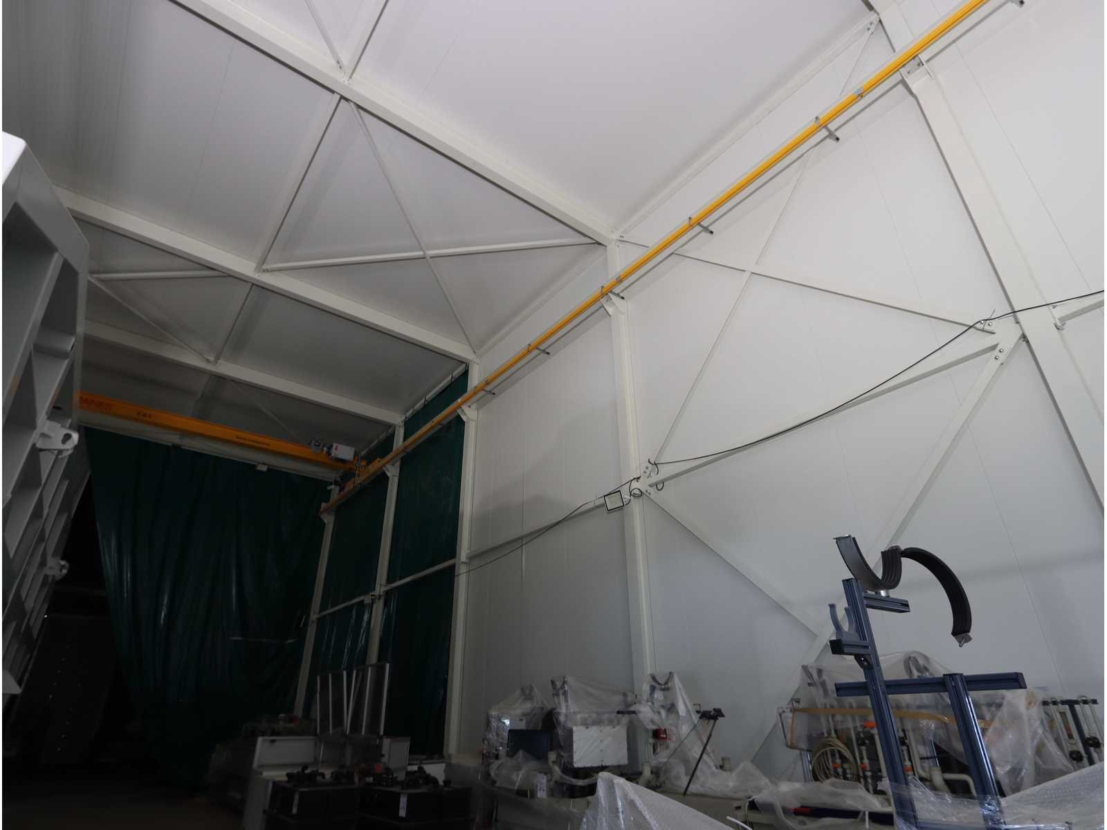 4-zijdig (in aanbouw), 2-zijdig en dak afgewerk, 1-zijde half-afgewerkt, half open en 1-zijde volledig open, met "Konecranes" bovenliggende kraan uitgerust met elektrische kettinghijs, capaciteit 1600 kg en afstandsbediening No Totale afmeting L: 24000mm Totale afmeting Breedte: 18000mm Totale afmeting Hoogte: 10000mm