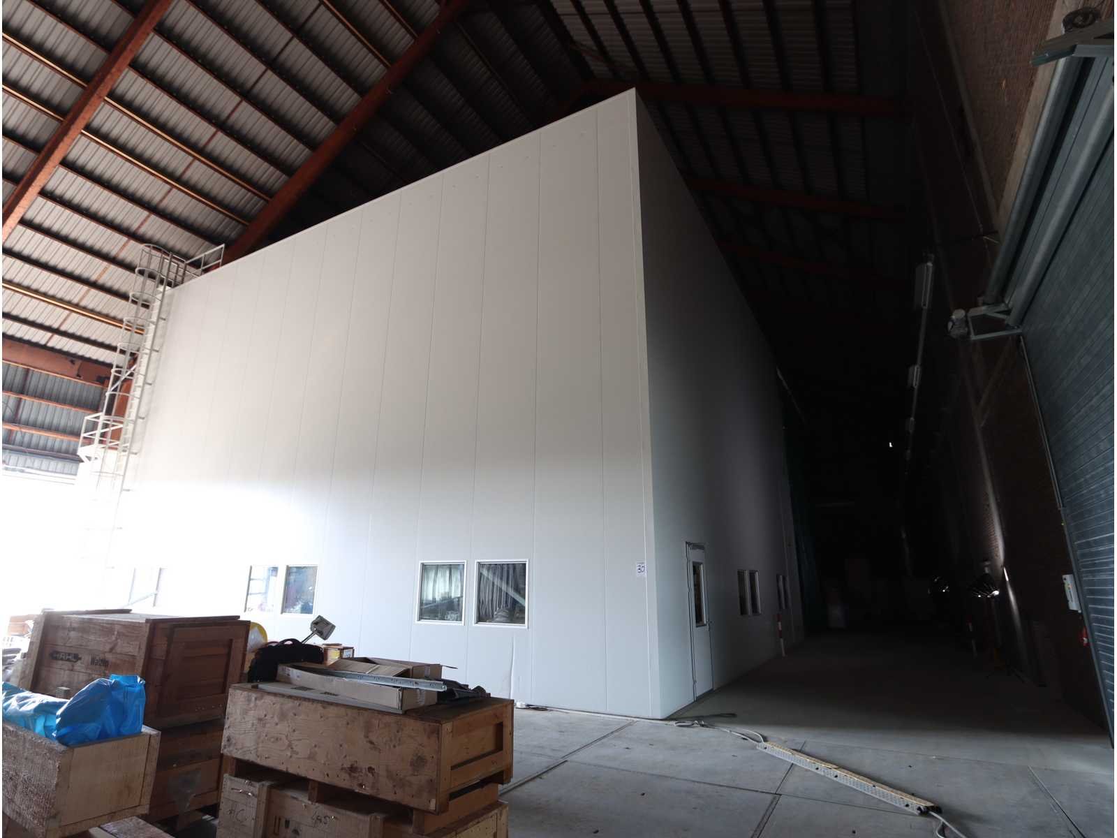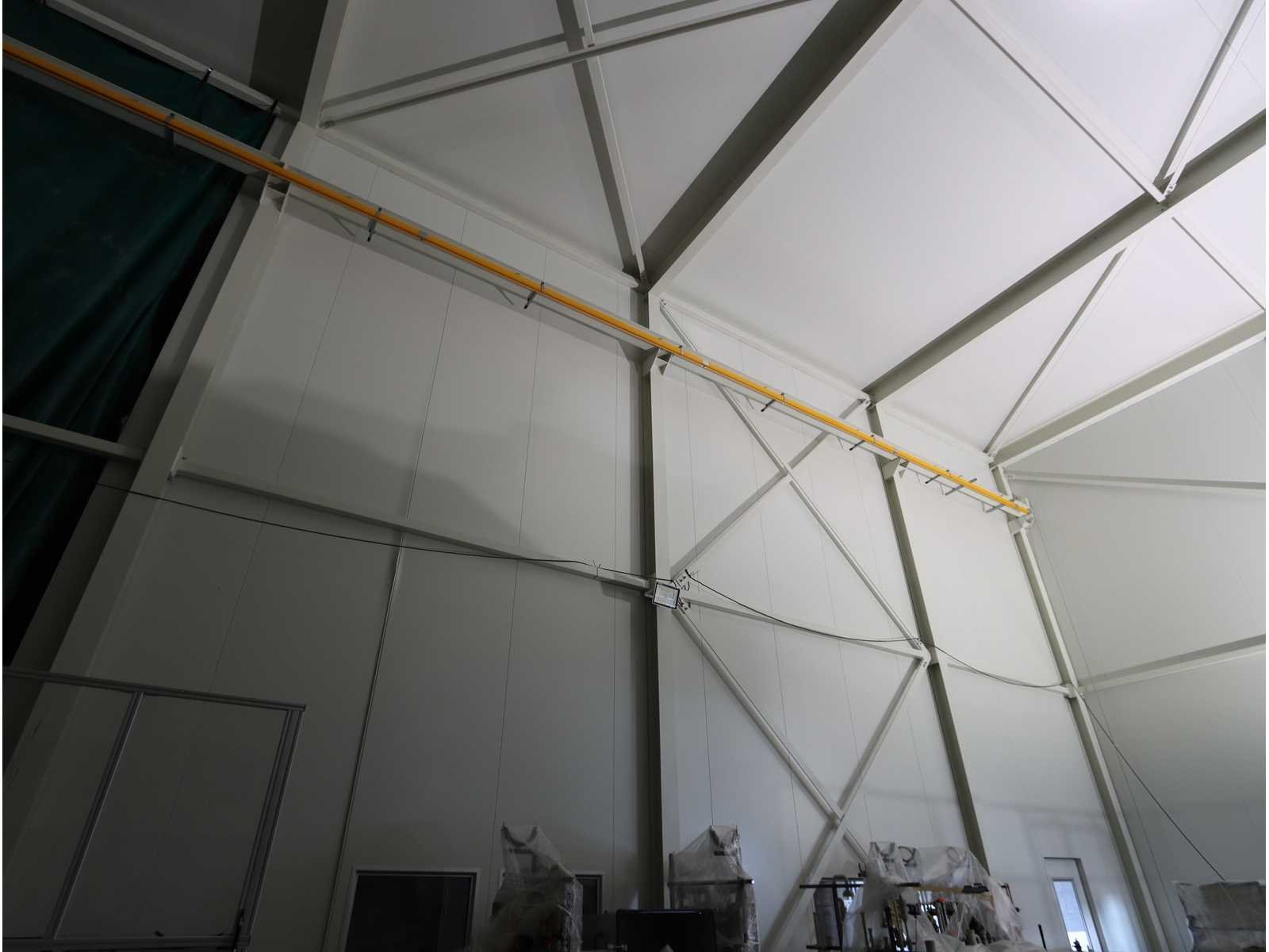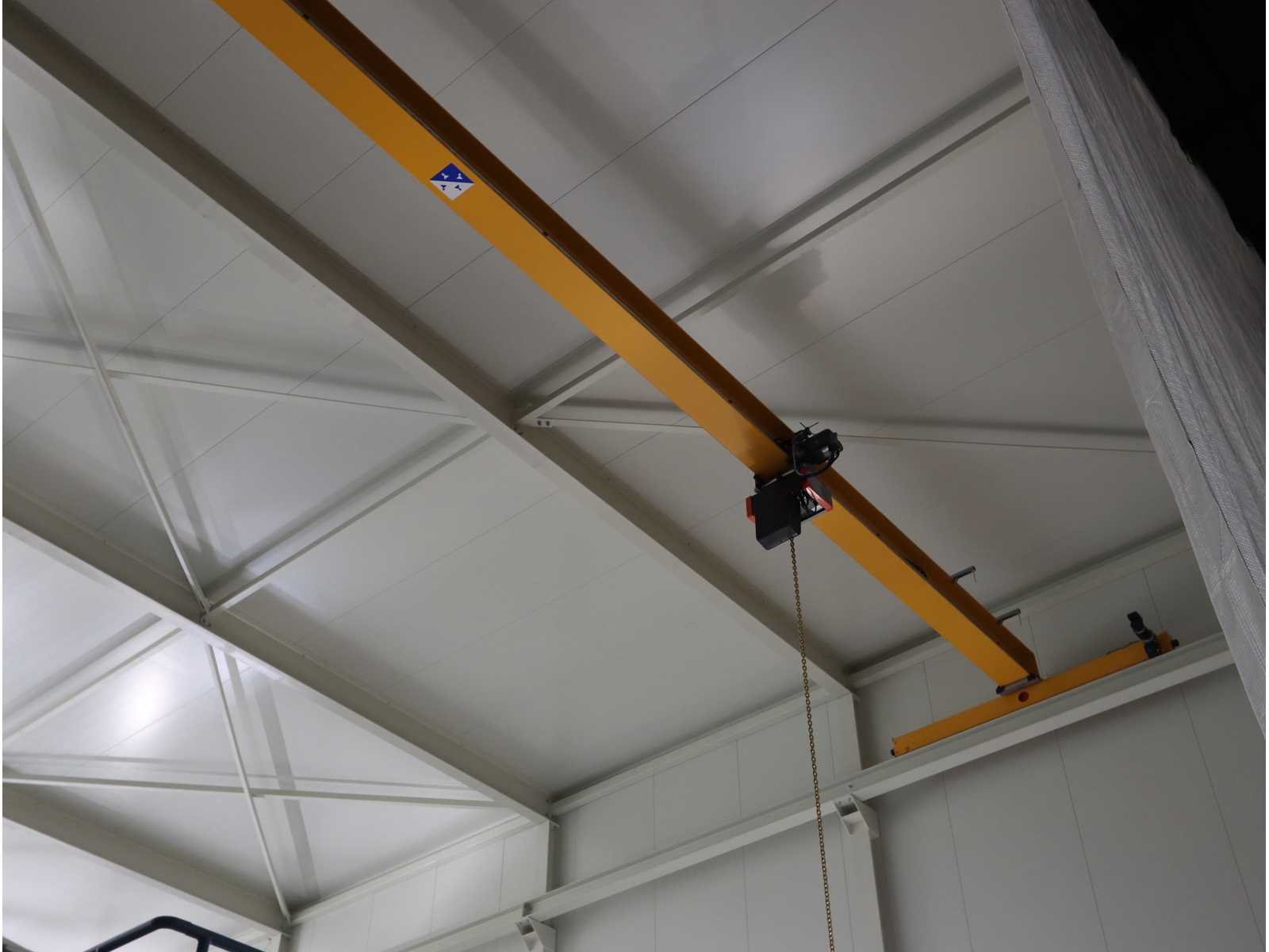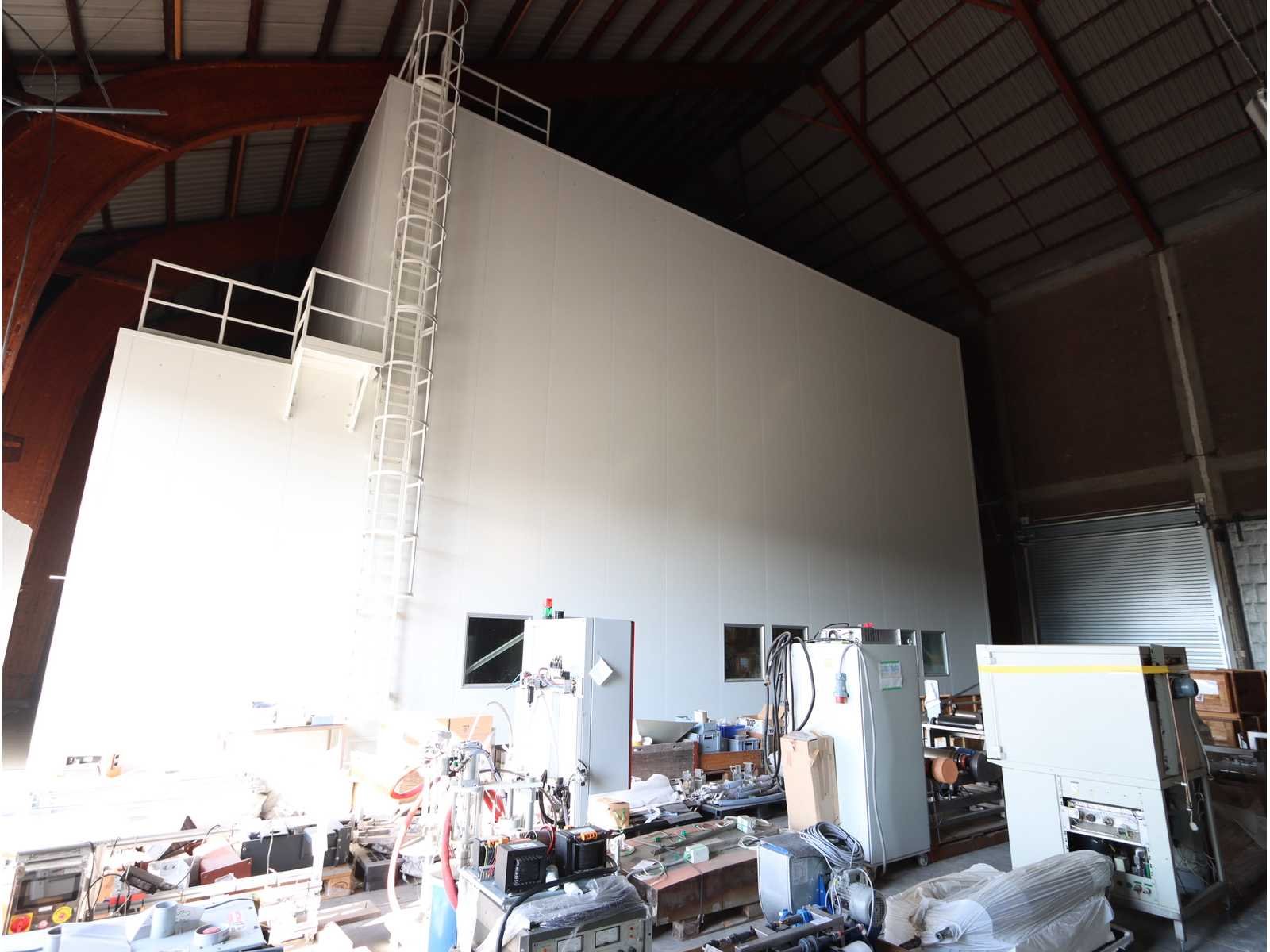 4-zijdig (in aanbouw), 2-zijdig en dak afgewerk, 1-zijde half-afgewerkt, half open en 1-zijde volledig open, met "Konecranes" bovenliggende kraan uitgerust met elektrische kettinghijs, capaciteit 1600 kg en afstandsbediening No Totale afmeting L: 24000mm Totale afmeting Breedte: 18000mm Totale afmeting Hoogte: 10000mm