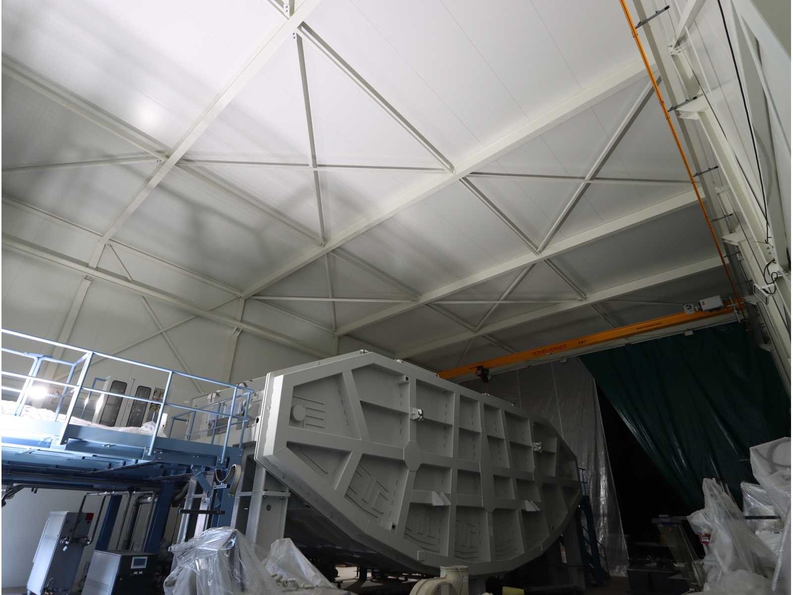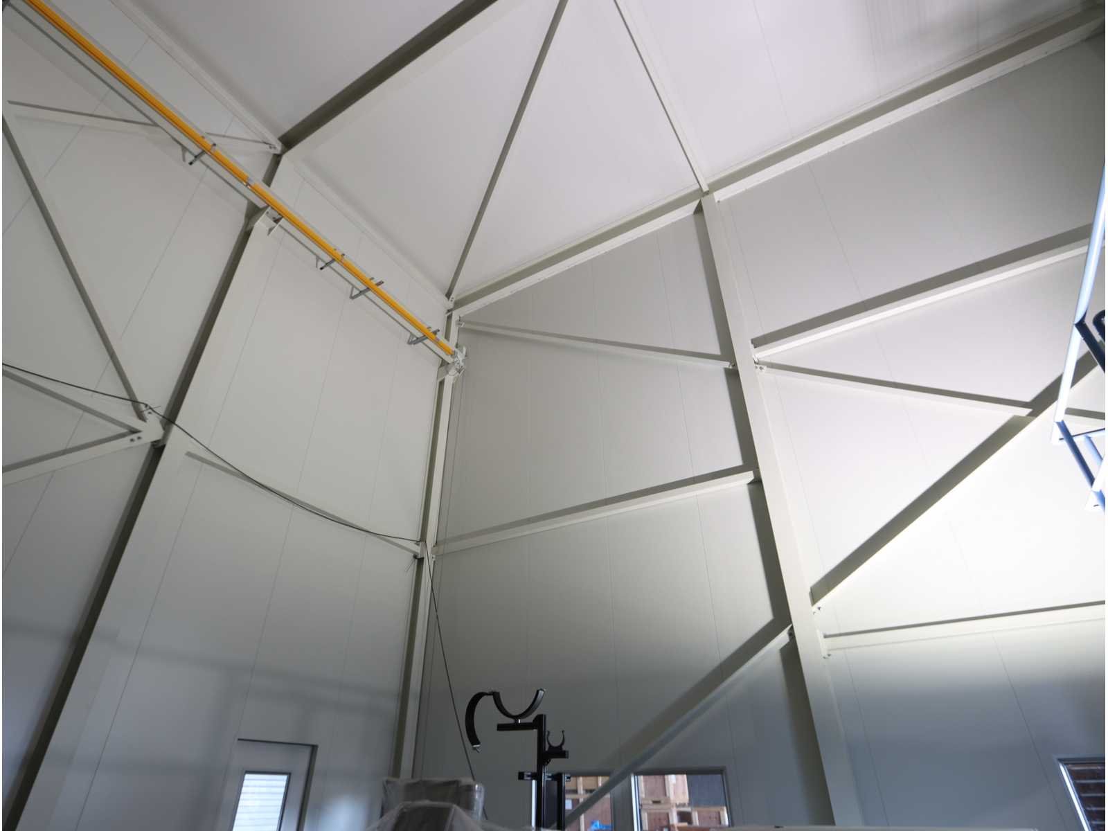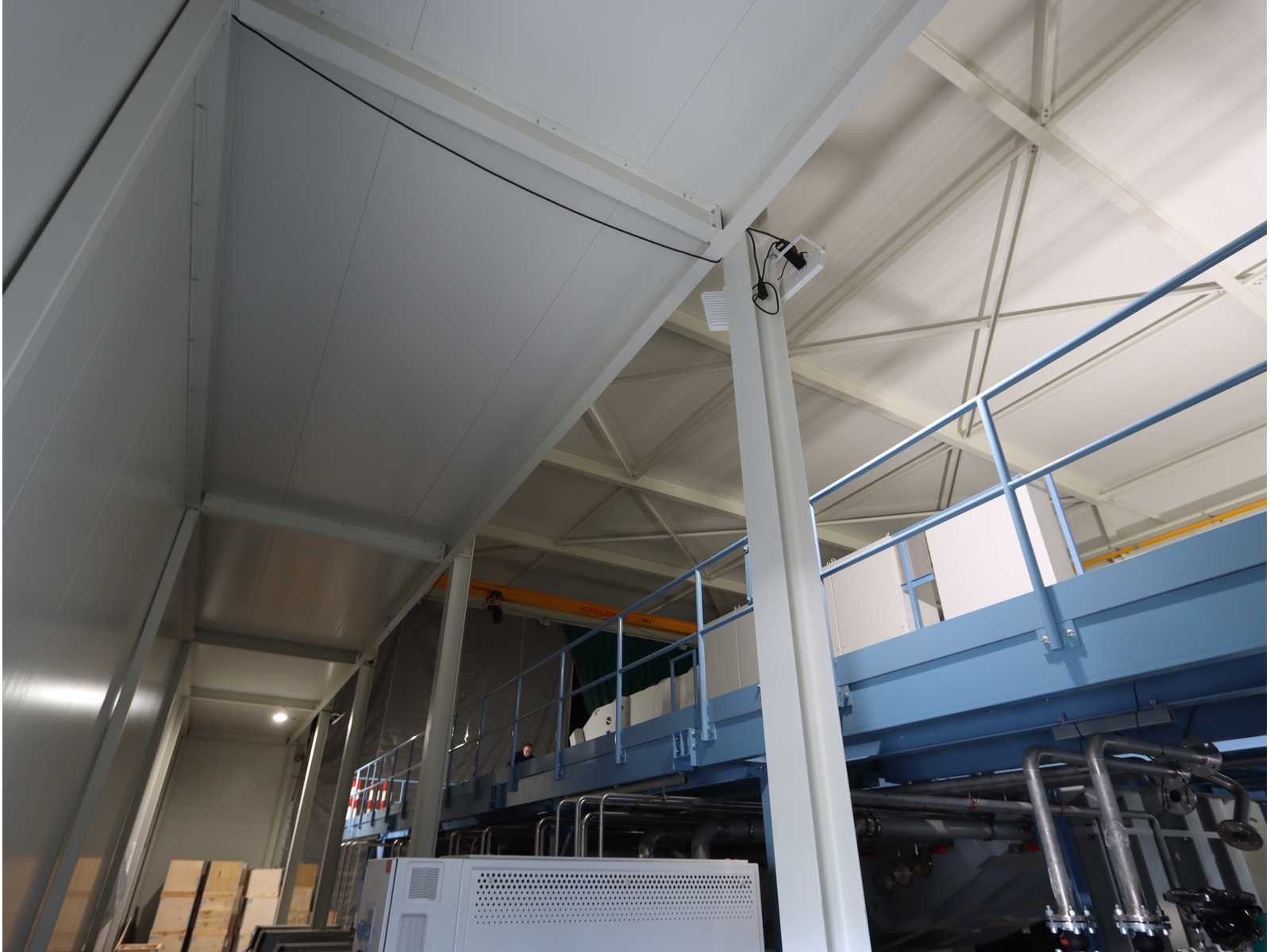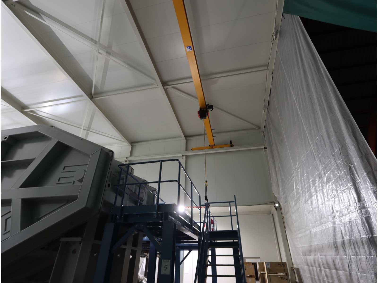 4-zijdig (in aanbouw), 2-zijdig en dak afgewerk, 1-zijde half-afgewerkt, half open en 1-zijde volledig open, met "Konecranes" bovenliggende kraan uitgerust met elektrische kettinghijs, capaciteit 1600 kg en afstandsbediening No Totale afmeting L: 24000mm Totale afmeting Breedte: 18000mm Totale afmeting Hoogte: 10000mm