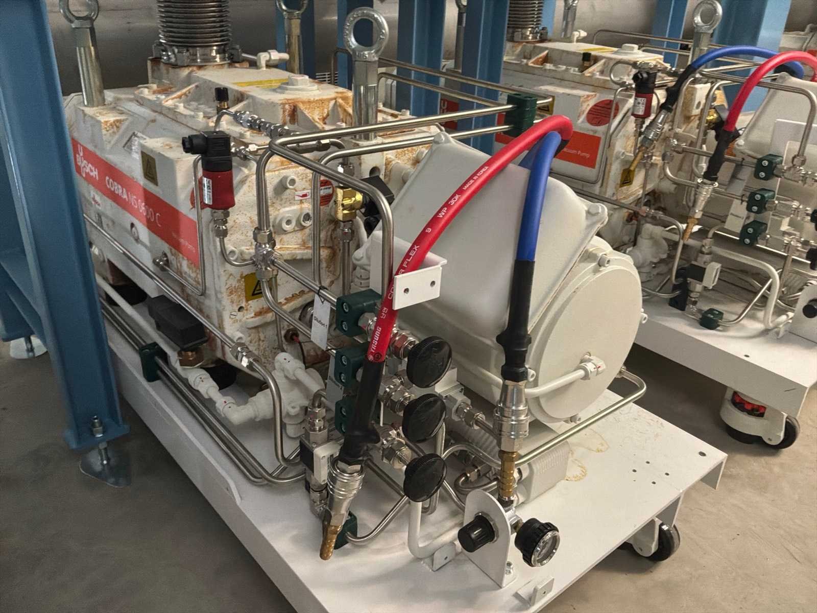 Ongebruikt!, capaciteit 600/3600m3/uur, op mobiel platform, booster gebouwd op stalen frame, roestvrijstalen uitlaat tot de eerste flens No Merk: Busch Type: Cobra NS 0600 C / Panda WY 3600 A Bouwjaar: 2022 Aansluiting: 400V Totale afmeting L: 1630mm Totale afmeting Breedte: 780mm Totale afmeting Hoogte: 1400mm