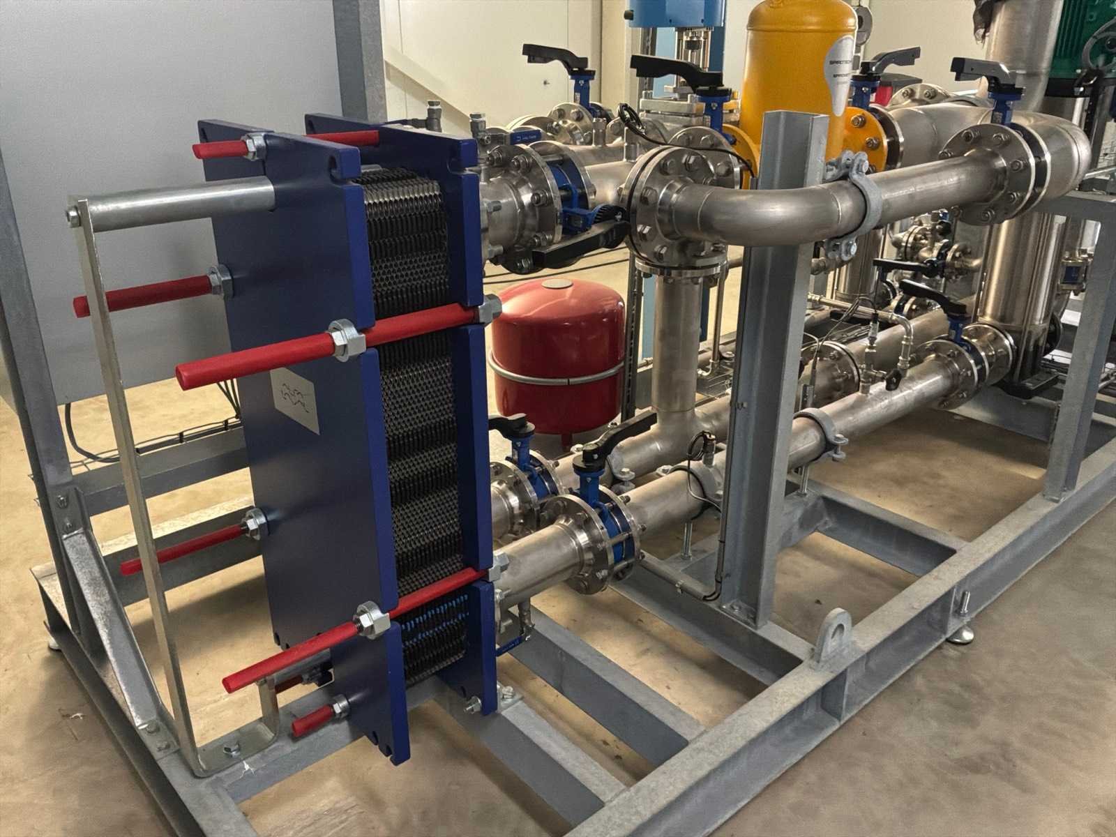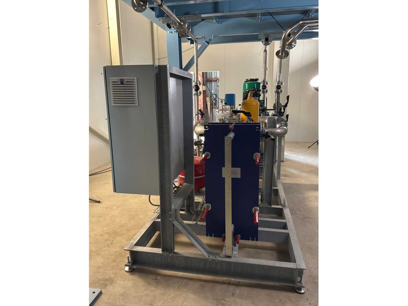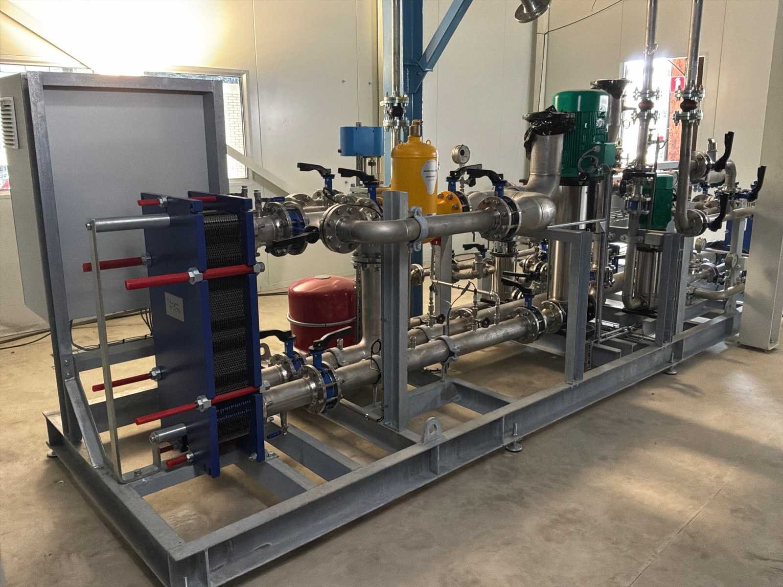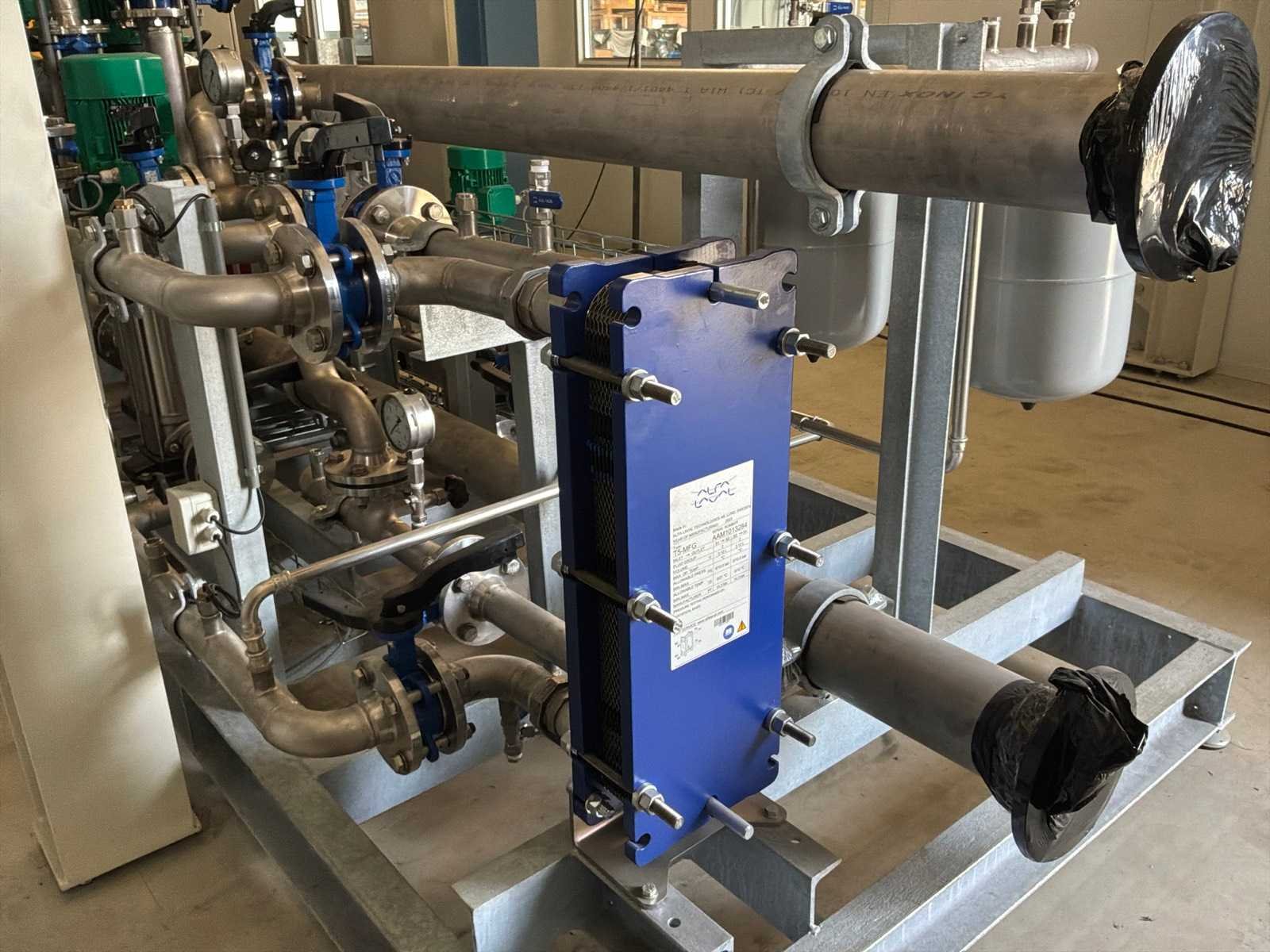 Ongebruikt!, geslipt met 3x "Alfa Laval" plaatwarmtewisselaars in verschillende maten, 3x "Wilo" pomp in diverse maten, drukvaten, ingebouwde centrale schakelkast en gecombineerde leidingen met kleppen No Totale afmeting L: 5450mm Totale afmeting Breedte: 1500mm Totale afmeting Hoogte: 1800mm