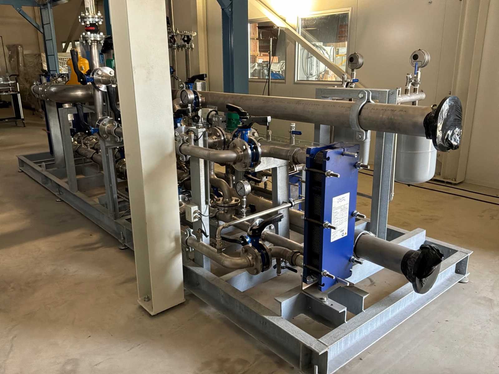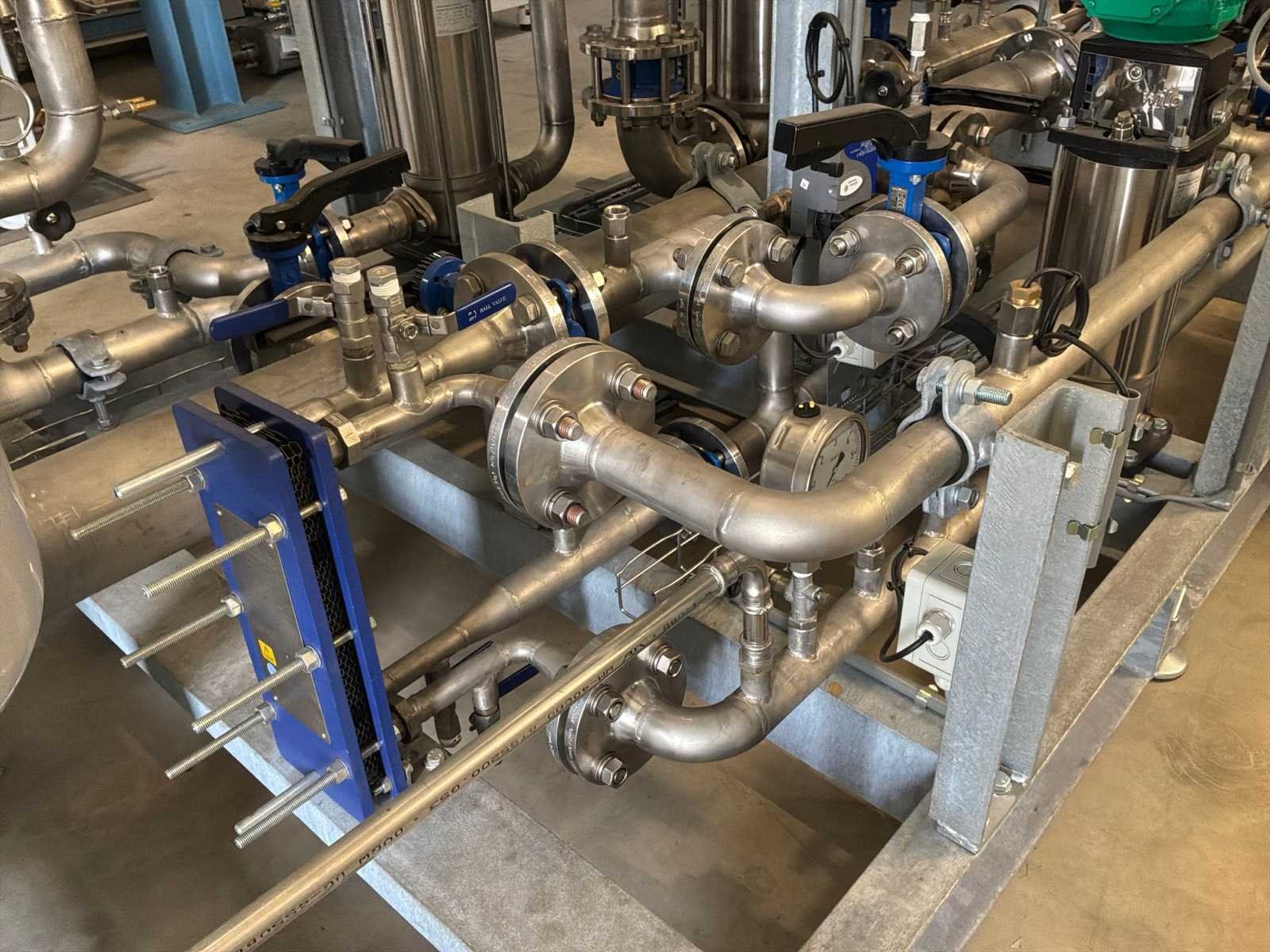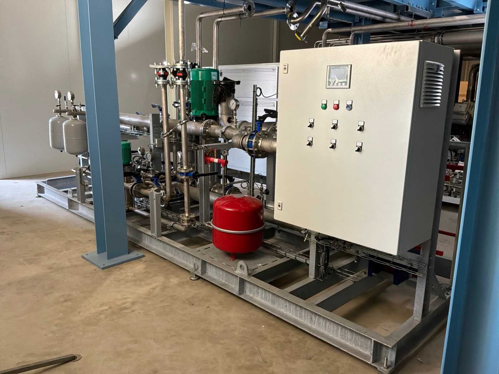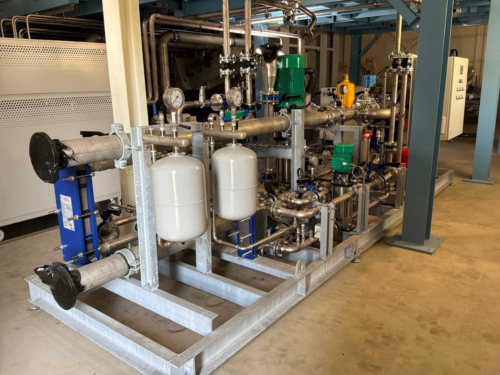 Ongebruikt!, geslipt met 3x "Alfa Laval" plaatwarmtewisselaars in verschillende maten, 3x "Wilo" pomp in diverse maten, drukvaten, ingebouwde centrale schakelkast en gecombineerde leidingen met kleppen No Totale afmeting L: 5450mm Totale afmeting Breedte: 1500mm Totale afmeting Hoogte: 1800mm