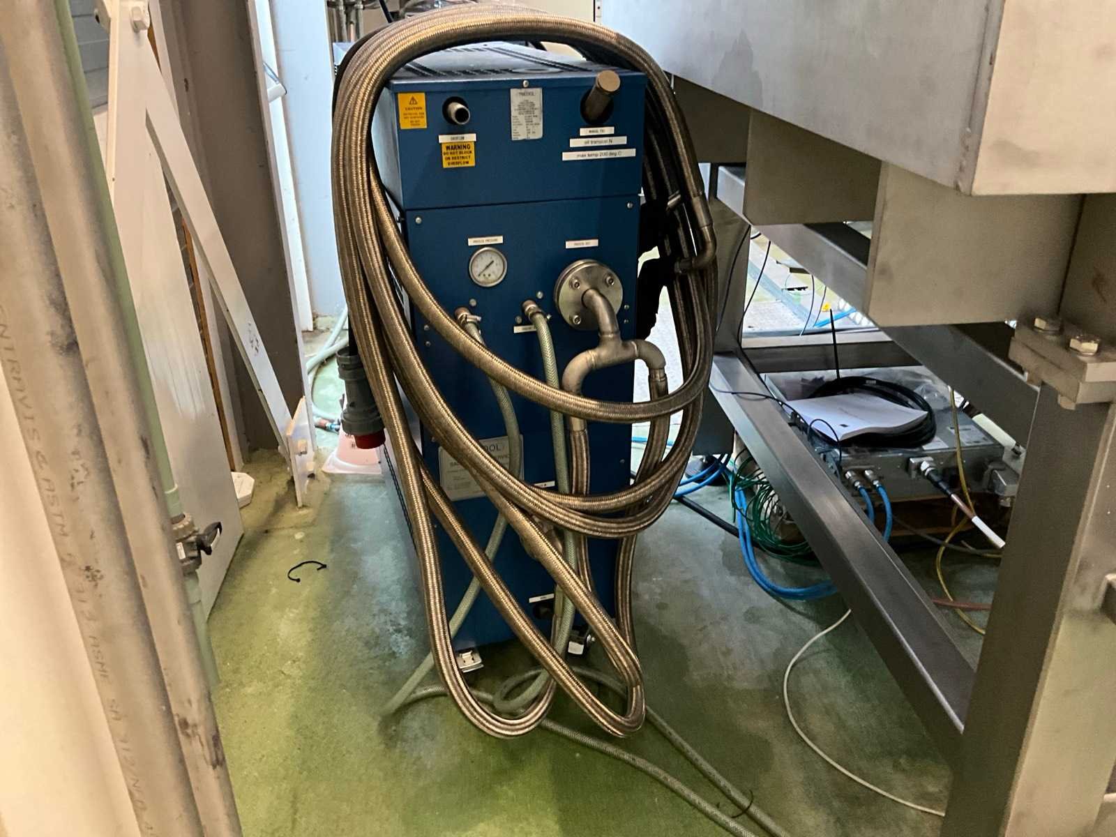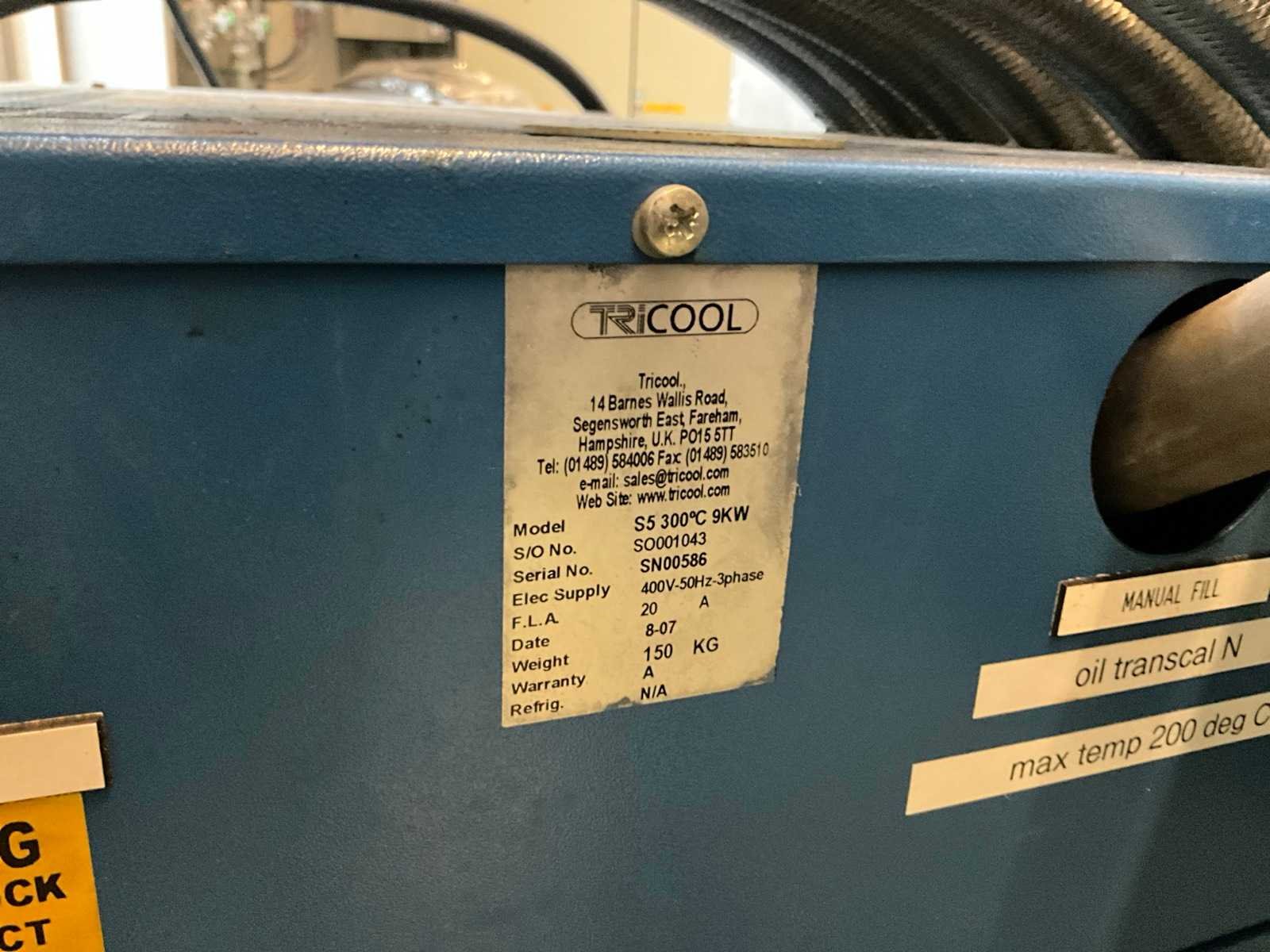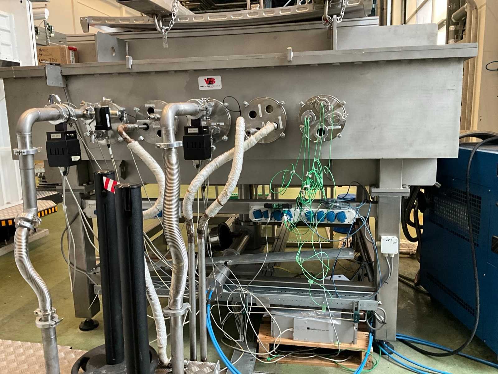 Bestaande uit een roestvrijstalen testunit, 2x "Single" hogetemperatuurregelaars, 1x "Tricool" hogetemperatuurregelaar type S5 300°C 9Kw", roestvrijstalen hefbalk, met 2x aluminium frame en gecombineerde leidingen, gebruikte vloeroppervlak ongeveer 2200x2700 mm No Aansluiting: 400V