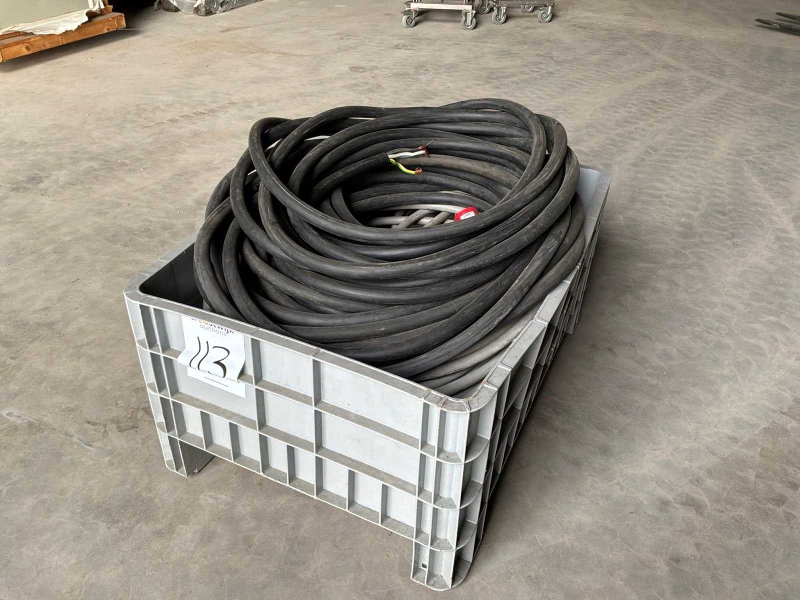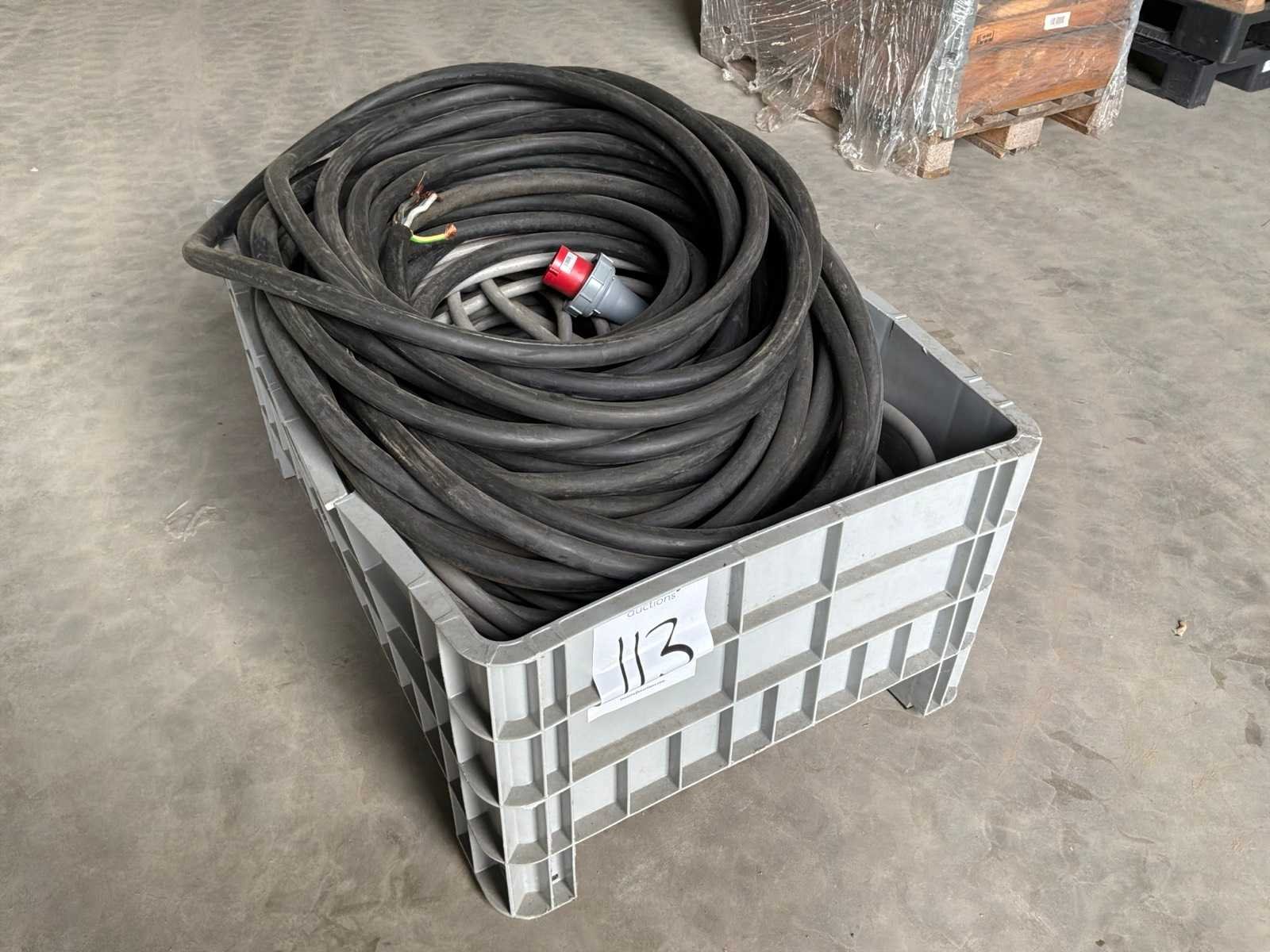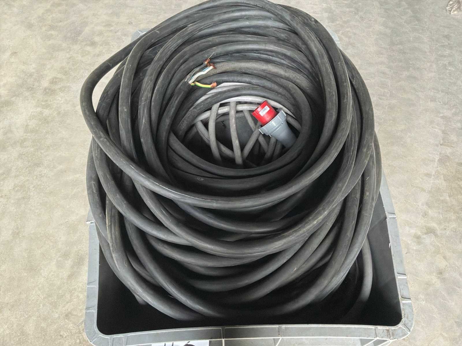 1 batch elektrische stroomkabels, waaronder een plastic krat. No