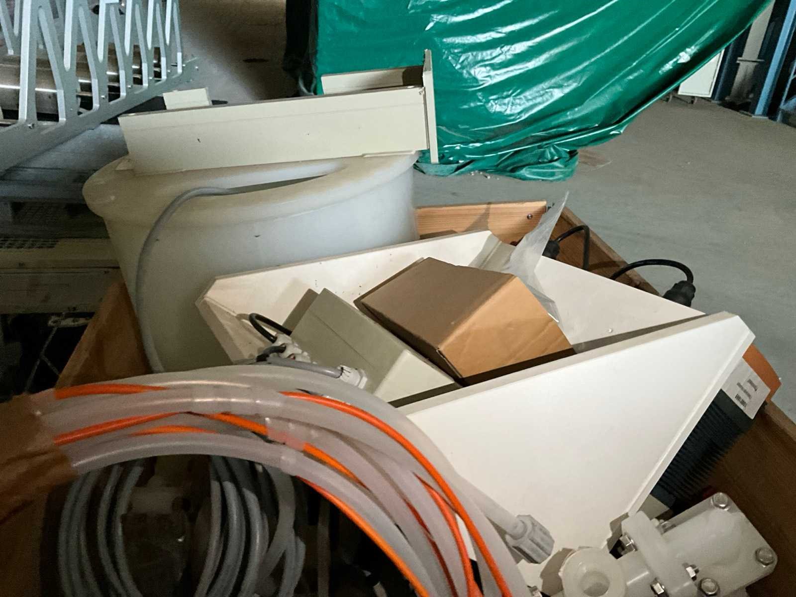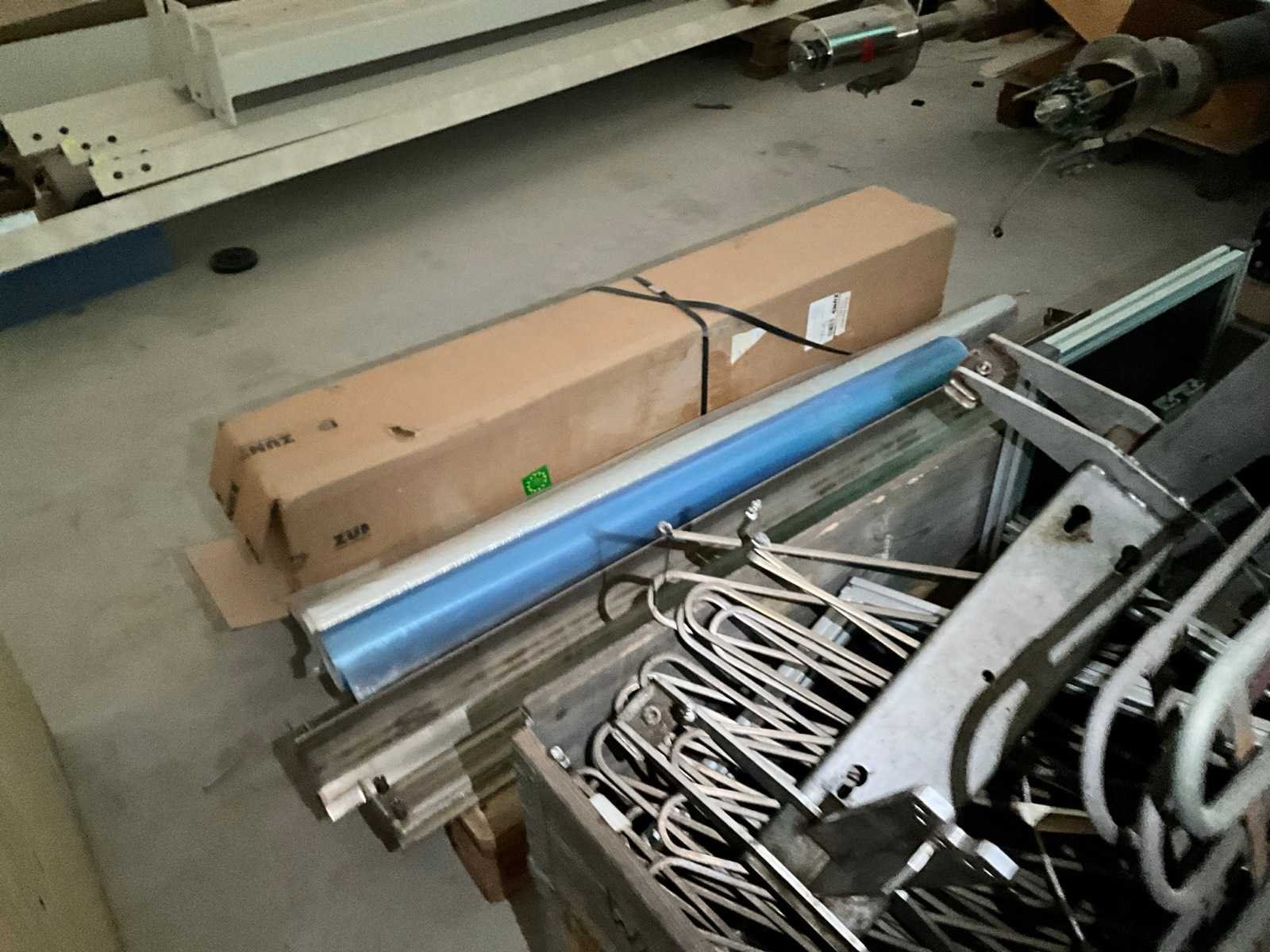 Bestaande uit stalen strips, persluchtcomponenten, aluminium frameonderdelen, membraanpomp, verwarmingselementen, folie, machineonderdelen, stofzuiger, enz., op 9 pallets No