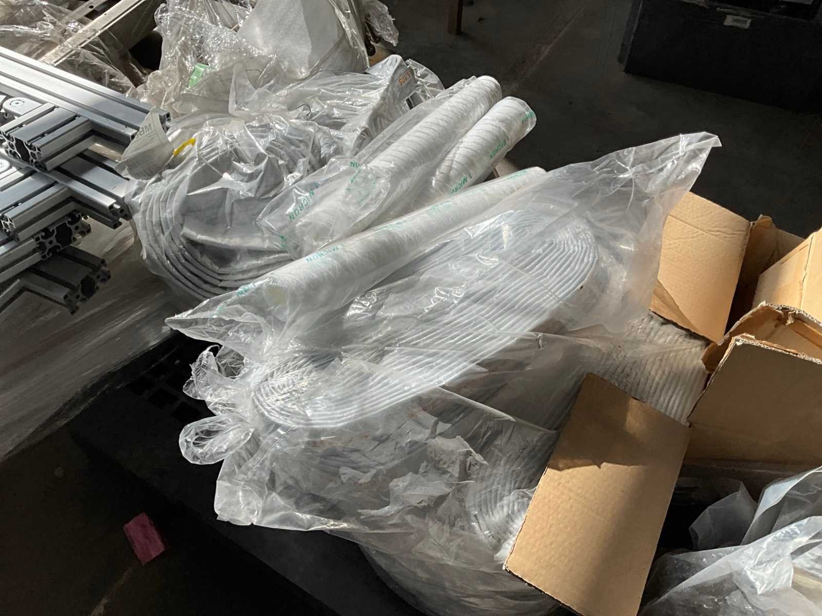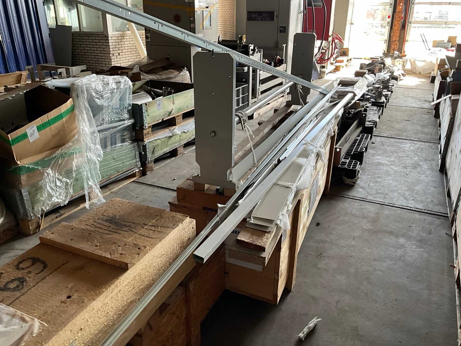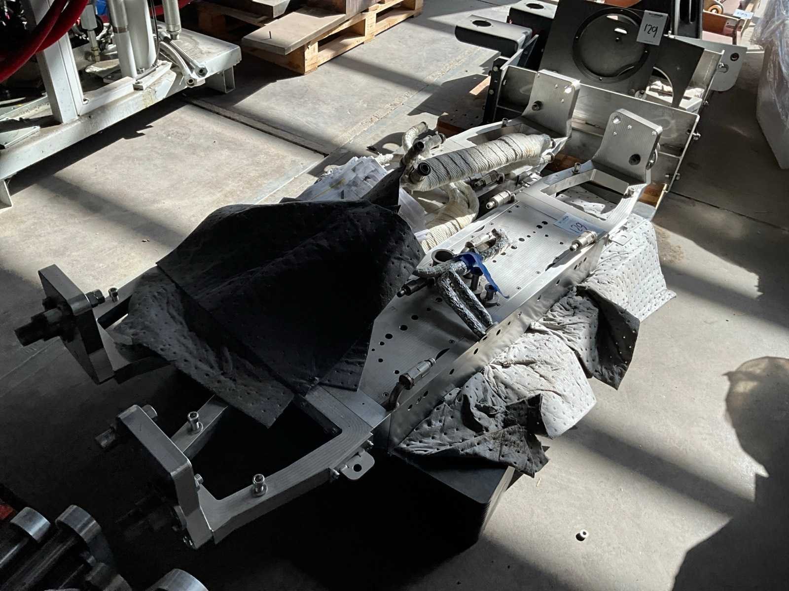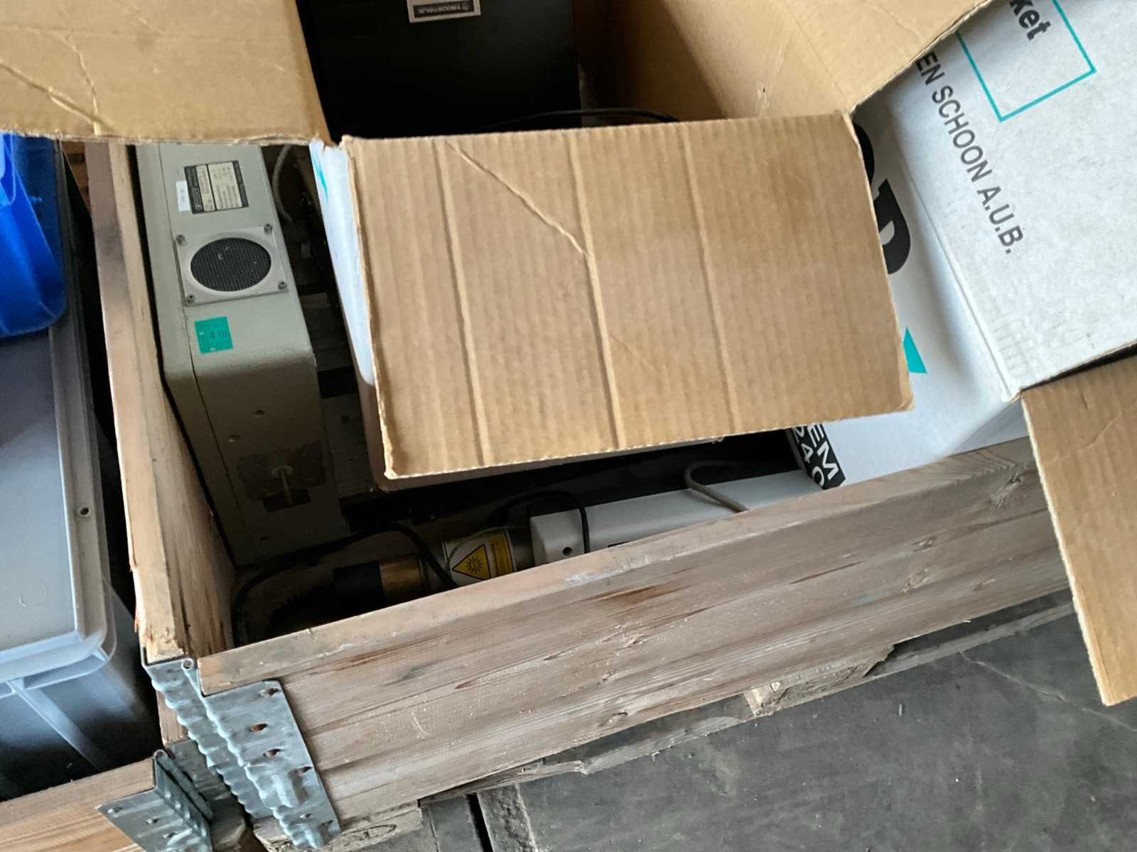Bestaande uit 21 pallets, waaronder aluminium frameonderdelen, roestvrijstalen machineonderdelen, elektrische componenten, kabels, buizen, houten kratten met mouwen, schaal, barrièrematerialen, enzovoort No
