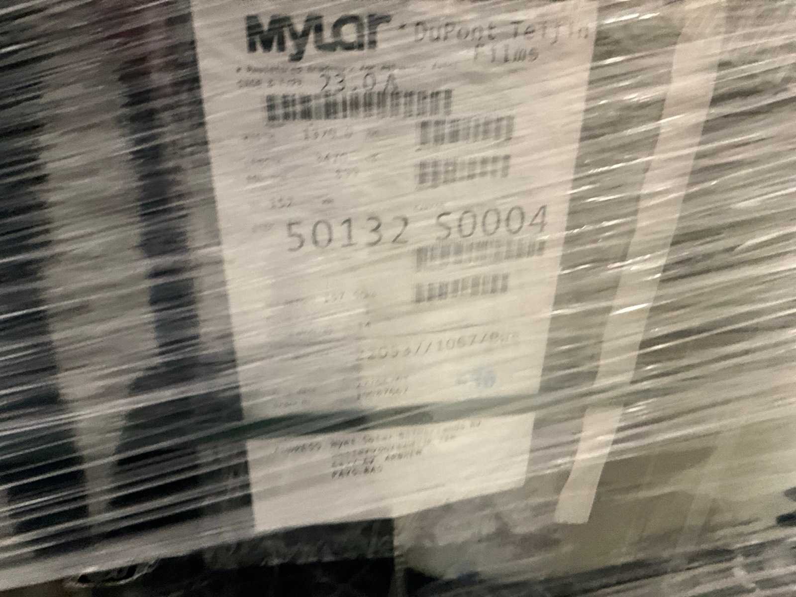 1 pallet, 8 rollen, lengte per rol 3470 meter, breedte 1320 millimeter, gewicht per rol ongeveer 150 kilogram. No Merk: Mylar Type: 23.0A