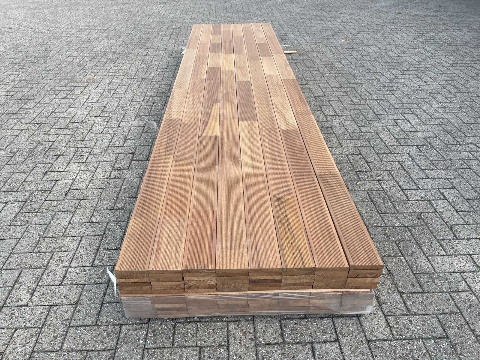 Guyana teak vlonderplanken gevingerlast 3000x120x21mm (58x)