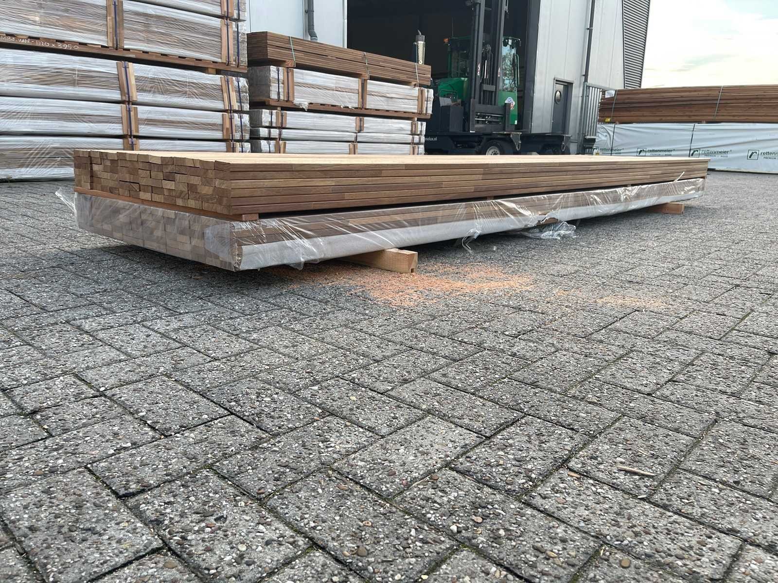 Guyana teak vlonderplanken gevingerlast 4000x70x21mm (83x)
