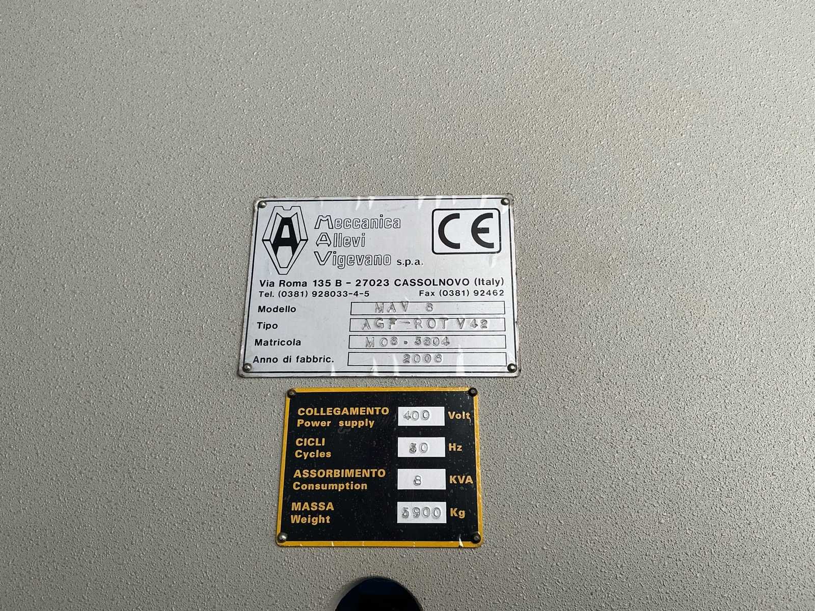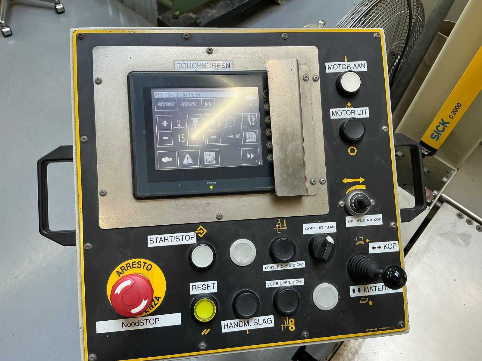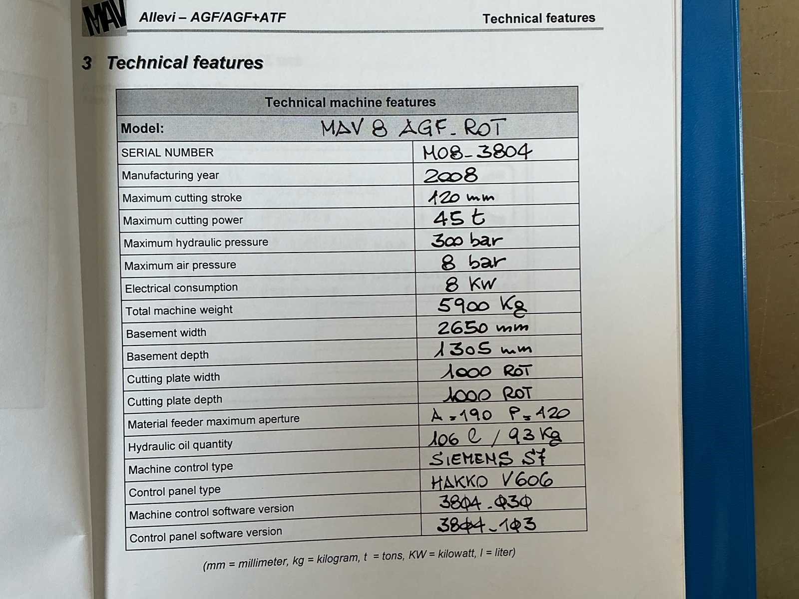 Tafelmaat breedte: 1850 mm Tafelmaat lengte: 1200 mm Beschikt over roterende kop met afmeting 1000x1000 mm, elektronische bedieningskast, aangesloten op compressor (niet inbegrepen), 3 grippers waarvan 1 materiaal transport gripper. Aanpasbare machine. Heeft jaarlijks onderhoud gehad. Kijkdag op afspraak, meld je aan bij: l.vandenhoven@troostwijkauctions.com No Merk: MAV Type: 8 Bouwjaar: 2008 Serienummer: M08-3804 Capaciteit.: 45t Tafelmaat: 1850mm Digitale uitlezing: true Motorvermogen (kW): 8kW Aansluiting: 400V Machinegewicht: 5900kg Afmeting l: 4500mm Afmeting b: 3250mm Afmeting h: 2480mm