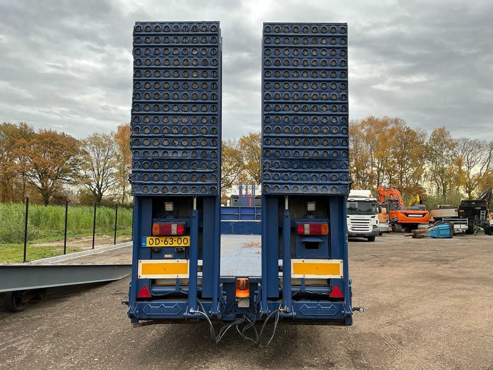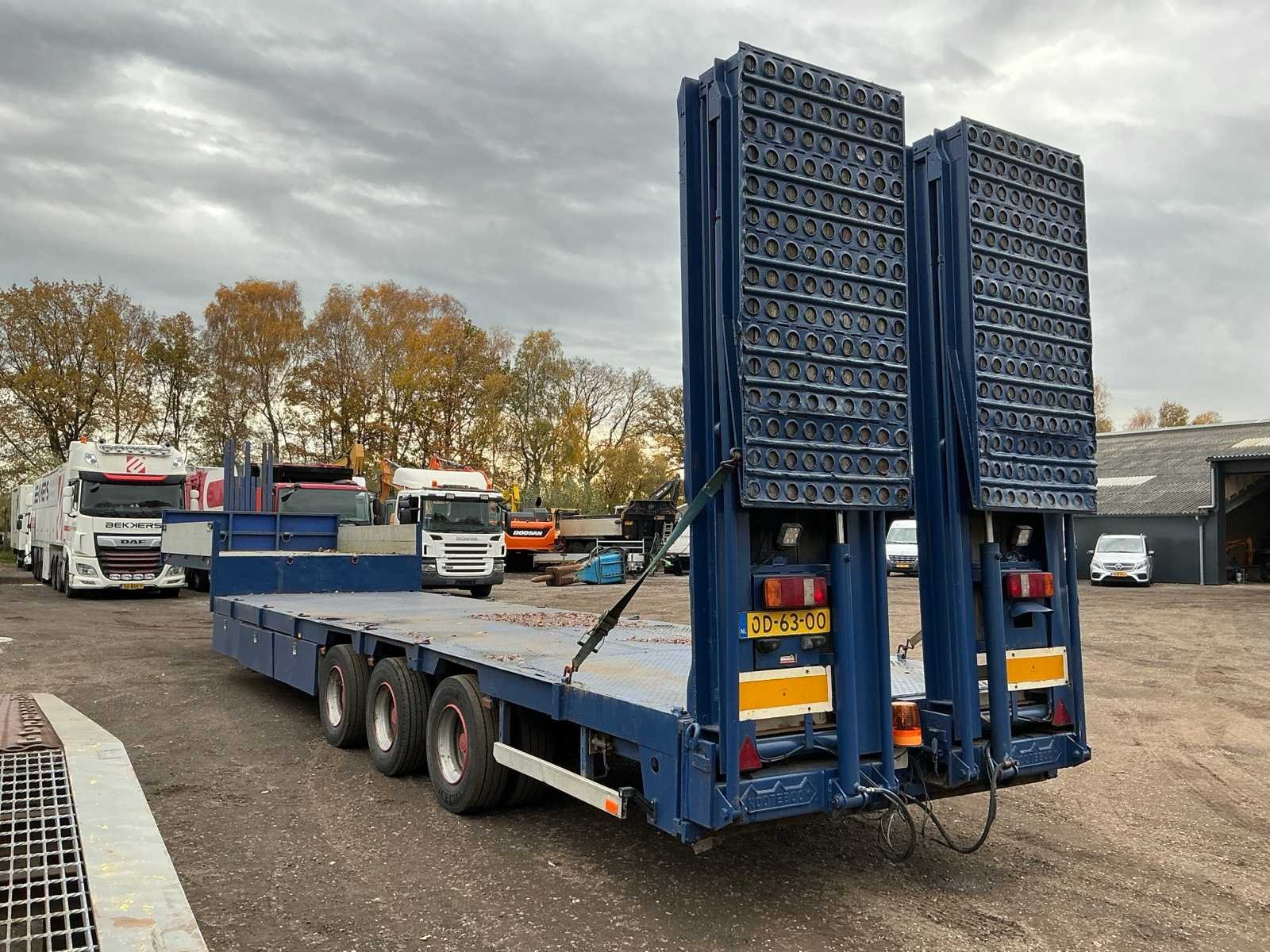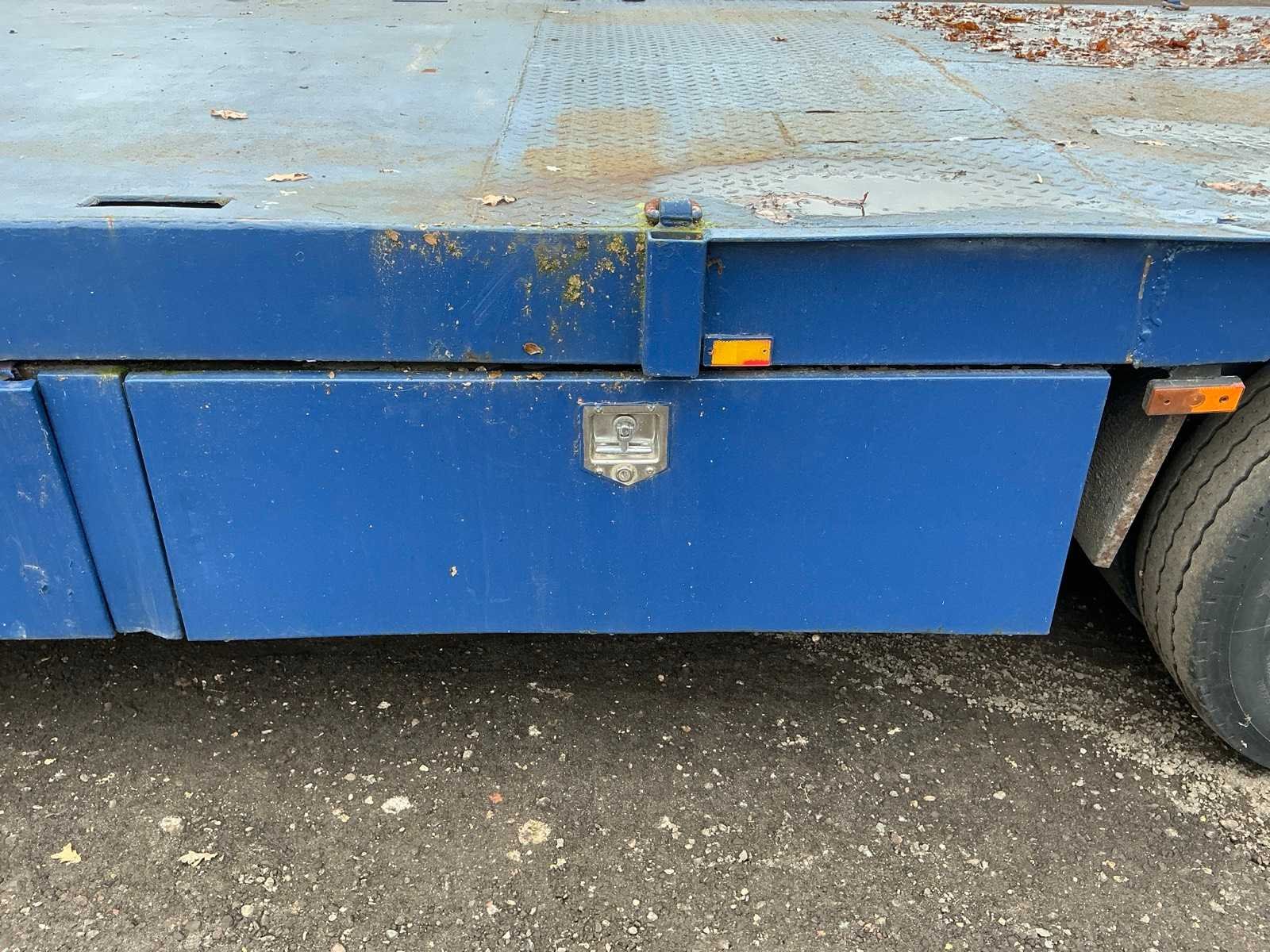Voorzien van: 3-assen, sjorogen op laadplatform, hydraulische uitklapbare rijplaten, steunpoten, bladgeveerd voor en achter, Michelin banden, BPW Assen, Nato plug, luchtremmen, NL Kenteken Nee Merk: Bulthuis Kenteken: OD-63-00 Laadvermogen: 28230kg Eigen gewicht: 7770kg Aantal assen: 3 Kleur: Blauw Datum eerste toelating: 1981-06-25 Datum eerste toelating (NL): 1981-06-25 APK vervaldatum: 2025-06-21 Zelf rijdend exporteren: Ja Gewicht: 7770 Lengte: 14100 Breedte: 2400 Hoogte: 3700
