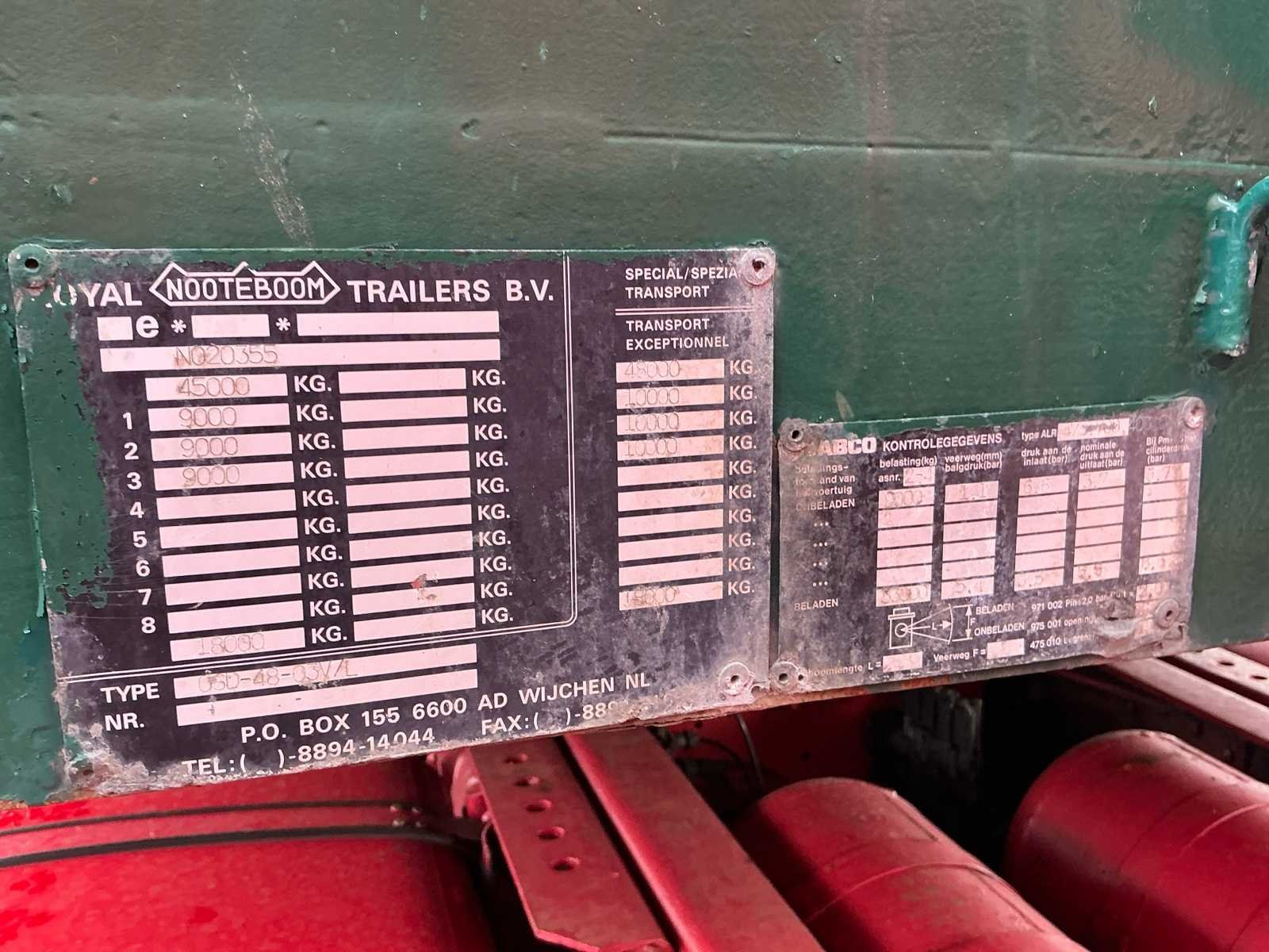 (LET OP! dit voertuig heeft een kenteken registratie, bij afhalen dient u dit ter plaatste bij een derde partij te naam te stellen of te exporteren, hier zijn extra kosten aan verbonden) Nee Merk: Nooteboom Type: OSD-48-03V/L Bouwjaar: 1992 Chassisnummer VIN: N020355 Kenteken: OB-51-ZZ Datum eerste toelating: 1992-12-10 APK vervaldatum: 2025-11-25 Aantal assen: 3 Laadvermogen: 45000kg Eigen gewicht: 10340kg Totale afmeting Breedte: 2520mm Zelf rijdend exporteren: Mogelijk