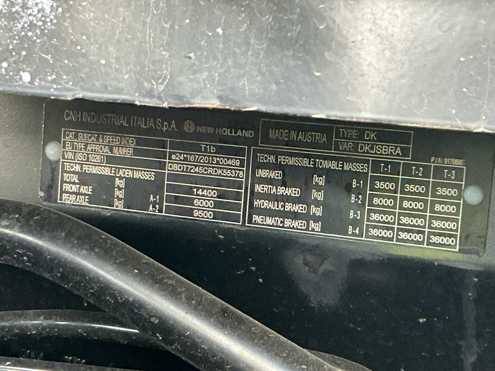Voorzien van: Frontgewicht, fronthefinrichting, frontaftakas, 1x dubbelwerkend hydraulisch ventiel voor, stroomaansluiting voor, steekassen, verstelbare K80 trekhaak, hydraulische topstang, geveerde cabine, 4x dubbelwerkend hydraulisch ventiel achter, load sensing, luchtsysteem, luchtremaansluiting, Auto comfort geveerde stoel, elektrisch verstelbare spiegels, climate control, iso-bus aansluiting, GPS ontvanger GPS bol, radio, president, display, Motor: FPT NEF, 6-cilinder, Cilinderinhoud: 6.7 L, Toerentallen: 540 / 540E / 1000 / 1000E, Hydrauliek: Closed Centre Load Sensing (CCLS), Pompcapaciteit: 121 l/min standaard, 465L tank, Achterhef: tot circa 6.100 kg, Fronthef: ±3.700 kg Nee Merk: New Holland Type: T7.245 New Gen Bouwjaar: 2024 Serienummer: E24*176/2013*00469 Kenteken: GEEN Motorvermogen (kW): 147kW Afgelezen urenstand: 1098 Versnellingsbaktype: Automaat Aantal hydraulische ventielen voor: 2 Bandenmaat voor: 540/65R30 Bandenmaat achter: 650/65 R42 Load sensing: true Frontgewichtenset: true Fronthefinrichting: true Frontaftakas: true Cabine: true Luchtgeveerde stoel: true Eigen gewicht: 7900kg Totale afmeting L: 5500mm Totale afmeting Breedte: 2650mm Totale afmeting Hoogte: 3200mm Chassisnummer: DBDT7245CRDK55387