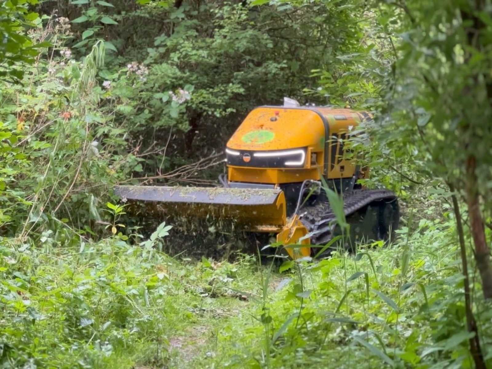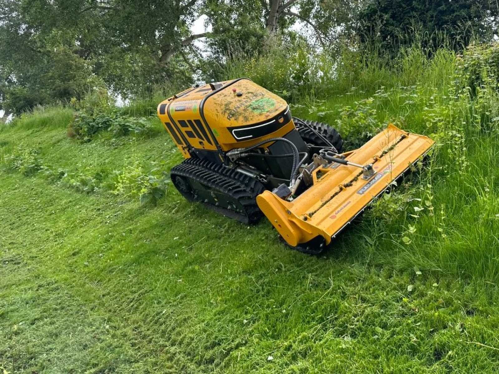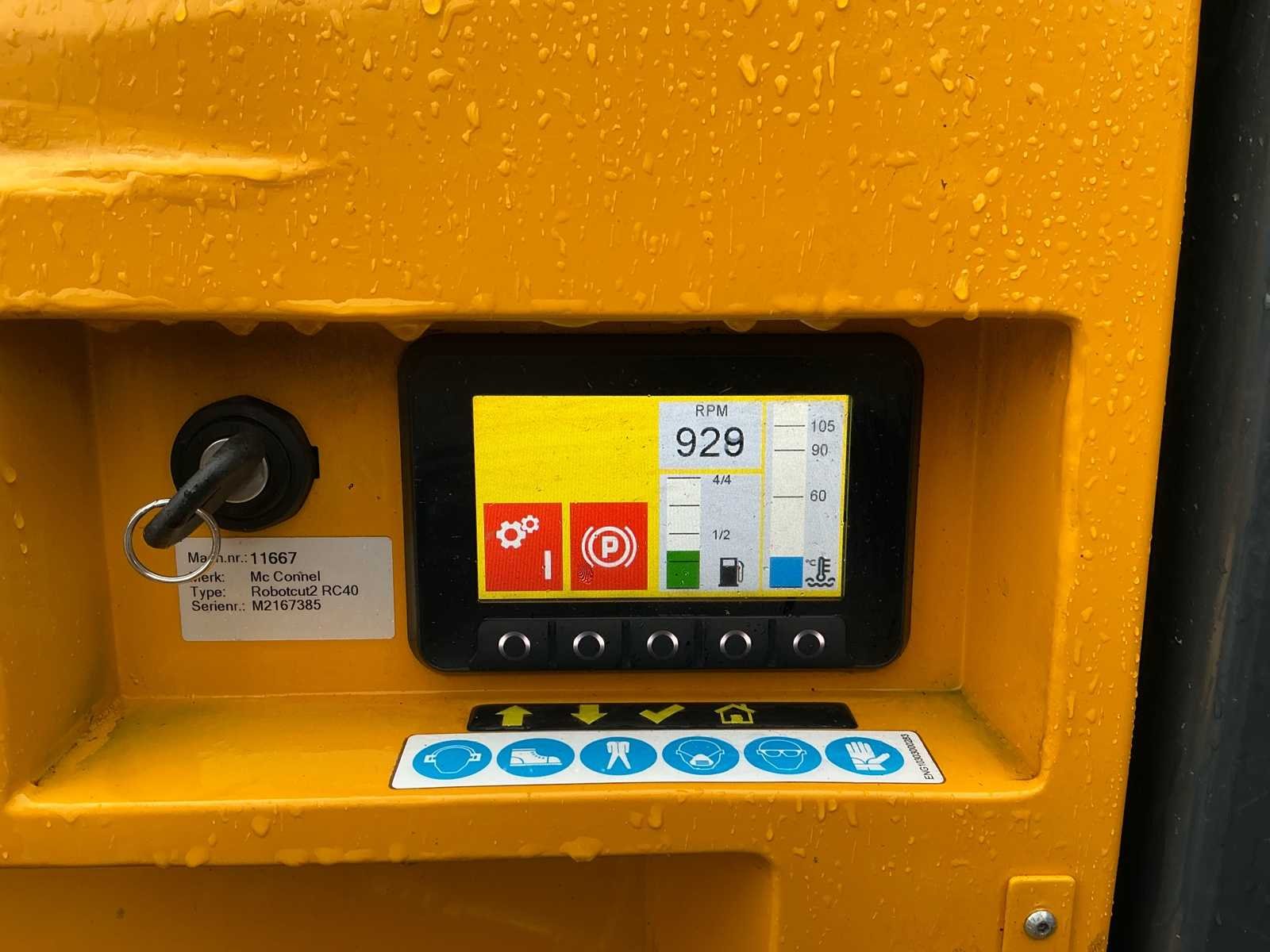 ROBOCUT2 RC40 Op afstand bestuurbare werktuigdrager / maaier. Geschikt voor hellingen tot 55 graden. Bouwjaar: 2021 Urenstand: 185 uur. Voorzien van: Yanmar 3TNV88C DYT2 40pk 3cilinder dieselmotor Rupsonderstel met 26cm brede rupsen Hetronic radiografische afstandsbediening met acculader en opbergkoffer Multifunctioneel informatiedisplay Dabekausen Flailhead 1300 Klepelmaaier (werkbreedte 1300mm Dabekausen Predator Bosfrees ST20HS stobbenfrees (92 kg, 370mm, 12 beitels) Hefinrichting voorzijde Hydrauliek aansluitingen Handleiding Verlichting voorzijde Afmeting machine zonder werktuig: Lengte: 220cm Breedte: 135cm Hoogte: 120cm Afmeting Stobbenfrees: Lengte: 80cm Breedte: 80cm Hoogte: 80cm Afmeting bosfrees: Lengte: 90cm Breedte: 150cm Hoogte: 125cm Afmeting klepelmaaier: Lengte: 70cm Breedte: 150cm Hoogte: 50cm Nee Merk: McConnel Type: Robocut2 RC40 Bouwjaar: 2021 Serienummer: M2167385 Werkbreedte: 1300mm Met oplader: true Eigen gewicht: 1116kg Totale afmeting L: 2200mm Totale afmeting Breedte: 1350mm Totale afmeting Hoogte: 1200mm