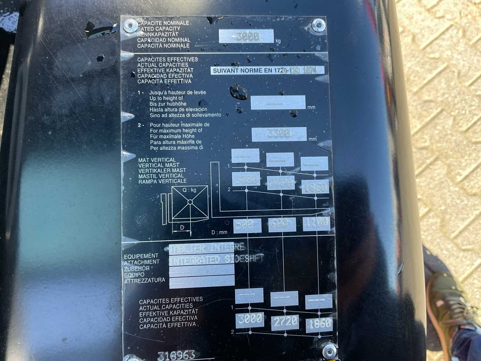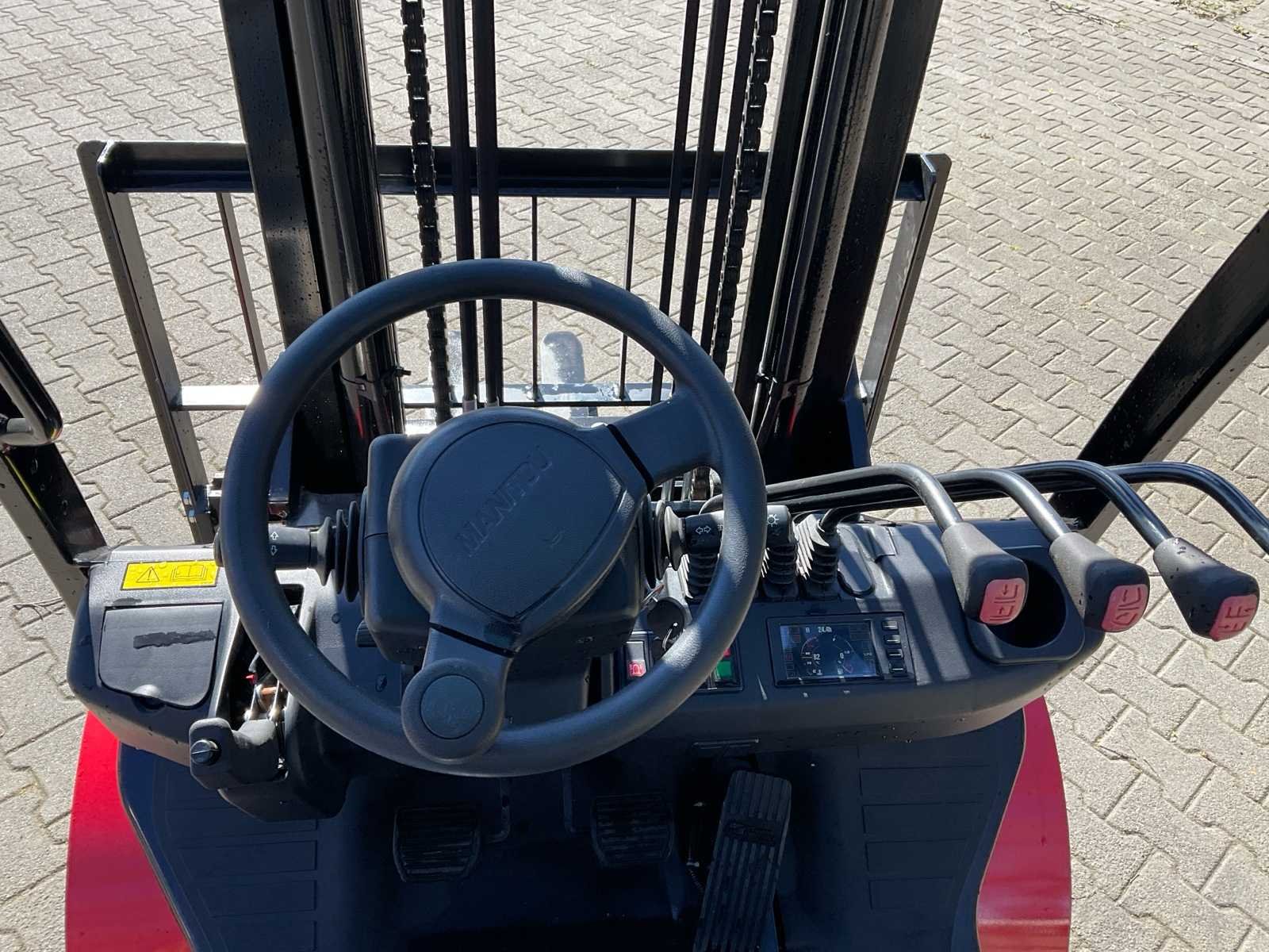 Ongebruikt, voorzien van: digitaal display, verlichting, LPG tank, No Merk: Manitou Type: MI30G Bouwjaar: 2023 Serienummer: MAN00000L088001 Brandstof: LPG Mast: duplex Soort band: lucht Aantal wielen: 4 Afgelezen urenstand: 24 Side-shift: true Hefvermogen: 3000kg Lepellengte: 1140mm Max. hefhoogte: 3300mm Totale afmeting L: 3750mm Totale afmeting Breedte: 1220mm Totale afmeting Hoogte: 2440mm LPG: true