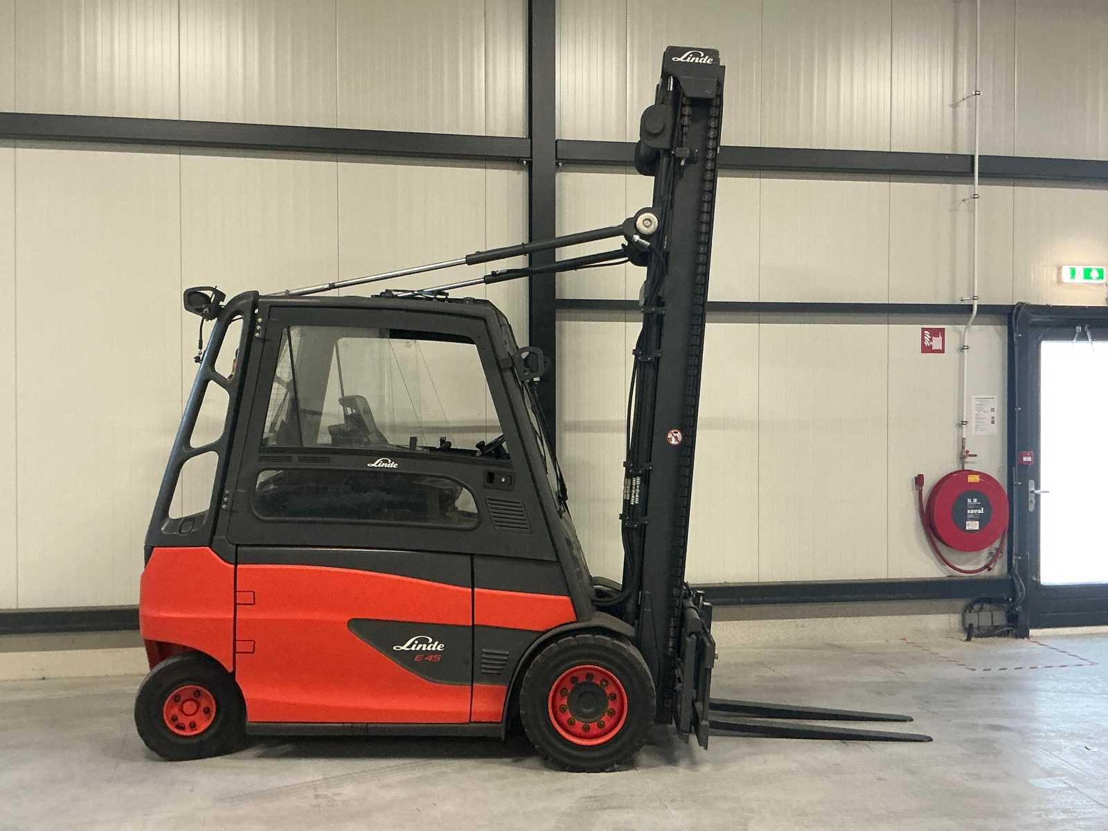 Goed werkende Linde heftruck. Nee Merk: Linde Type: E45HL-01/600 Bouwjaar: 2014 Serienummer: H2X388E00008 Brandstof: Elektrisch Mast: Duplex Soort band: Volrubber banden Aantal wielen: 4 Afgelezen urenstand: 17305 Side-shift: true Duplex mast: true Eigen gewicht: 8092kg Hefvermogen: 4500kg Lepellengte: 1200mm Hefhoogte: 5400mm Vol rubber banden: true Totale afmeting L: 4200mm Totale afmeting Breedte: 1350mm Totale afmeting Hoogte: 3520mm