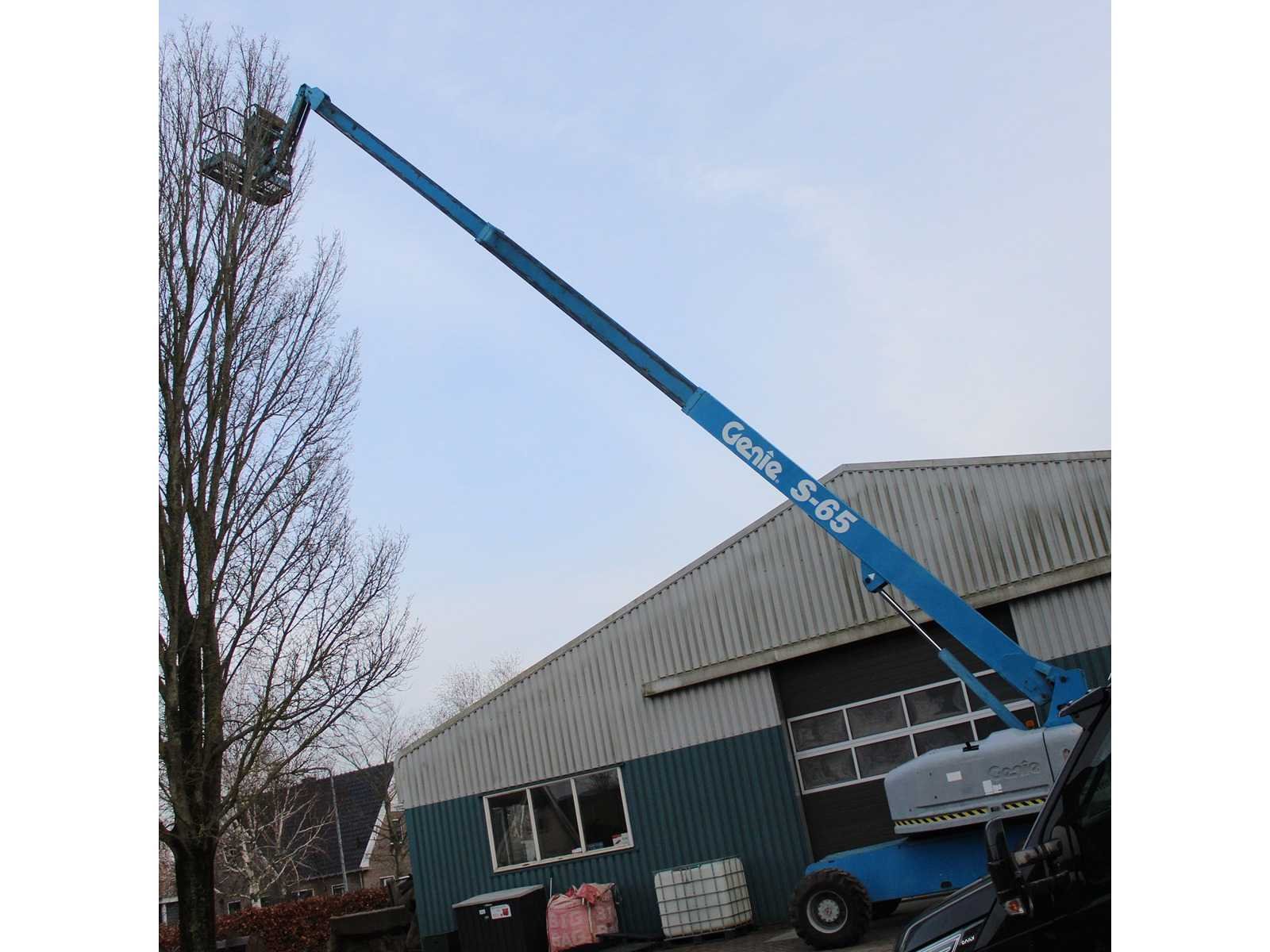 Genie S-65 - Brandstof: Diesel - Werkhoogte: 21,8 Meter - Motor: 4 cilinder Deutz luchtgekoeld Nee Merk: Genie Type: S-65 Bouwjaar: 2000 Diesel: true Telescoop hoogwerker: true Werkhoogte: 21800mm Horizontale rijkwijdte: 17900mm Plateau afm. l: 760mm Plateau afm. b: 1850mm Platform capaciteit: 230kg Afgelezen urenstand: 4127 Eigen gewicht: 12882kg Totale afmeting L: 9500mm Totale afmeting Breedte: 2490mm Totale afmeting Hoogte: 2720mm