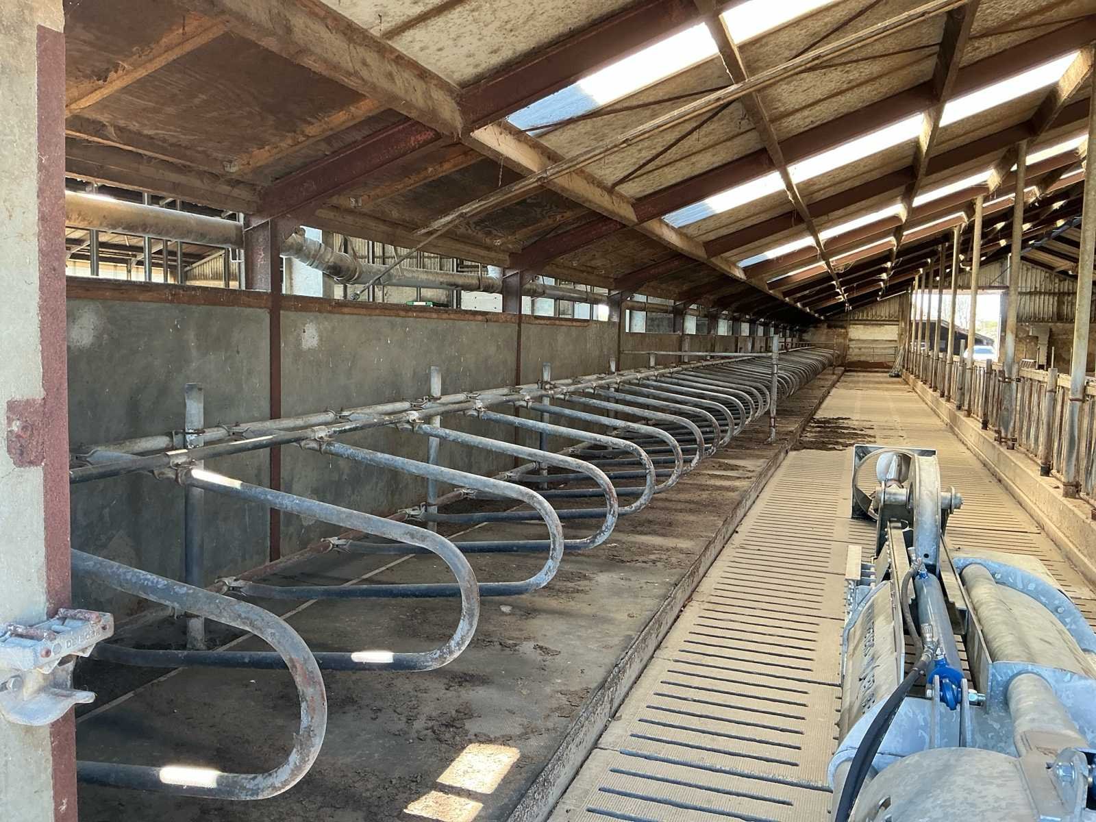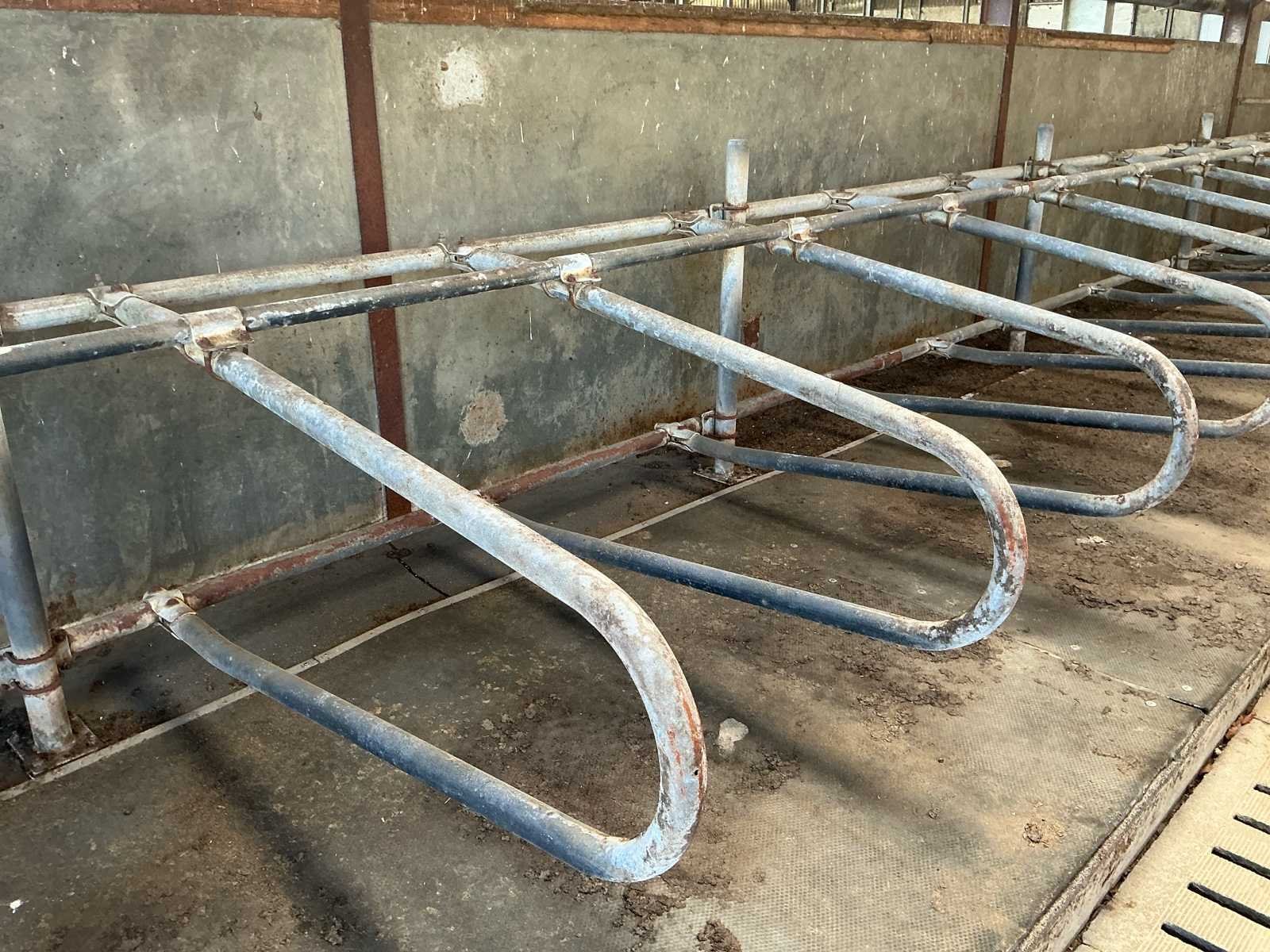 Bestaat uit: 50 stuks jongvee zwevende ligplaatsen, 50 stuks zelfsluitend Gea voerhek, jongvee 8-20 maanden (50mtr), opgehangen aan horizontale montagebuizen, uitgevoerd met kopplaat, opgehangen met draadbeugels waardoor boxbreedte aan te passen is, wordt door verkoper professioneel gedemonteerd, gereed voor transport. Beschikbaarheid in overleg. Nee Merk: Gea Type: Jongvee stalinrichting 50 boxen Diersoort: Rundvee Afmeting l: 50000mm