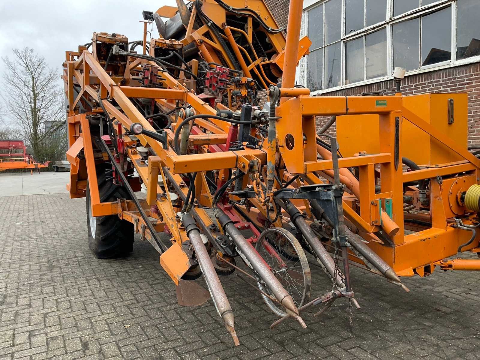 Vecon 2-rijige wortelrooier, Breedte: 750mm, Spoorbreedte: 2700mm, Voorzien van: hydraulisch gestuurde stuuras, hydraulische vlaktestelling, Hydraulische kloppers, side-besturing, elektrische hoogte verstelling. Machine is volledig gecheckt en klaar om ingezet te worden voor werkzaamheden) Nee Merk: Vecon Type: VRL Bouwjaar: 1992 Totale afmeting L: 5200mm Totale afmeting Breedte: 3200mm Totale afmeting Hoogte: 3400mm