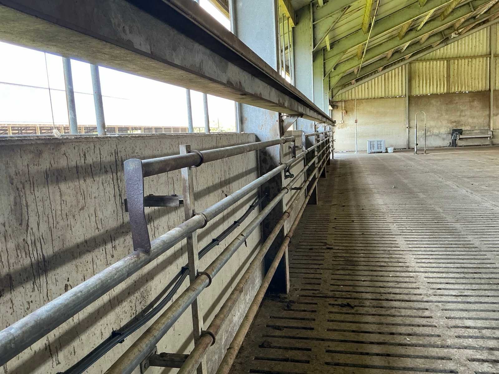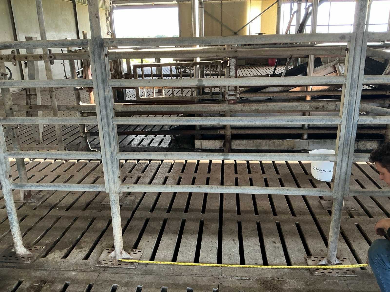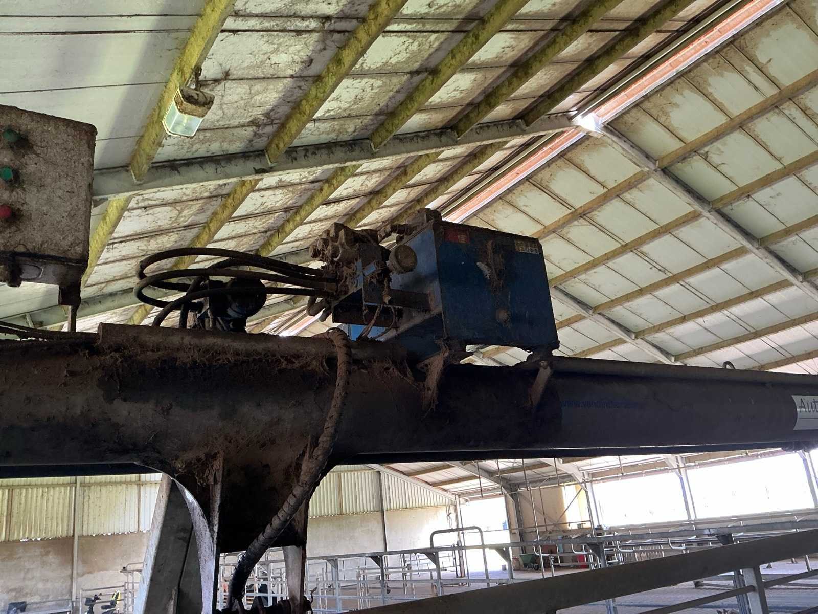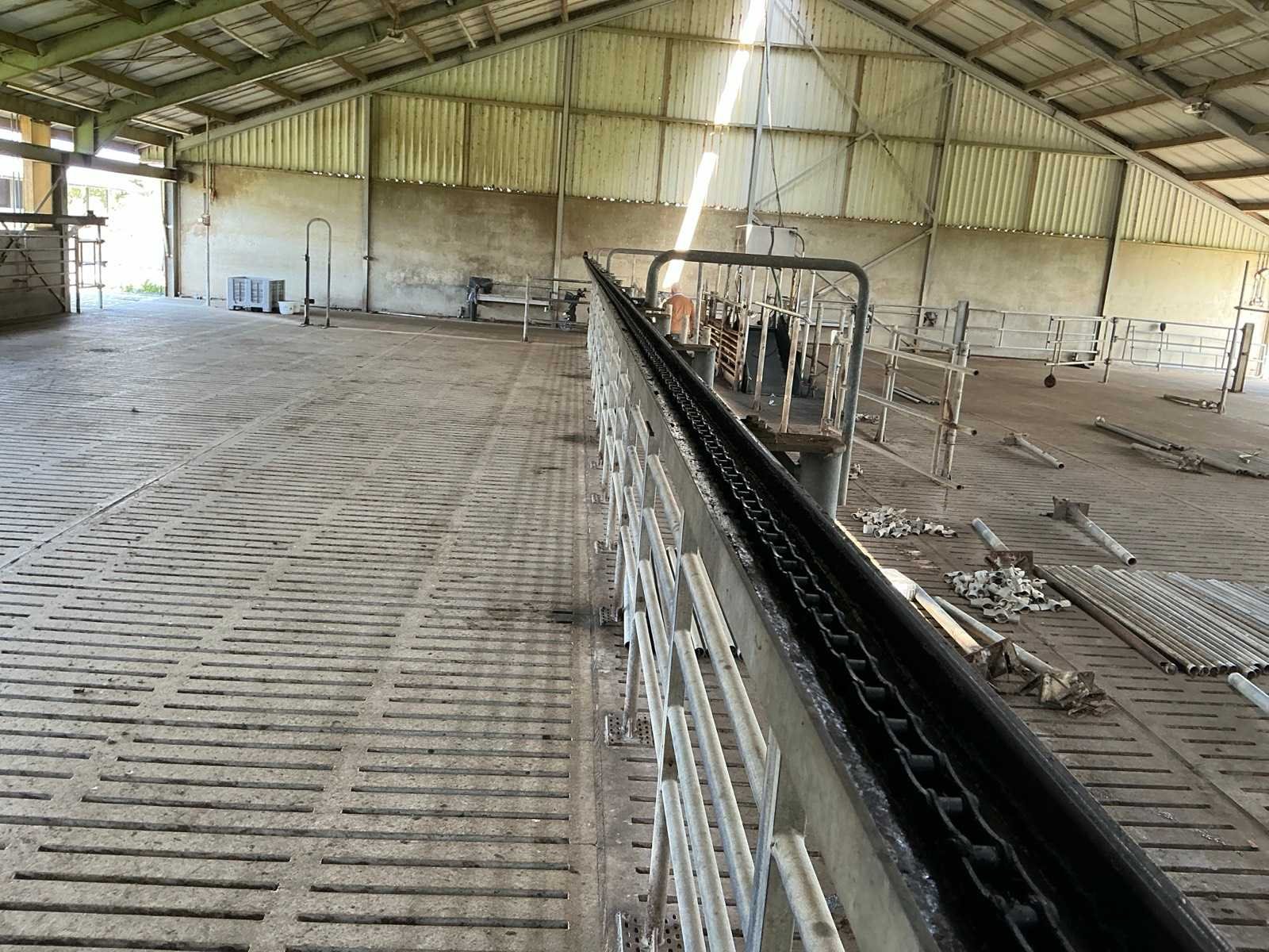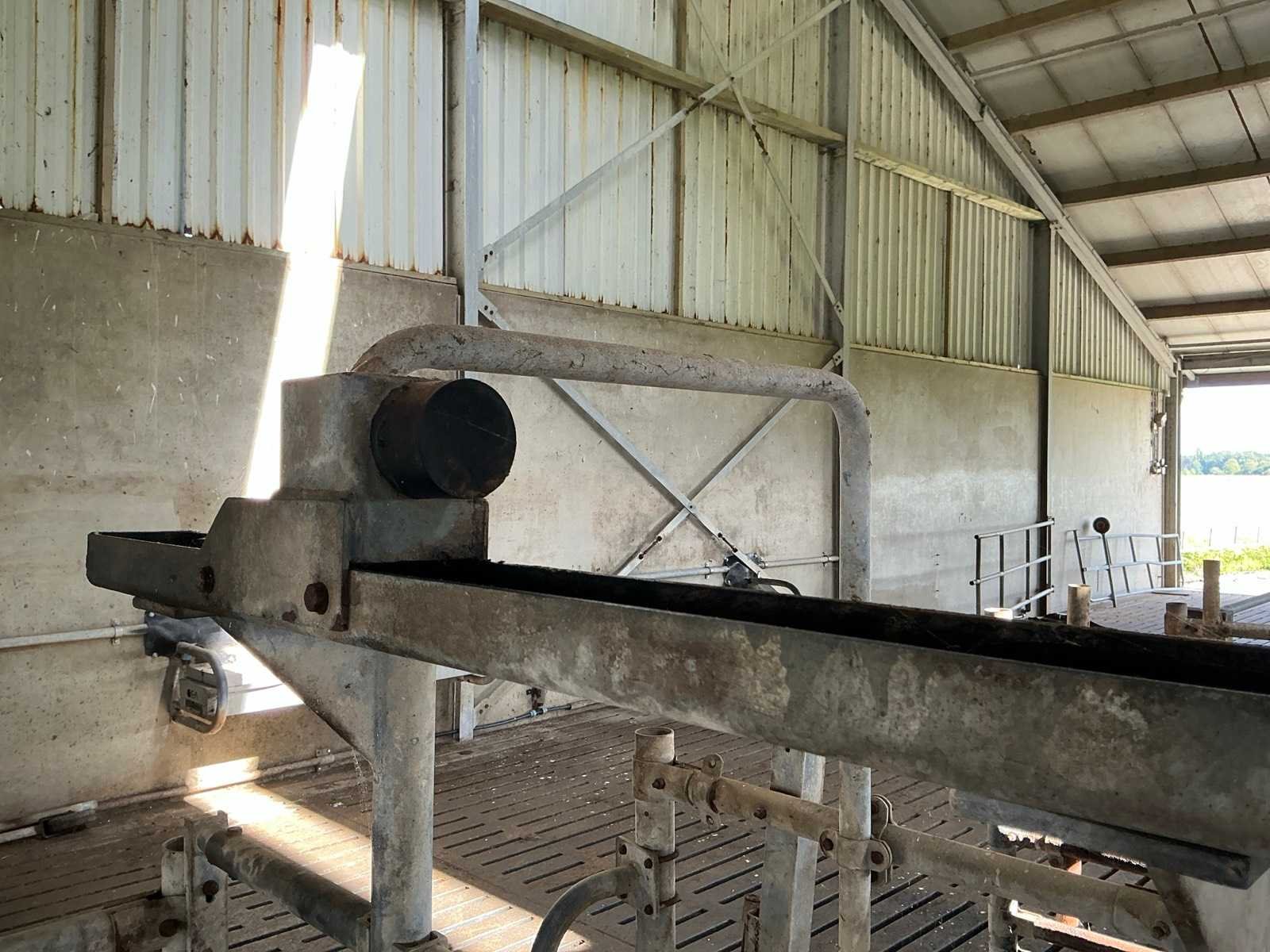 Bestaat uit: opdrijfhek 10200 breed, hoogte 1900mm, rubber strip onderzijde voor mestafvoer, elektrisch aangedreven, hoogte railbaan 1960mm, een zijde op gegalvaniseerde poten met schetsplaat, een zijde montage aan spanten, doorloop hoogte onder rek omhoog 2000mm, 2 bedienings kasten, sectie hekken op poten 1500mm h.o.h., totaal lengte 36200mm, reeds gedemonteerd, Nee Merk: Van Dinther Type: Opdrijfhek auto-mate Bouwjaar: 2011
