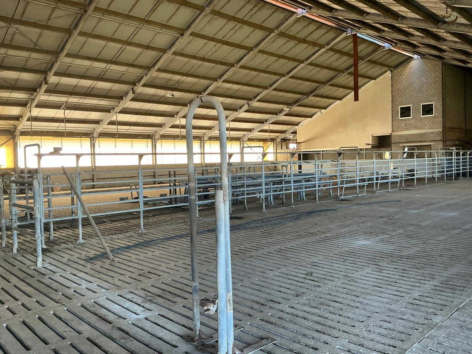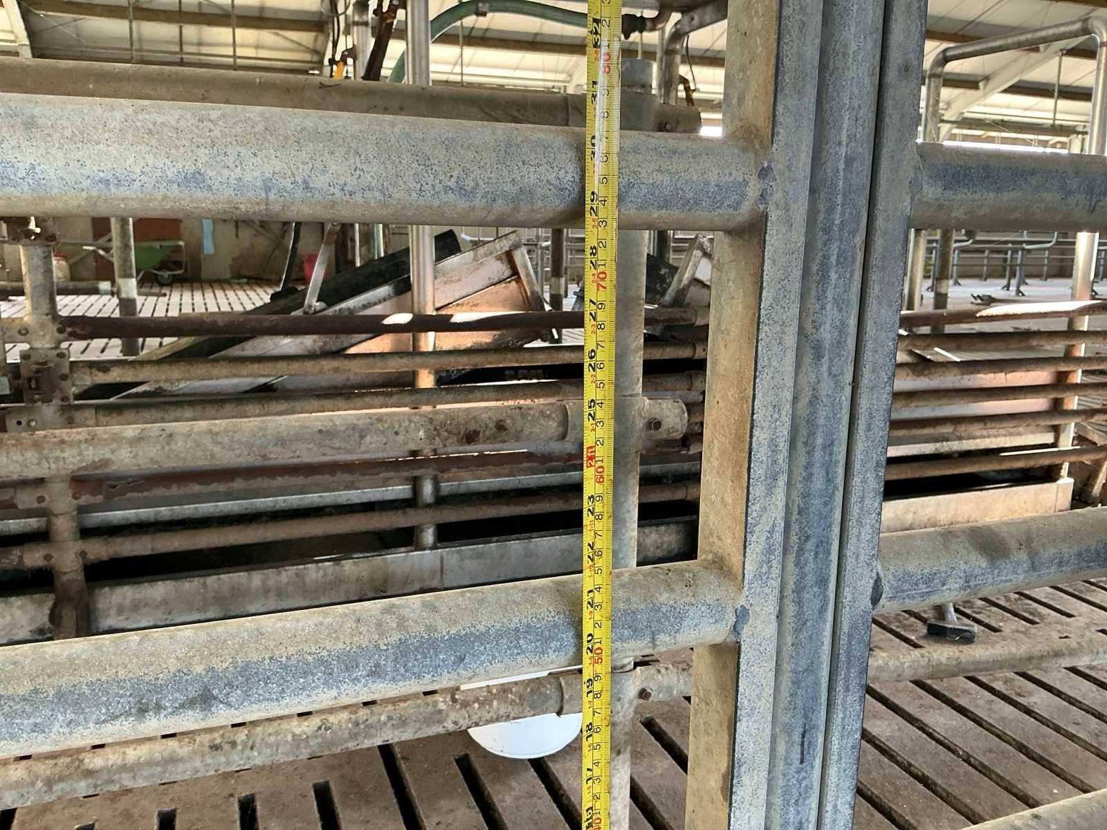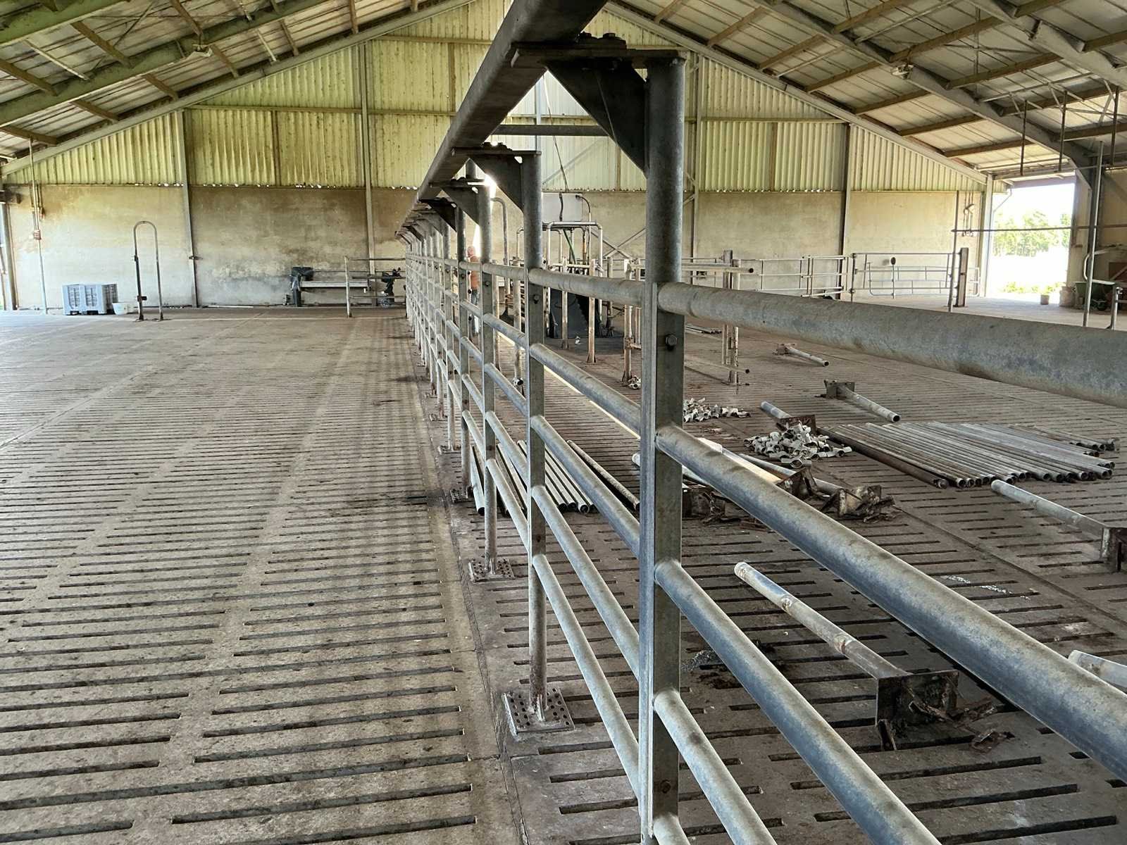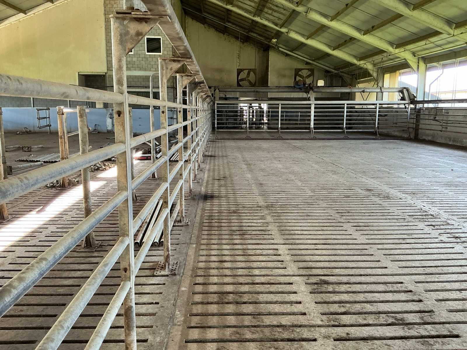 Bestaat uit: opdrijfhek 10200 breed, hoogte 1900mm, rubber strip onderzijde voor mestafvoer, elektrisch aangedreven, hoogte railbaan 1960mm, een zijde op gegalvaniseerde poten met schetsplaat, een zijde montage aan spanten, doorloop hoogte onder rek omhoog 2000mm, 2 bedienings kasten, sectie hekken op poten 1500mm h.o.h., totaal lengte 36200mm, reeds gedemonteerd, Nee Merk: Van Dinther Type: Opdrijfhek auto-mate Bouwjaar: 2011
