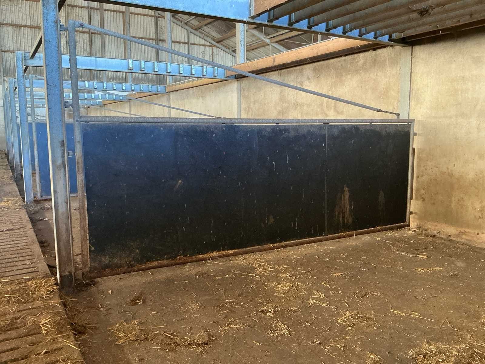 Bestaat uit: 12 stuks, stalen draaipoorten, uitgevoerd in zware agrarische kwaliteit, afmetingen per poort: breedte: 4.800 mm, hoogte: 1.650 mm, hoogte buisconstructie: 2.500 mm, scharnieren: 4 per poort, scharnierstift: Ø ca. 100 mm, lengte: 2.500 mm, bevestigd met 10 bouten per scharnieropstelling, Nee Merk: Schotten / poort