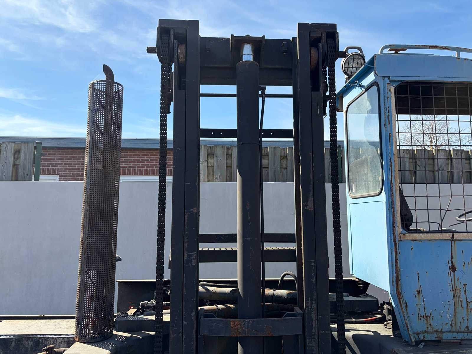 Voorzien van: 5.000 kg hefvermogen bij 600 mm lastzwaartepunt, voorzien van Perkins motor (±57 kW), duplex mast, massieve banden, eigen gewicht rond 10.000–15.000 kg Nee Merk: Kalmar Type: DFQ 50/16/40D Bouwjaar: 1990 Diesel: true Hefvermogen: 5000kg Afgelezen urenstand: 14751 Totale afmeting L: 6000mm Totale afmeting Breedte: 2500mm Totale afmeting Hoogte: 3000mm