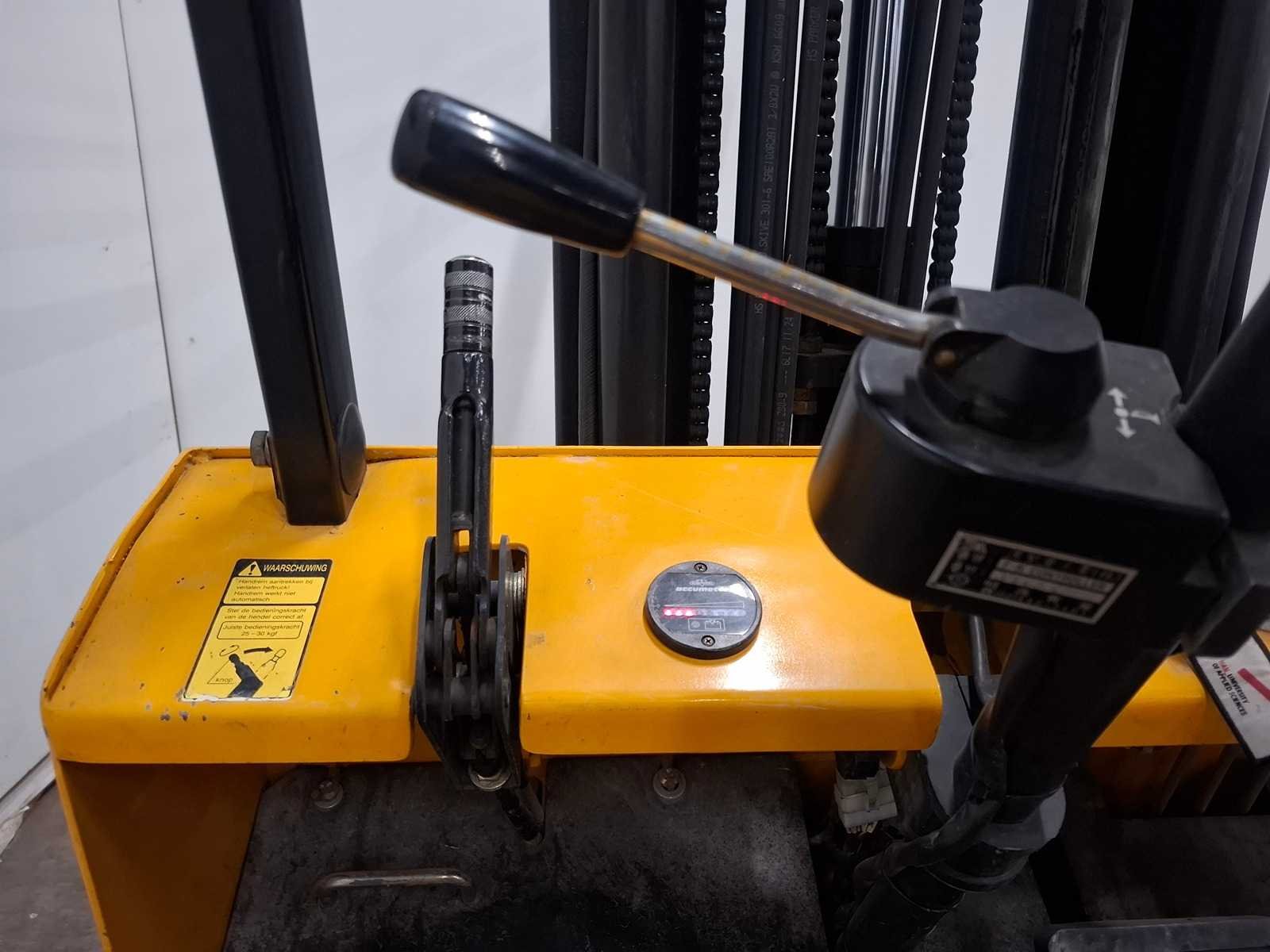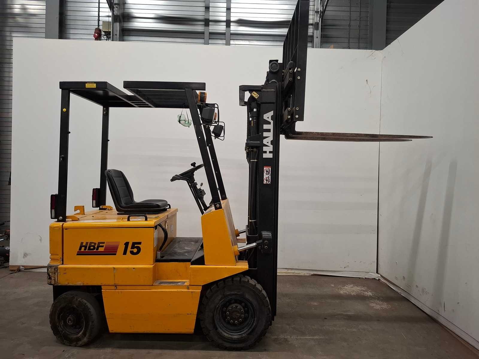 In werkende staat, batterij loopt snel leeg. Nee Merk: Halla Type: HBF 15E Bouwjaar: 1997 Soort band: volrubber Aantal wielen: 4 Accu lader: true Free-lift: true Side-shift: true Triple mast: true Hefvermogen: 1500kg Lepellengte: 1200mm Max. hefhoogte: 5000mm Hefhoogte: 5000mm Vol rubber banden: true Minimale doorrijhoogte: 2100mm Totale afmeting L: 2000mm Totale afmeting Breedte: 1100mm Totale afmeting Hoogte: 2100mm