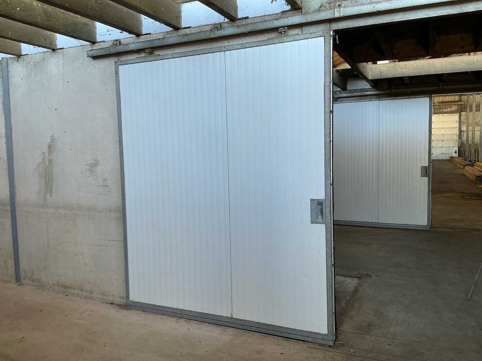 Bestaat uit: 6 stuks schuifdeur 2100mm breed, 2500mm hoog, 60mm dik, gegalvaniseerde omlijsting, tochtborstels, geleiders, rail 4500mm, handgreep binnen en buiten zijde, 2 stuks onder geleider per deur, 15mtr rail bij foto’s met 3 deuren, 60 millimeter dikke sandwichpanelen die in een stalen gegalvaniseerde omranding zijn geplaatst, brandvertragende PIR-hardschuim die tevens bijdraagt aan de isolatie. Nee Afmeting b: 2100mm Afmeting h: 2500mm Totale afmeting Breedte: 2100mm Totale afmeting Hoogte: 2500mm