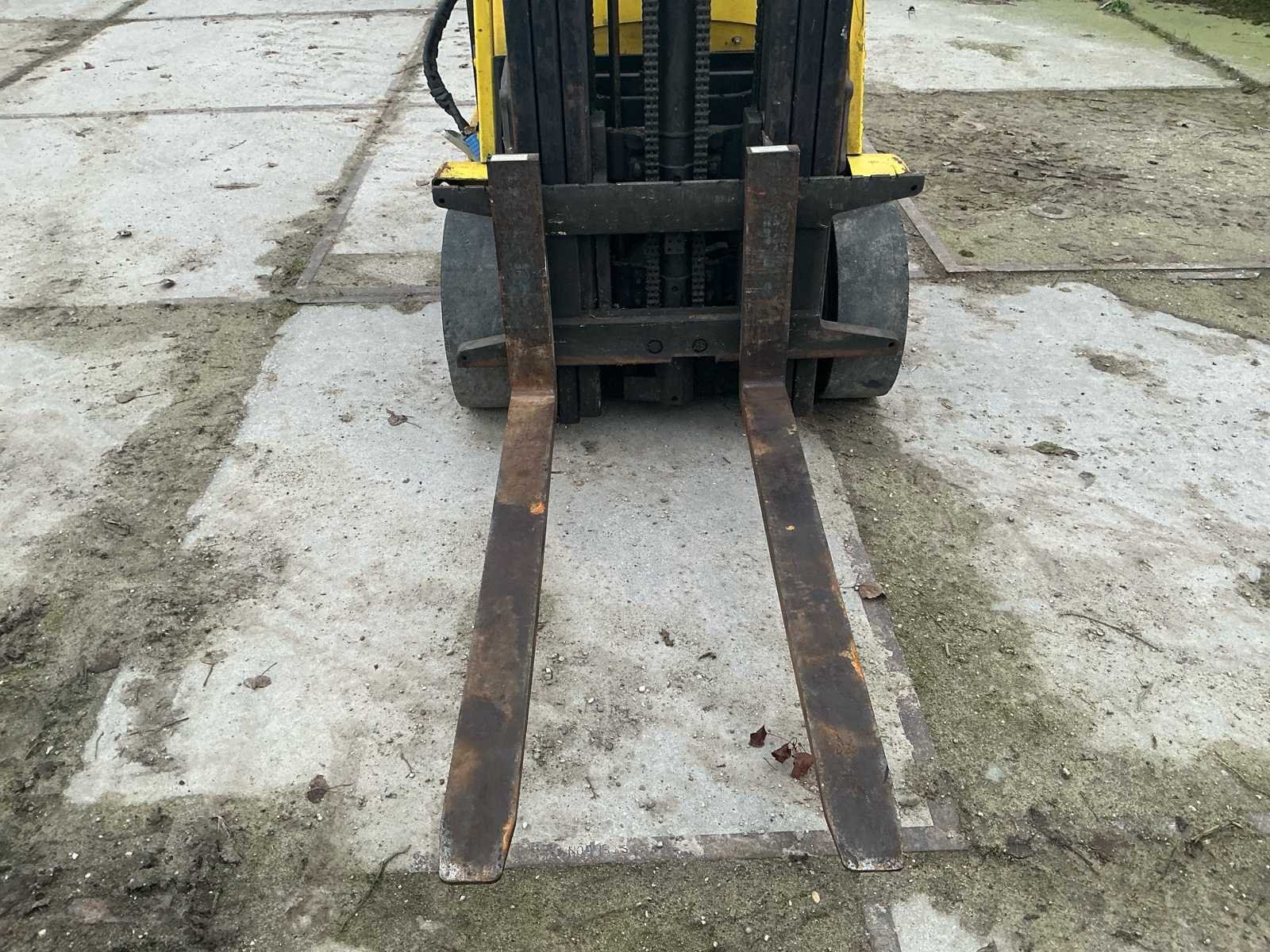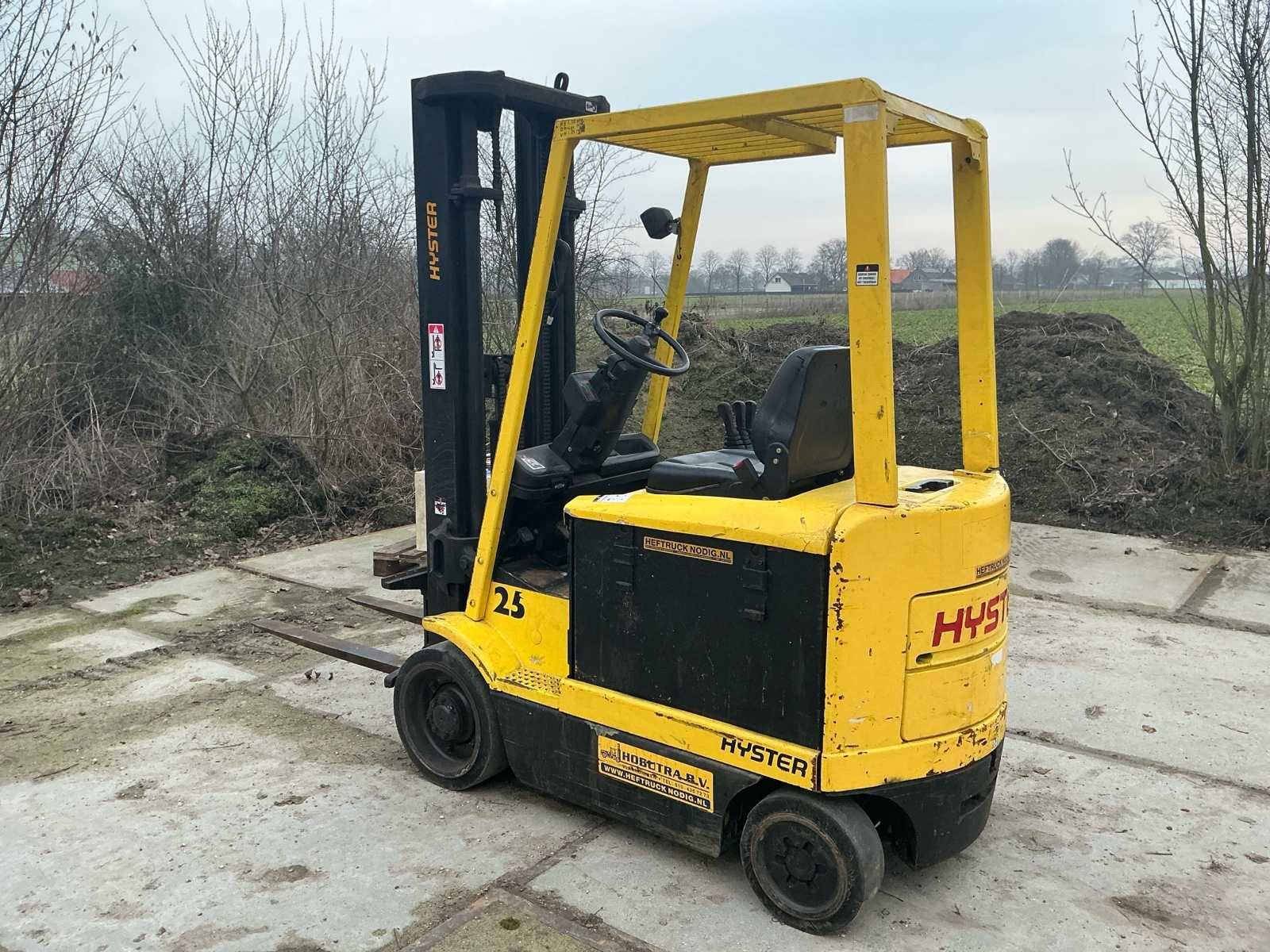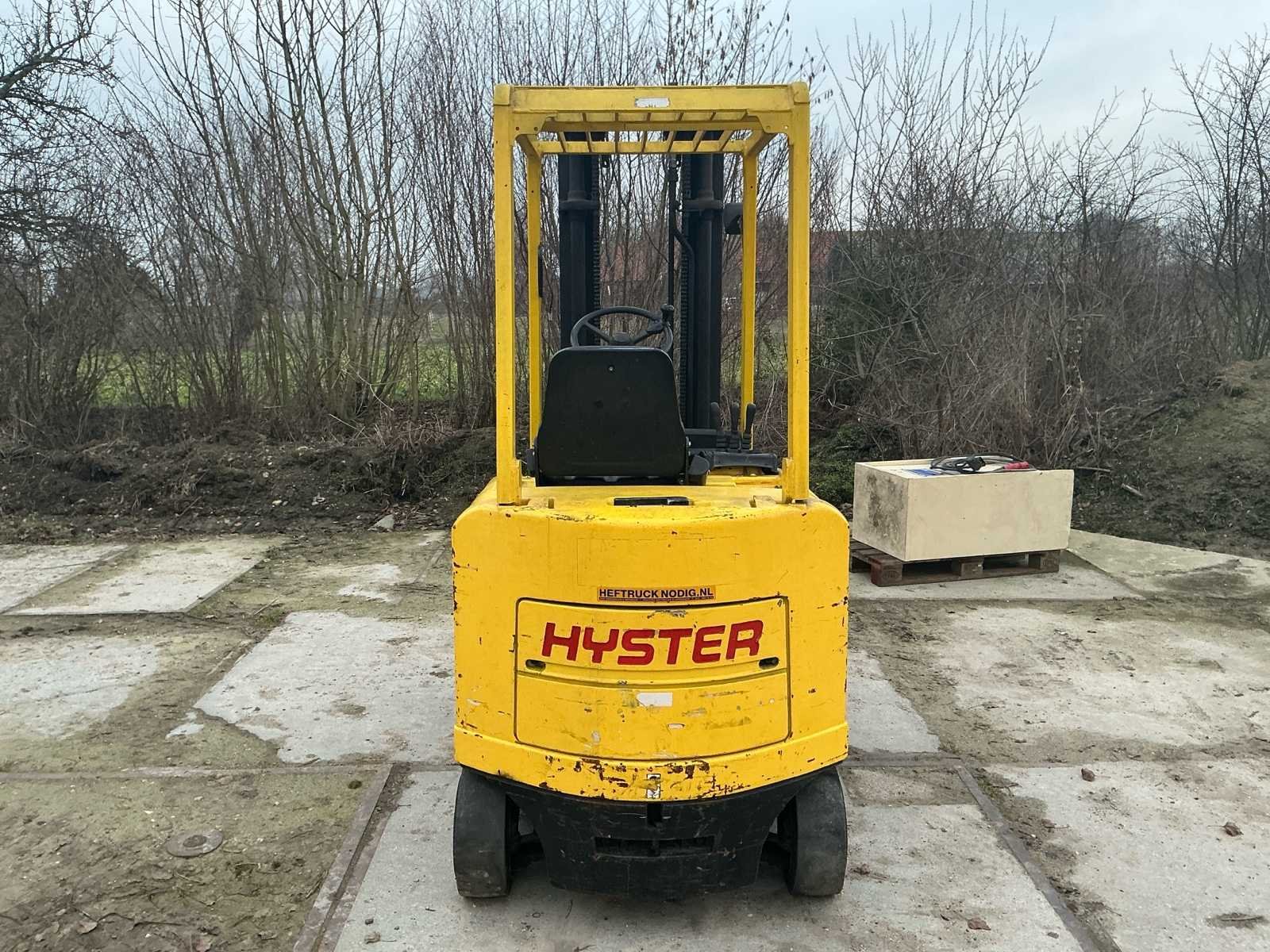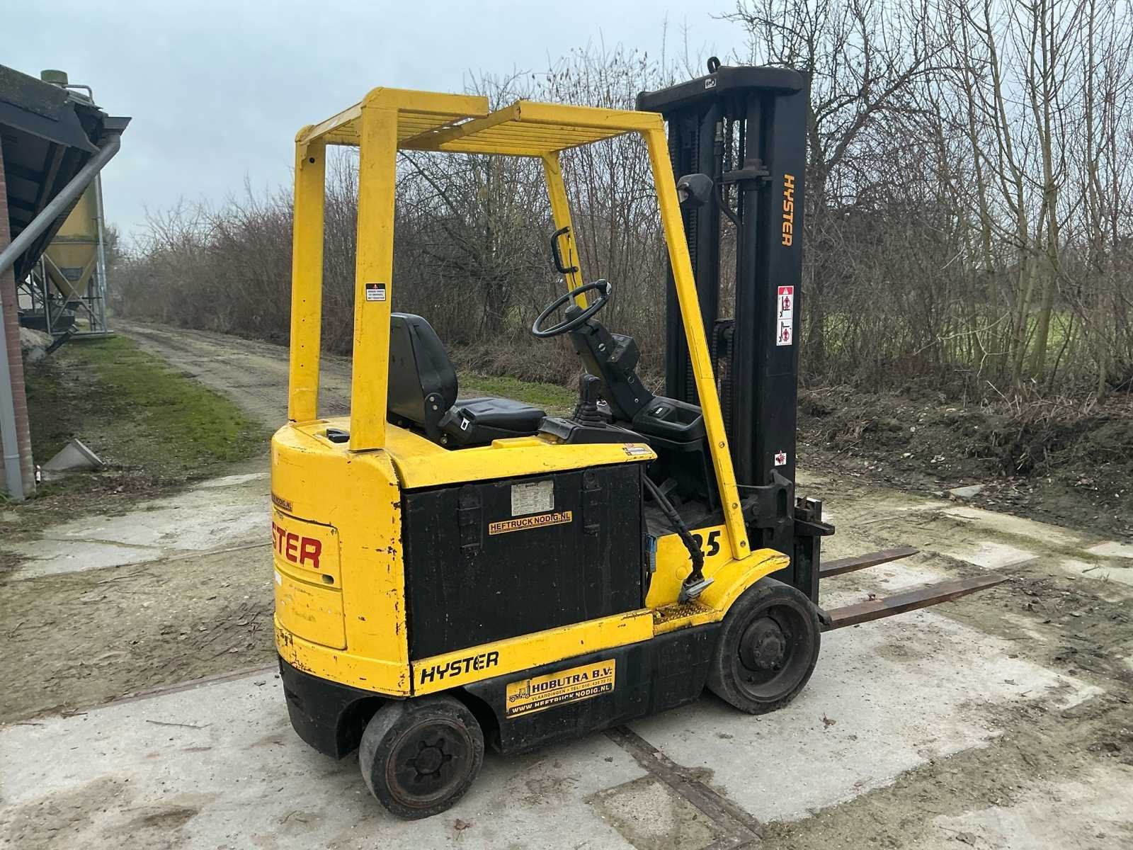Voorzien van: accu lader, verstelbare stuurkolom, trekhaak, werklamp, Nee Merk: Hyster Type: E2.50XM Bouwjaar: 1998 Serienummer: F108AO3408V Brandstof: Elektrisch Mast: Triplex Soort band: Volrubber Aantal wielen: 4 Duplex mast: false Triple mast: true Eigen gewicht: 4905kg Hefvermogen: 1769kg Lepellengte: 1200mm Vol rubber banden: true Minimale doorrijhoogte: 2400mm Totale afmeting L: 3300mm Totale afmeting Breedte: 1100mm Totale afmeting Hoogte: 2400mm