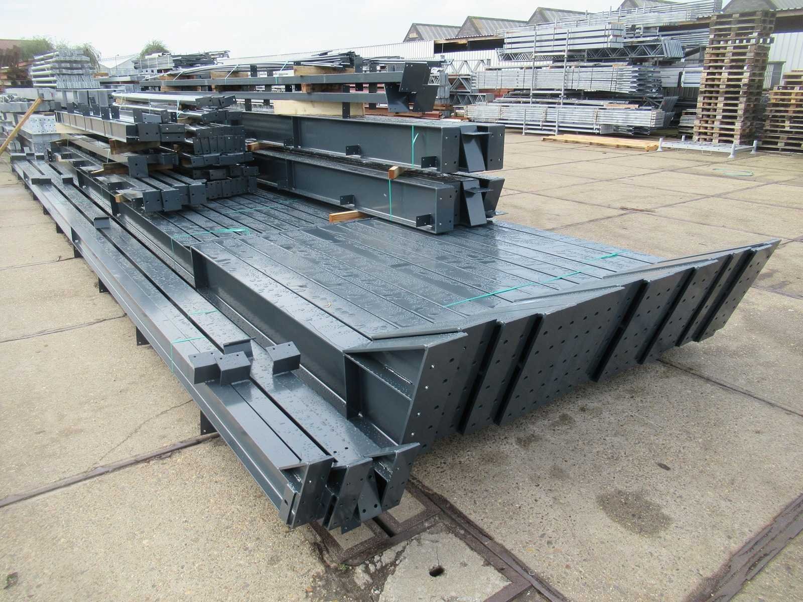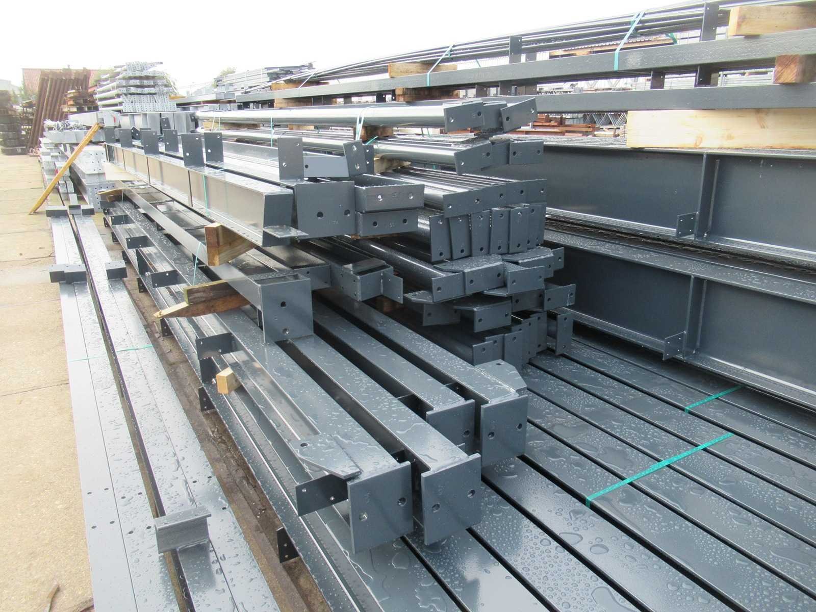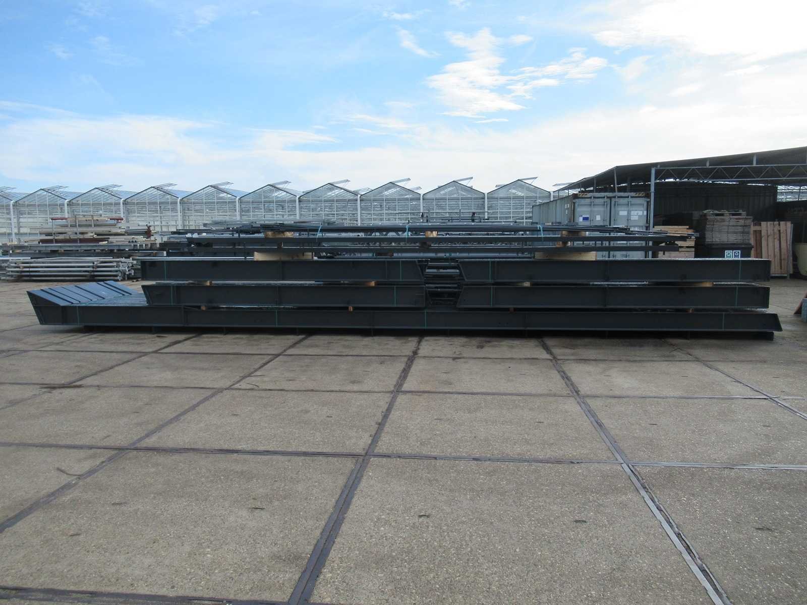 Nederlandse productie; vrije overspanning; spanten h.o.h. 5000mm; staalberekeningen; staaltekeningen; montagetekeningen; ankerplan; staal genummerd volgens montageplan; dakhelling 20 graden; 7 sets tussenspanten IPE360/300; 2 sets eindspanten IPE 200/180 met windstijlen waarvan 1 set voorzien is van een deursparing; voorzien van drukkokers; windverbanden; gordinglippen; bouten en moeren; meestort ankers; staalconstructie volgens productnorm EN1090 (Certificaat na aankoop verkrijgbaar); kavel ligt netjes transportklaar en dient met 1 trailer opgehaald te worden; kavel wordt gratis met een heftruck geladen No Materiaal: Gepoedercoat staal antraciet Bouwjaar: 2026 Totaal oppervlakte: 1000m² Nok hoogte: 9550mm Goot hoogte: 5000mm Totale afmeting L: 40000mm Totale afmeting Breedte: 25000mm