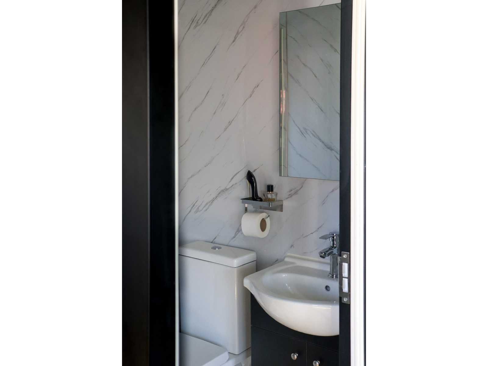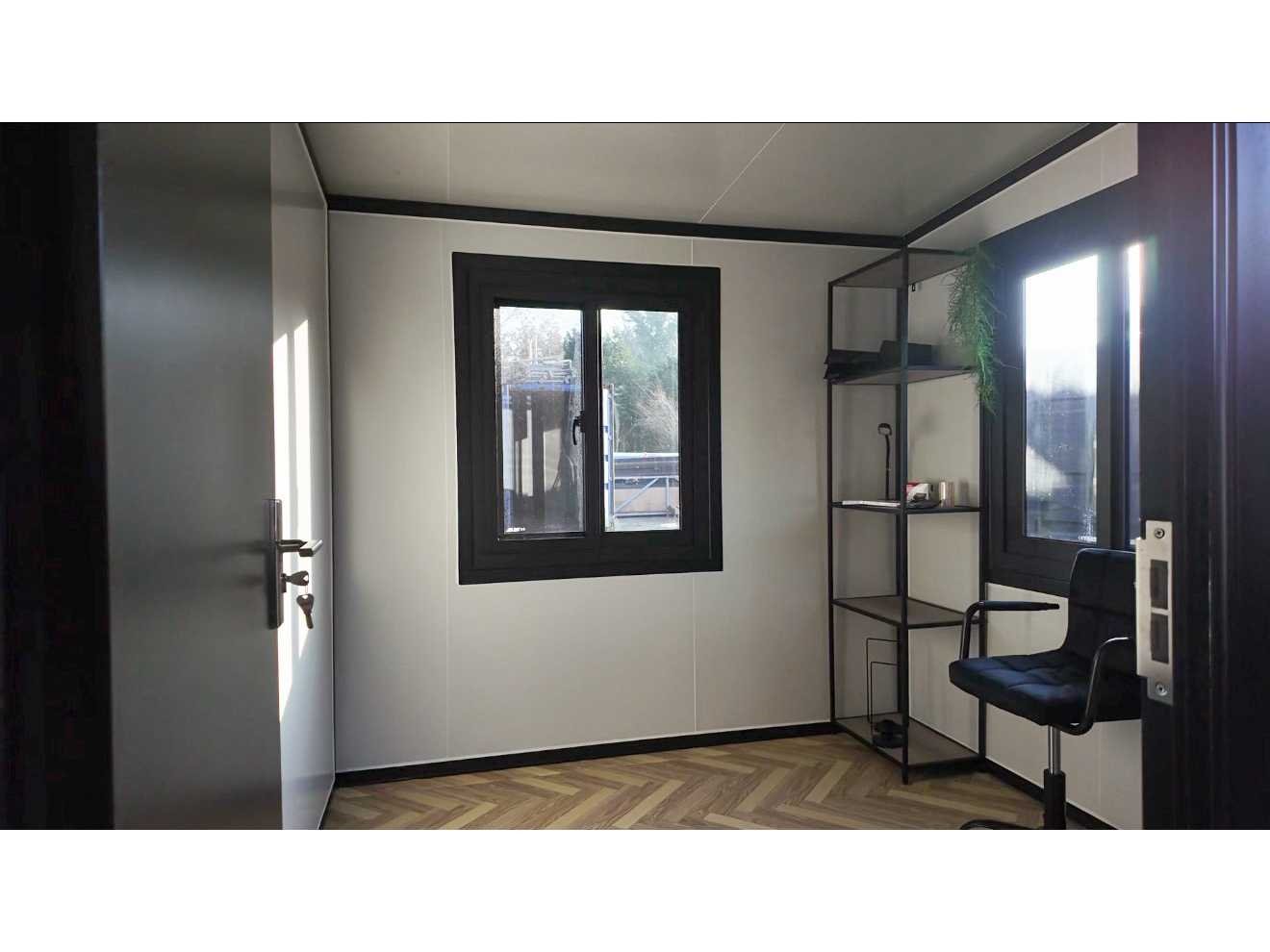 Voorzien van geïsoleerde wanden en dak; 2 slaapkamers; leefruimte met hoekkeuken; badkamer met douche, wc en wastafel; elke ruimte voorzien van verlichting en stopcontacten 230V; meterkast; PVC vloer; aluminium ramen en deuren; afsluitbaar; water, stroom en afvoer kan makkelijk aangesloten worden is voorbereid; ongebruikt en staat transport klaar (let op trailer zit er bij, kleur van Tiny house is met steenmotief met witte voeg foto’s zijn bijgevoegd) (let op meubilair niet inbegrepen) (let op dit model heeft geen glazenwand op de linker zijwand foto’s zijn ter illustratie, van binnen is hij verder exact hetzelfde) (transport afmetingen 590x220x248 cm, gewicht 3500 kg) Nee Merk: Rhino Houses Model: 36,5 m2 Product type: 2 slaapkamers, badkamer en keuken Gewicht: 3500 Lengte: 5900 Breedte: 6200 Hoogte: 2480