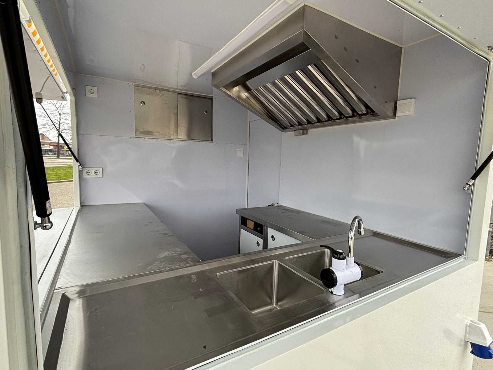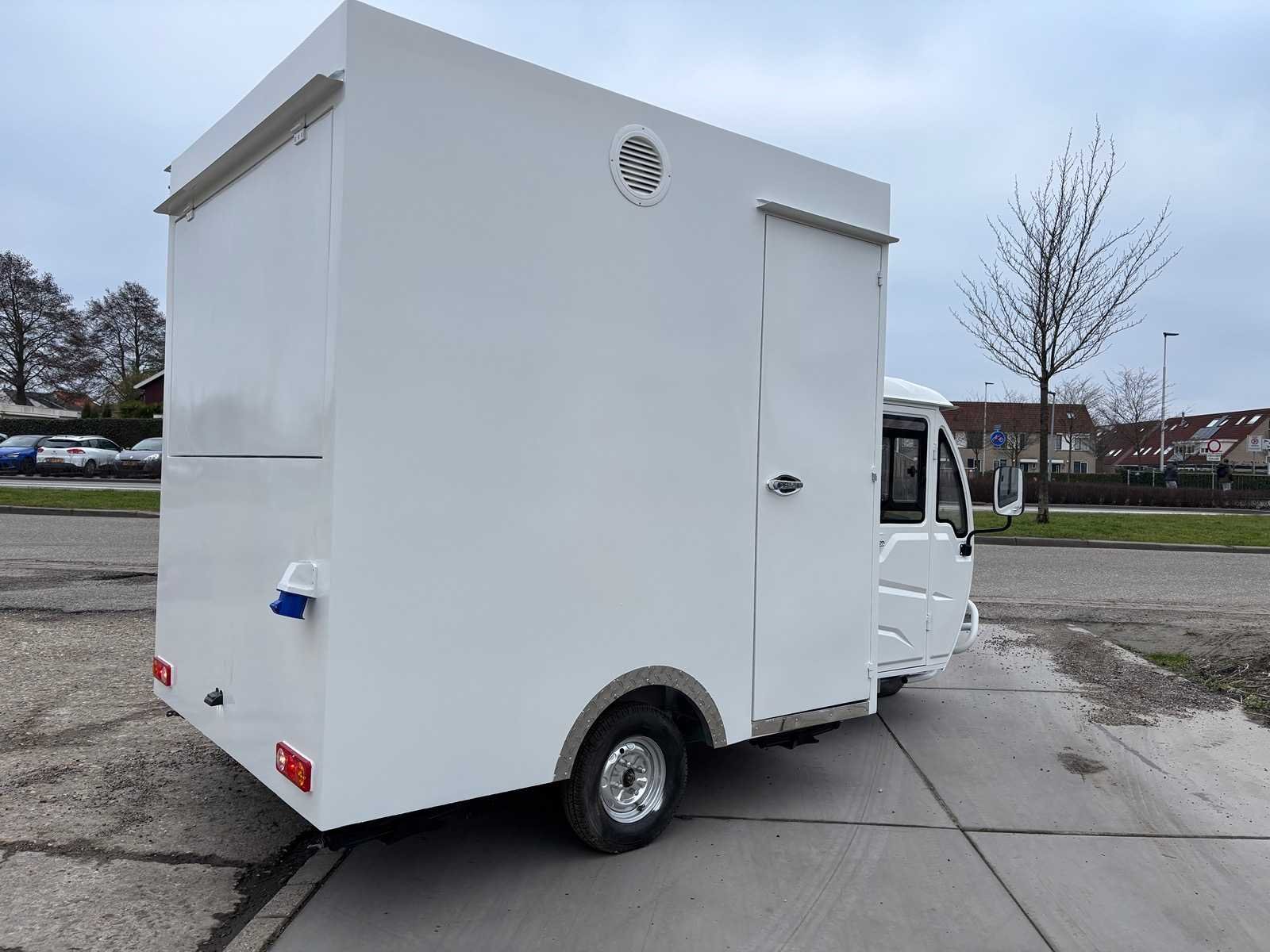 Electrisch aangedreven 30kmph (zonder kenteken) Warm/koud water aanvoer met schoon en vuilwater opslag tank RVS werkbanken met opslag kasten Koel/vries combinatie Dubbele verkoop luiken Nee Merk: Mobiele foodtruck Fuel Type: Elektrisch Type transmissie: Automatisch Motorvermogen (kW): 5 Bouwjaar: 2026 Afgelezen kilometerstand: 0km Aantal assen: 1 Eigen gewicht: 650kg Totale afmeting Lengte: 3700mm Totale afmeting Breedte: 2000mm Totale afmeting Hoogte: 2350mm