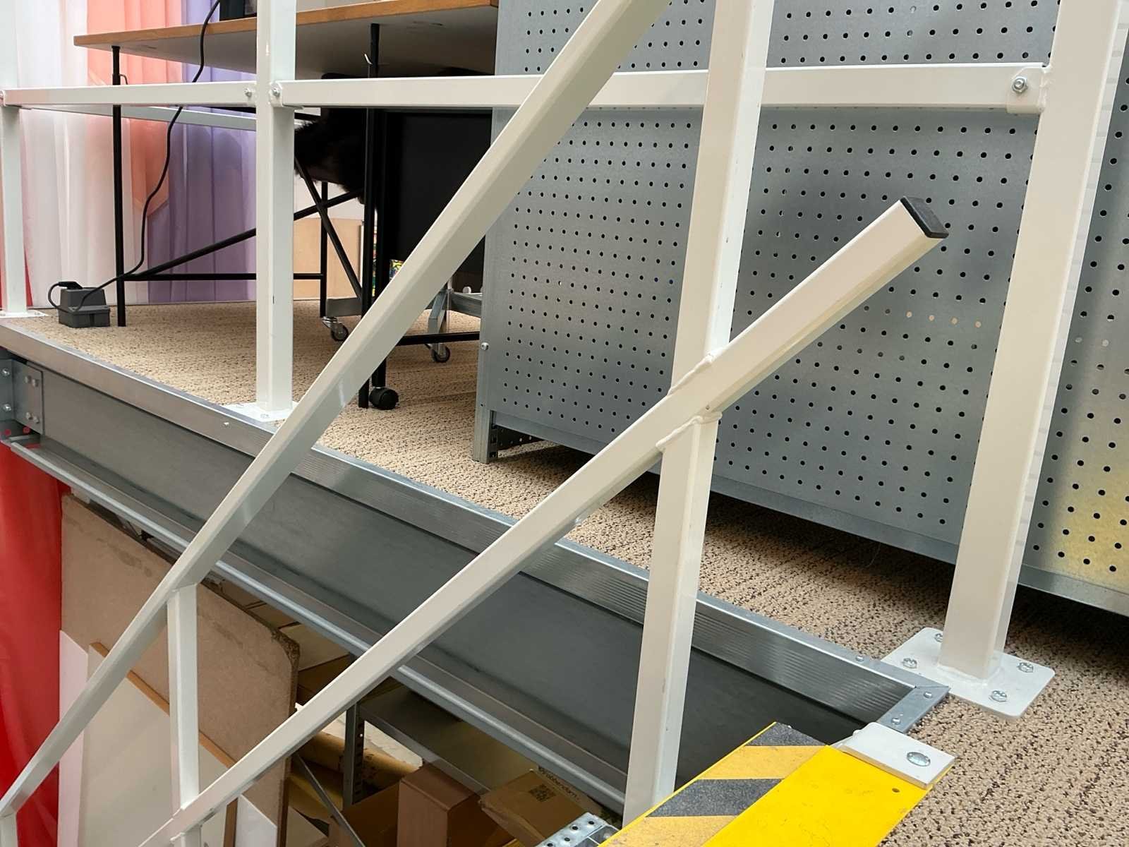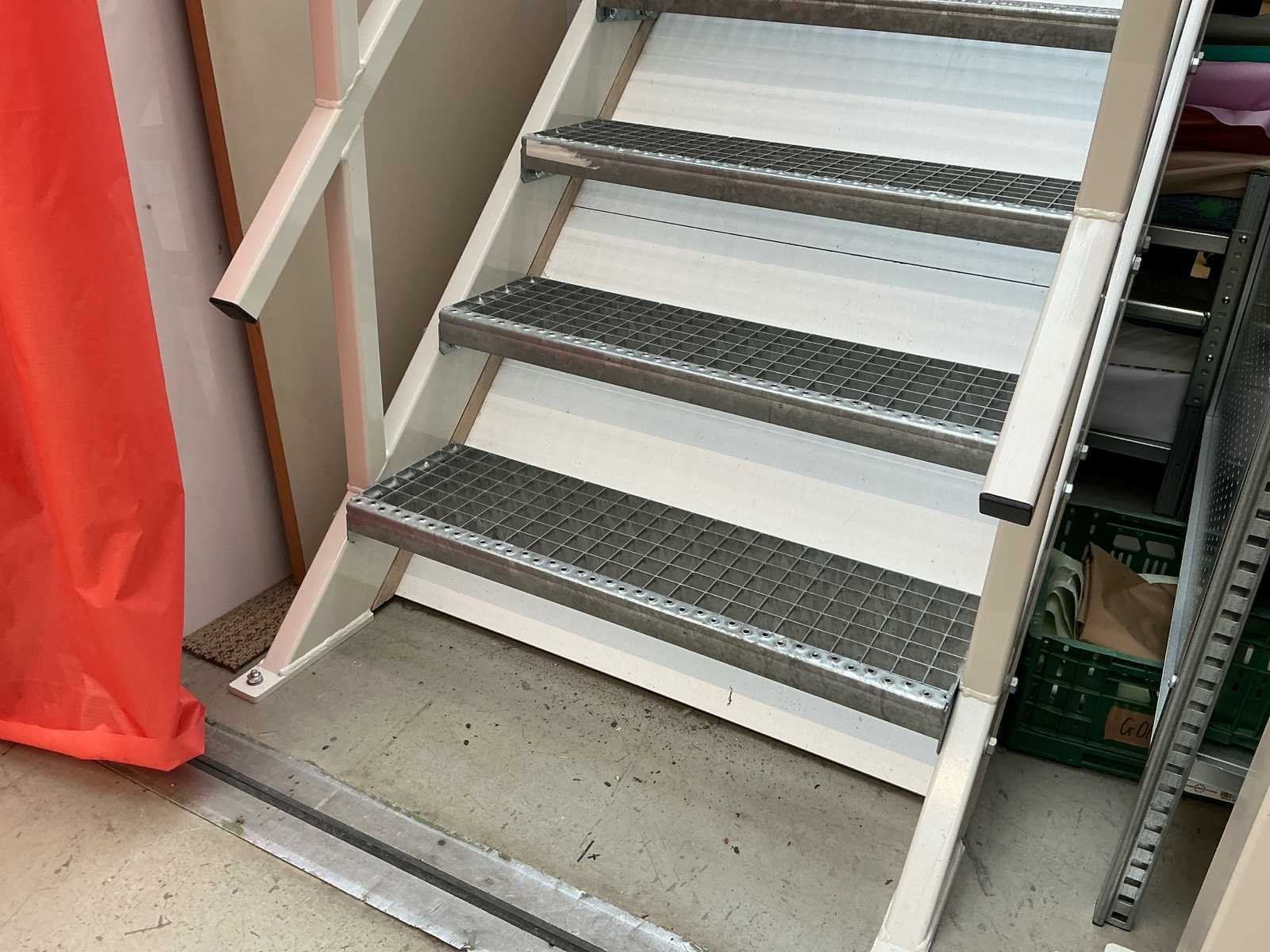 Voorzien van: balustrade 2x langs de lange zijdes, balustrade bij trap, metalen rechte trap, plaat onder de trap, vloerbedekking in stroken vastgemaakt dubbelzijdige tape, alle bevestigingsmaterialen, 7x stroompunten, onderzijde voorzien van 9x 3 meter ledverlichting, Nee Merk: Multiprofiel Bouwjaar: 2023 Totale afmeting L: 1329mm Totale afmeting Breedte: 5700mm Totale afmeting Hoogte: 2500mm