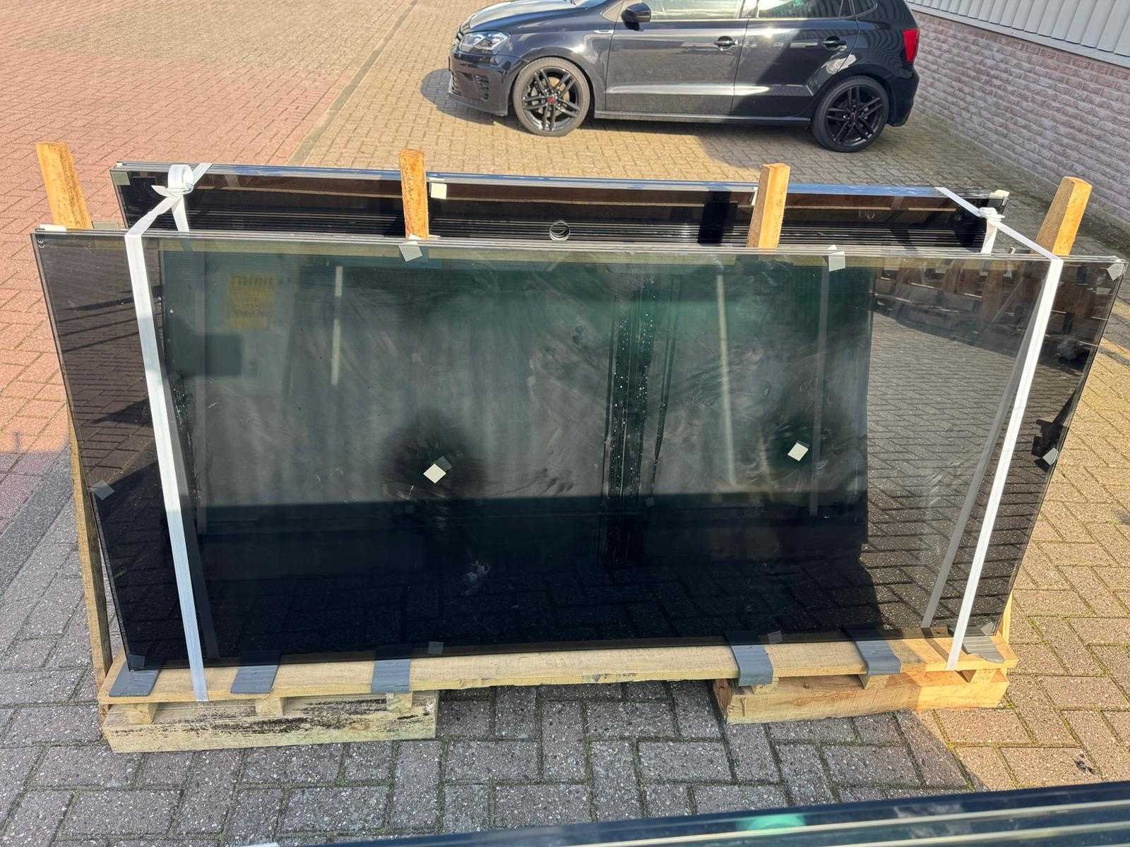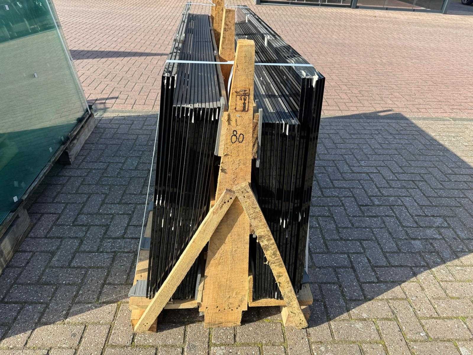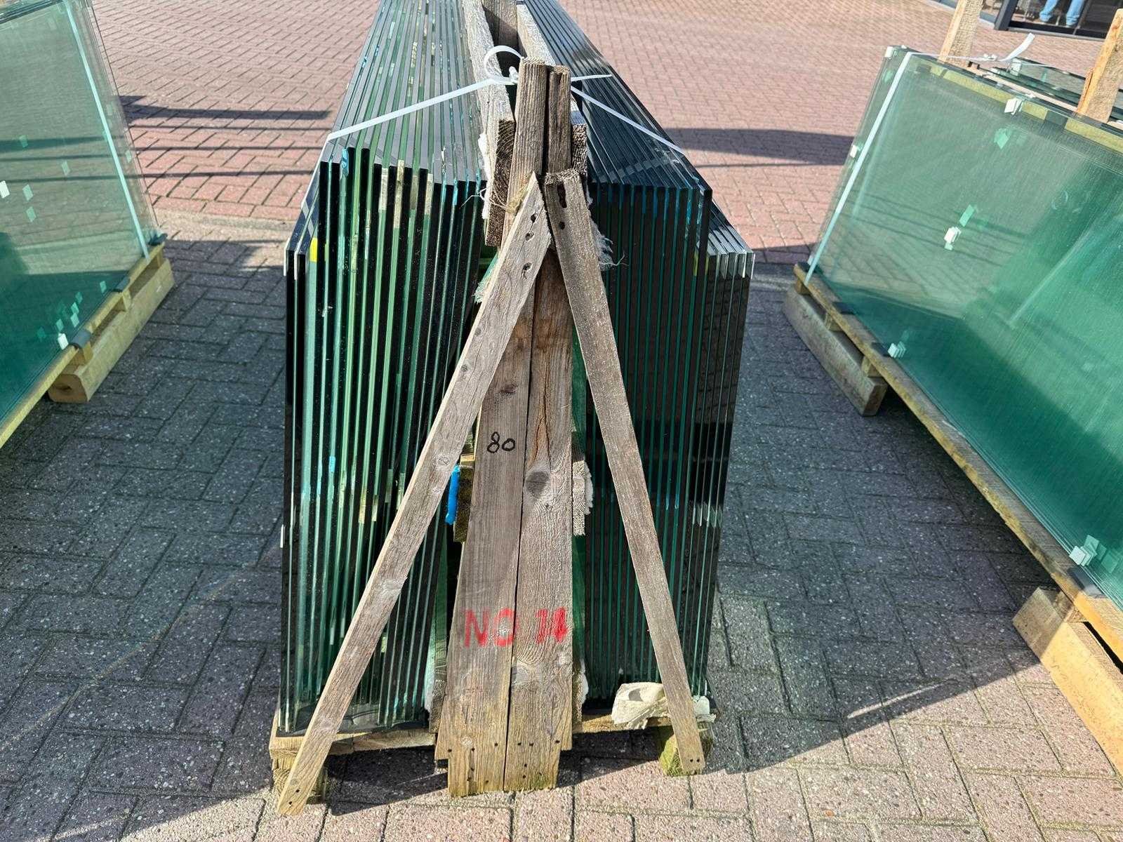 180 stuks ramen gehard veiligheidsglas 10mm dik • Diverse afmetingen • Totaal: 180 ramen • Conditie: partijhandel – kan lichte strepen, vlekjes of vegen bevatten • Verpakking: op pallet met glas • Opmerking: foto van overkapping is ter illustratie • Heftruck is aanwezig voor het afhalen Nee