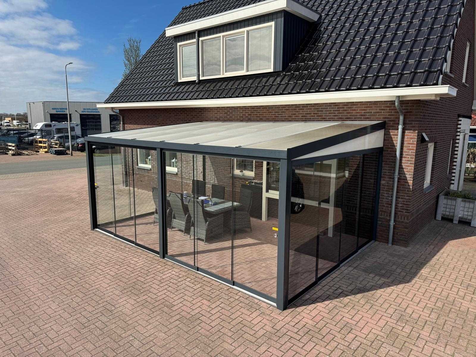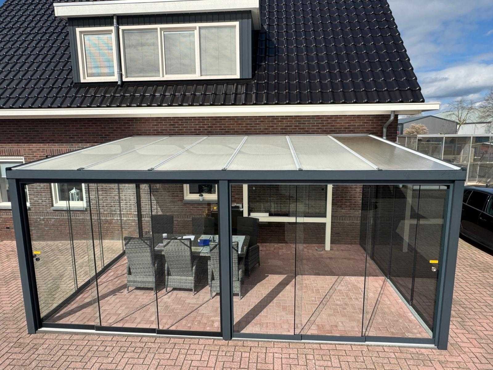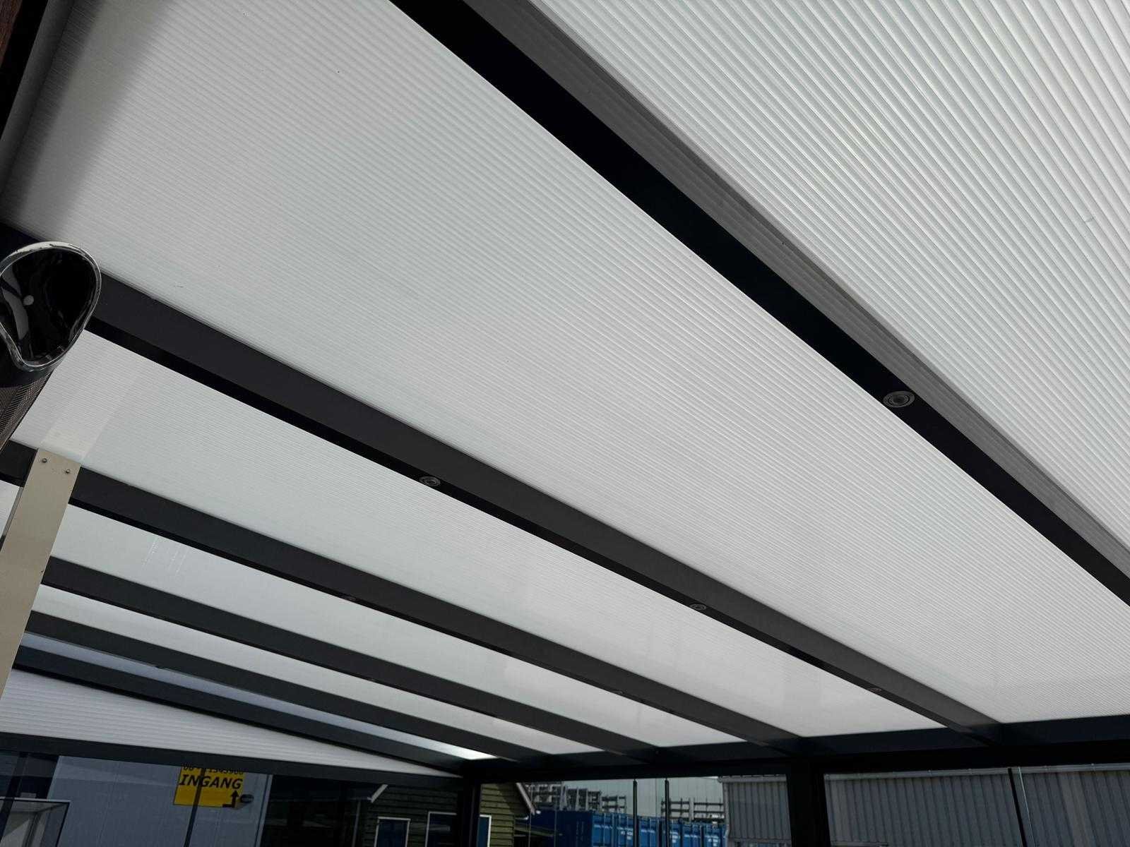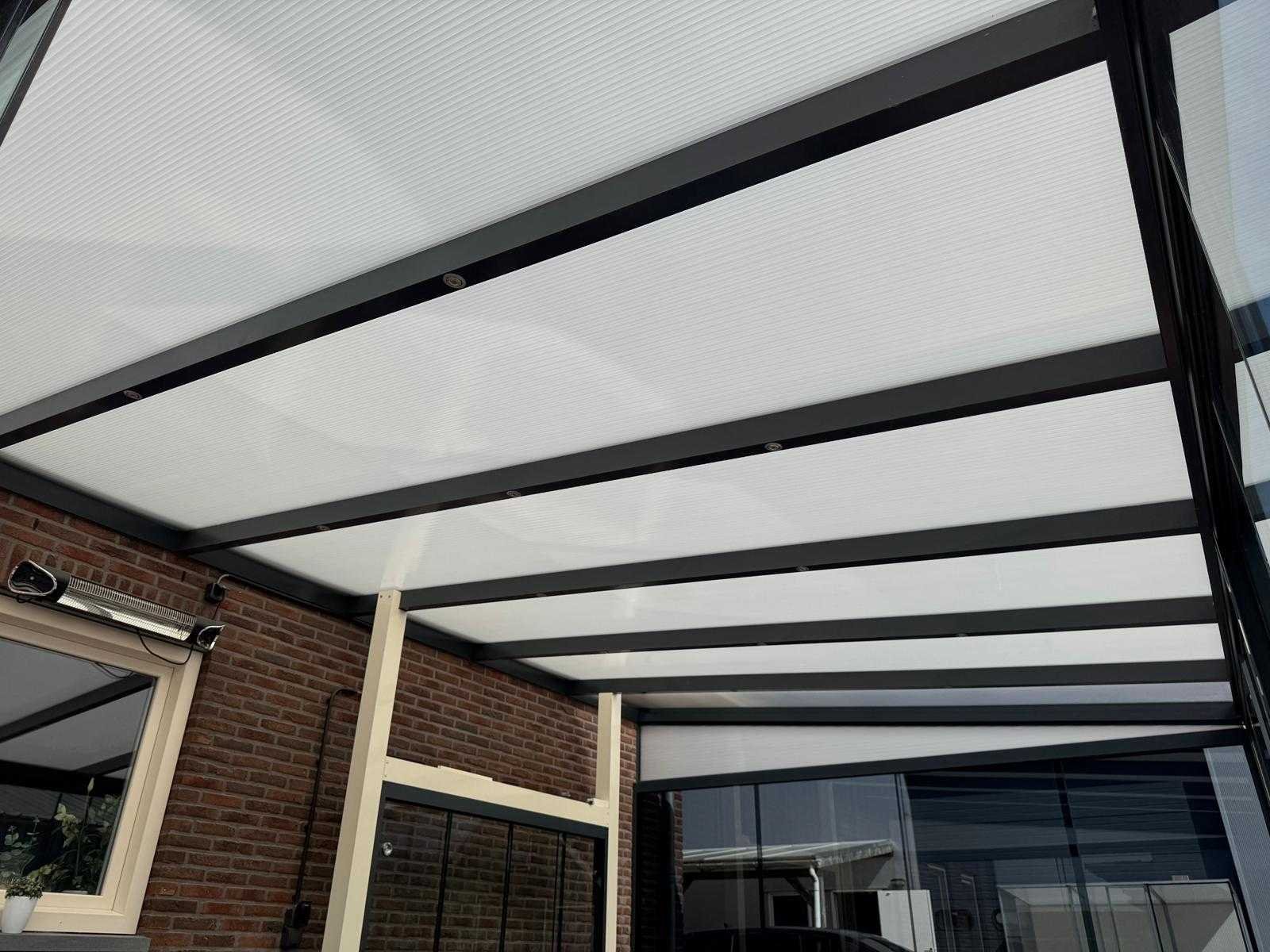 Aluminium overkapping met een breedte van 600 cm en een diepte van 250 cm. De constructie is uitgevoerd in hoogwaardig aluminium in de kleur antraciet (RAL 7016), wat zorgt voor een moderne en onderhoudsarme afwerking. Het dak is voorzien van 16 mm dikke polycarbonaat platen in opaal (melkwit) uitvoering. Deze platen zijn zonwerend en zorgen voor een prettige lichtinval zonder direct fel zonlicht. De overkapping wordt geleverd als bouwpakket met alle benodigde materialen. Let op: De gebruikte foto’s zijn deels voorbeeldfoto’s en geven een impressie van een gemonteerde overkapping. Deze komen niet één-op-één overeen met het aangeboden product. Op de voorbeeldfoto’s kunnen opties zichtbaar zijn, zoals spotverlichting, die niet inbegrepen zijn bij deze overkapping. Daarnaast zijn er foto’s toegevoegd van de daadwerkelijke losse materialen zoals geleverd. Nee