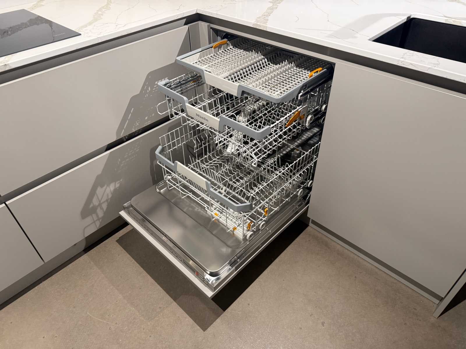 Afmetingen linkerdeel circa 210x60x225 cm; afmetingen middelste deel circa 343x60x93 cm; afmetingen schiereiland circa 327x97x93 cm; zonder krukken; keuken dient gedemonteerd te worden op locatie Nee Merk: Schröder Type keukenopstelling: Schiereiland Kraan: Quooker (zonder boiler) Gootsteen: ja Aanrechtblad: Composiey Calacatta Vagli gepolijst Magnetron: Combi-oven Miele H7240BM Fornuis: Miele KM789FL Koelkast: Miele K7113D Softclose: true Oven: Miele H7440B Kleur: Feelwood black (anti-fingerprint) + Opaco kiezelgrijs (anti-fingerprint)
