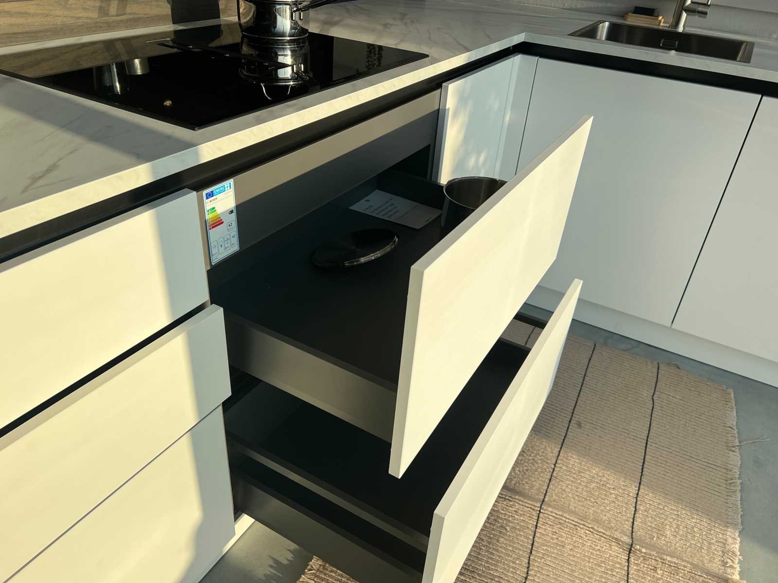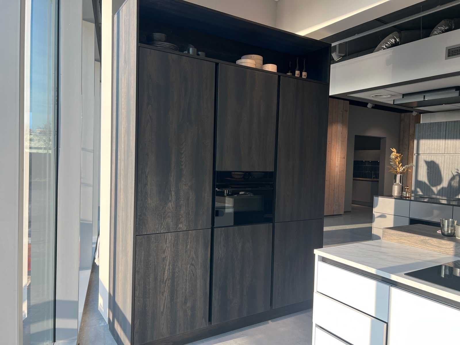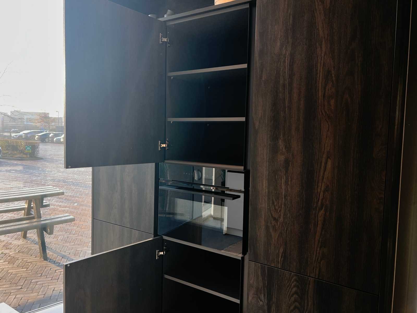 Afmetingen kastenwand circa 189,8x60x260 cm; reeds gedemonteerd en ingepakt op pallets. (afstapelen, omruilen of statiegeld per pallet); pallets zijn niet inbegrepen; statiegeld betalen bij afhalen, of pallets afstapelen; werkblad niet ingepakt op pallets (26-HKW-03391); let op, blad licht beschadigd bij spoelbak; zonder barkrukken Nee Merk: Schröder Type keukenopstelling: Schiereiland Lengte: 230cm Breedte: 60cm Hoogte: 102cm Kraan: Lanesto Gootsteen: Lanesto Werkblad hoogte: 94cm Aanrechtblad: Toplaminate marmer white Magnetron: Bosch CMG9241B1 Fornuis: Bosch PVQ79525E Koelkast: Bosch KIV86SFE0 Softclose: true Vaatwasser: Bosch SMV4HB800E Lengte kookeiland: 242,2cm Breedte kookeiland: 110cm Hoogte kookeiland: 102cm Kleur: Sherwood donkerbruin + Touch bianco