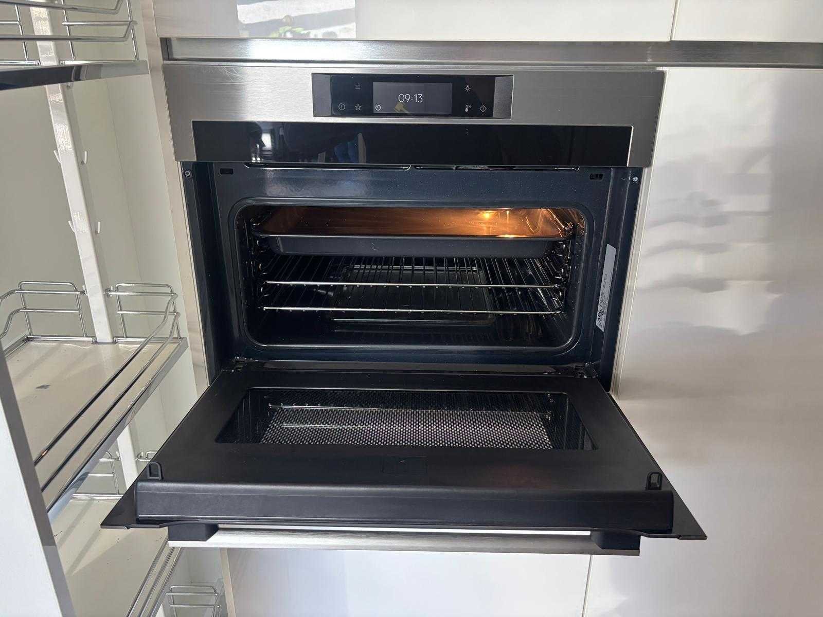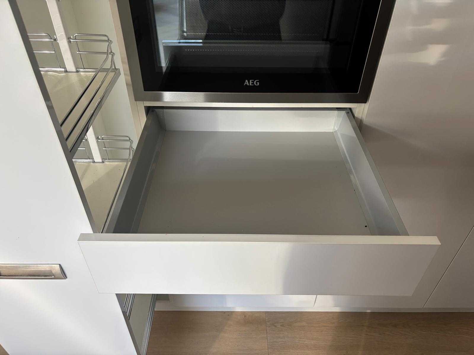 Conditie: gebruikt; afmetingen linkerdeel circa 339x60x90 cm; afmetingen rechterdeel circa 415x60x247 cm; reeds gedemonteerd en ingepakt op pallets. (afstapelen, omruilen of statiegeld per pallet); pallets zijn niet inbegrepen; statiegeld betalen bij afhalen, of pallets afstapelen; werkblad niet ingepakt op pallets (26-2DE-04027); zonder kraan Nee Type keukenopstelling: Hoek Aanrechtblad: Keramiek Koffiezetapparaat: AEG Fornuis: AEG Softclose: true Oven: AEG Afzuigkap: AEG Vaatwasser: Miele Kleur: Wit