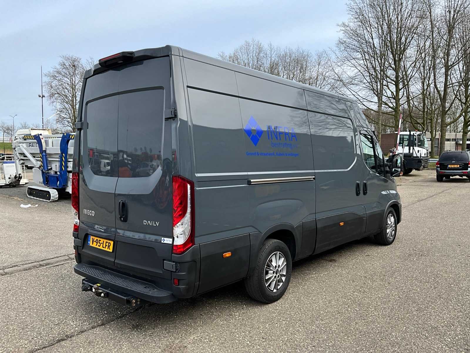 Elektrische ramen + spiegels, stuurwiel bediening, cruise control, multimedia systeem met TomTom navigatie, android auto en apple carplay voorbereid, climate control, lucht geveerde achteras, 3 zitplaatsen, achteruitrijcamera, trekhaak met 13-polige stekker Nee Kenteken: V-95-LFR Merk: Iveco Model: Daily 35S18 3.0 Bouwjaar: 2022 Chassisnummer: ZCFC535C005504868 Afgelezen kilometerstand: 76659km Cilinderinhoud: 2998cc Vermogen (kW): 129kW Brandstof: diesel Datum eerste toelating: 2022-09-15 Datum eerste toelating (NL): 2025-02-11 APK vervaldatum: 2026-09-15 NAP status: Geen oordeel Transmissie: Automaat Aantal zitplaatsen: 3 Kleur: grijs Nationaliteit documenten: Nederland Bruto BPM (NL): 26489 Rest BPM: 10066 Aantal sleutels: 2 Ledig gewicht: 2312kg Laadvermogen: 1188kg Vermogen (pk): 175 Aantal cilinders: 4 Carrosserie: Gesloten opbouw Emissieklasse: 6 Maximaal trekgewicht ongeremd: 750 Maximaal trekgewicht geremd: 3500 Self drive export possible : true