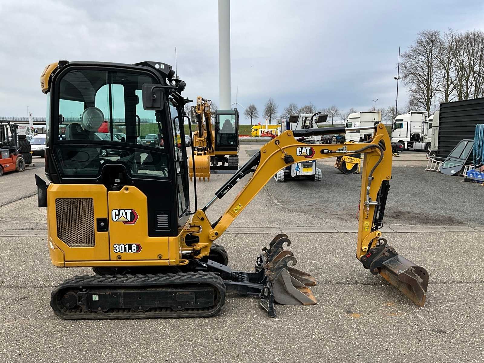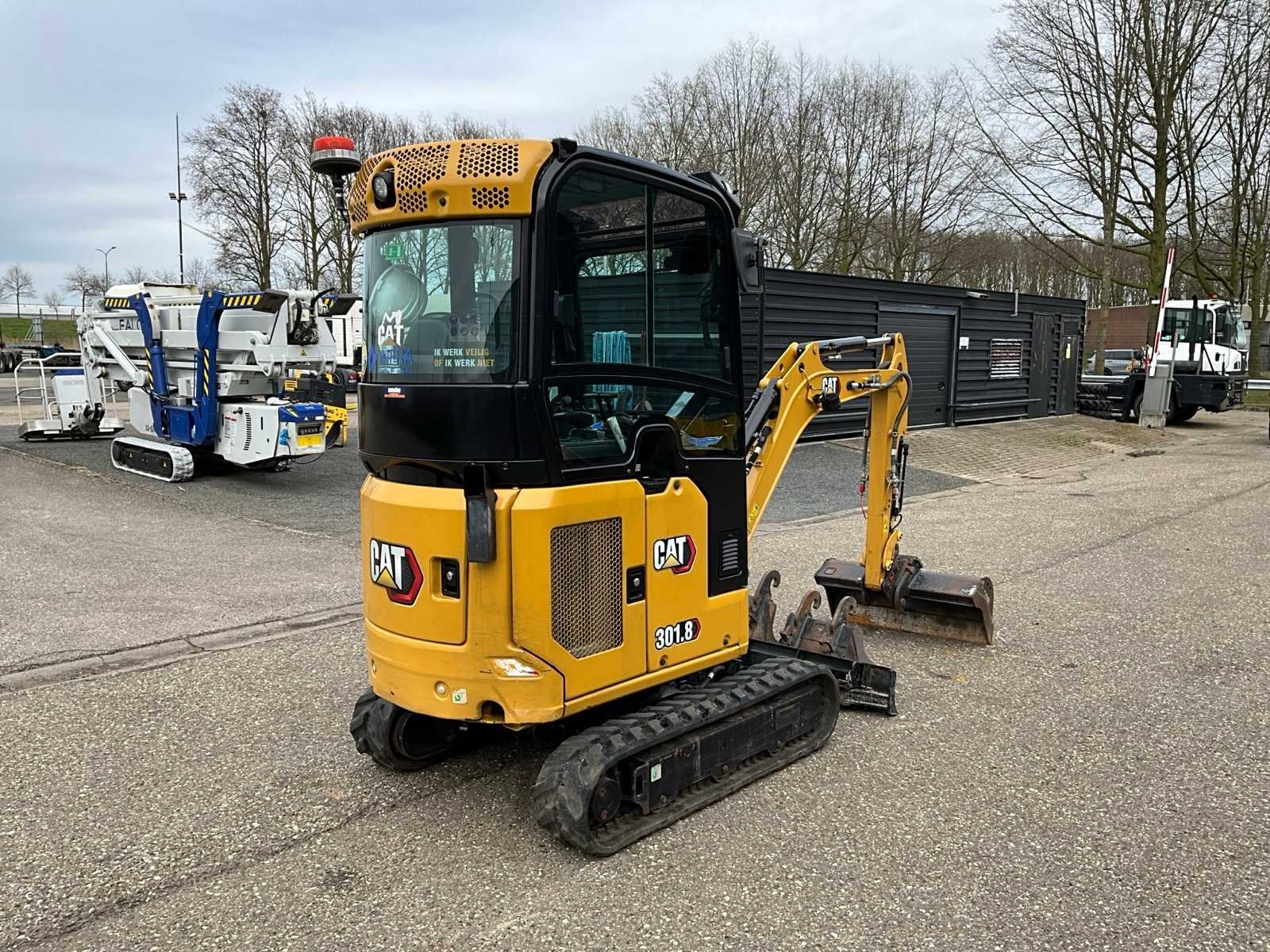 CW05 hydraulische snelwissel, CW05 slotenbak 100cm, CW05 dieplepel 40cm, CW05 banaanbak 25cm, 3e functie, rijden met joystick, breedte verstelbaar rijwerk, auto idle, 2e rijsnelheid, radio met bluetooth Nee Merk: Caterpillar Type: 301.8 Bouwjaar: 2022 Serienummer: CAT03018JH8X07870 Merk motor: Caterpillar Motorvermogen (kW): 16.1kW Aantal cilinders: 3 Brandstof: Diesel Bedrijfsgewicht: 2000kg Rups breedte: 230mm Afgelezen urenstand: 2375 Totale afmeting L: 3500mm Totale afmeting Breedte: 1300mm Totale afmeting Hoogte: 2350mm