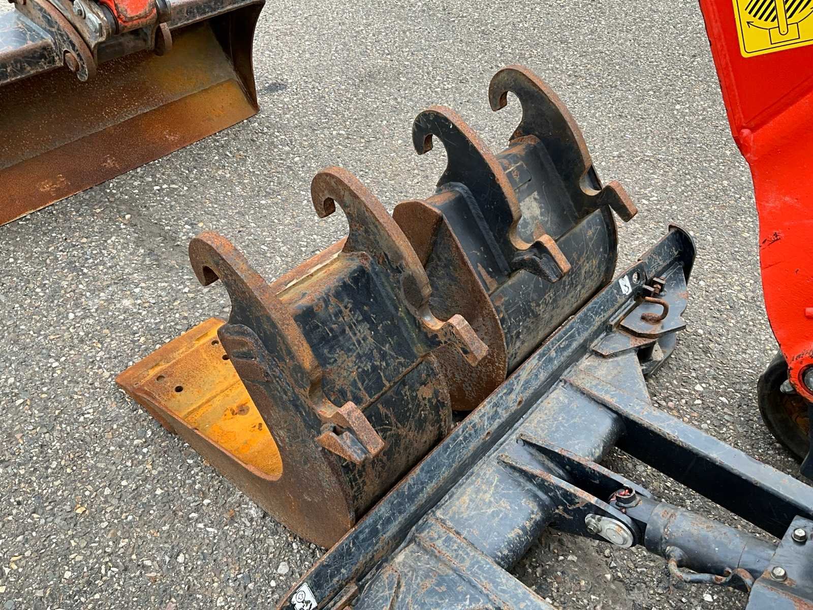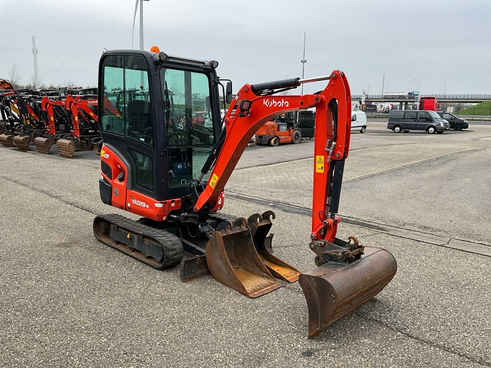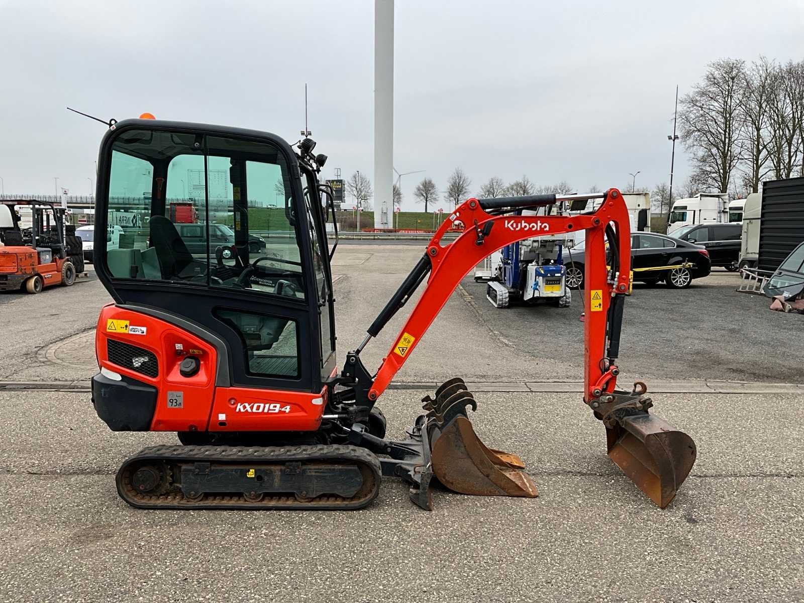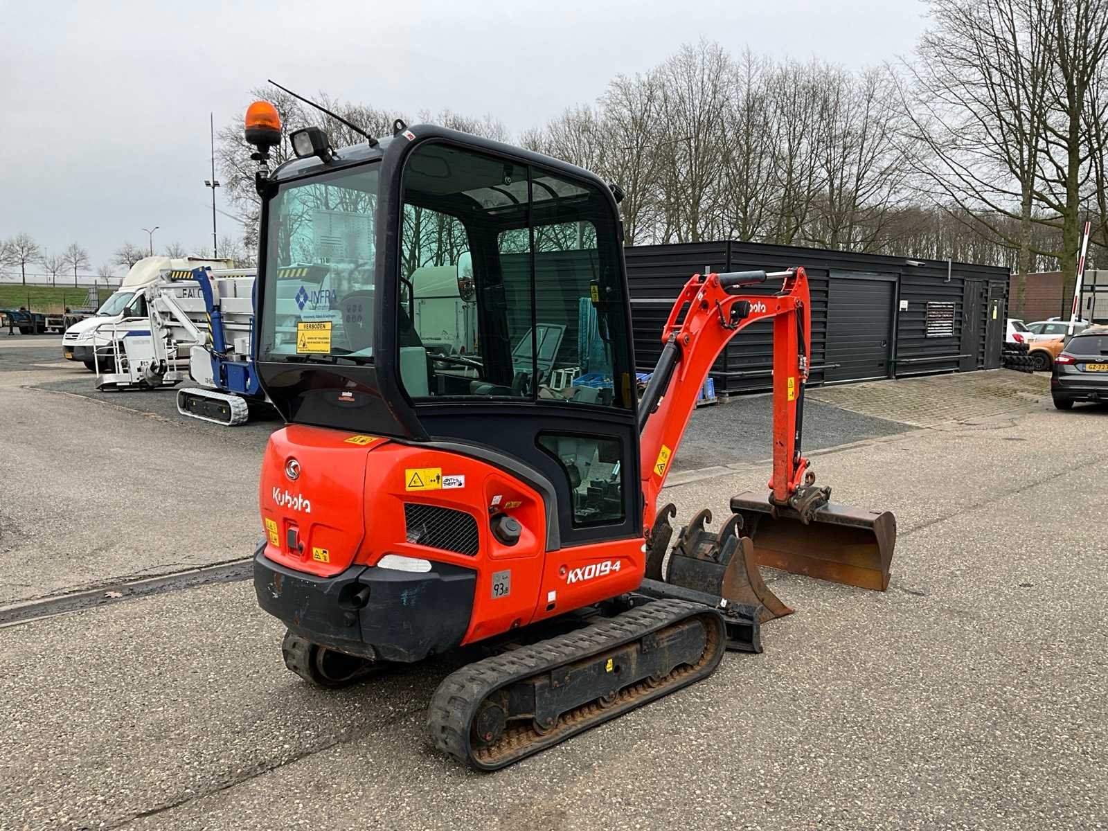 CW05 hydraulische snelwissel, CW05 slotenbak 100cm, CW05 dieplepel 40cm, CW05 banaanbak 24cm, 3e functie voorbereid, verstelbaar rijwerk 99cm t/m 130cm, 2e rijsnelheid, radio, LED lichtbalk voor, kubota anti theft inclusief rode sleutel Nee Merk: Kubota Type: KX019-4 Bouwjaar: 2022 Serienummer: KBCGF22BLNZC76501 Merk motor: Kubota Motorvermogen (kW): 11.6kW Aantal cilinders: 3 Brandstof: Diesel Bedrijfsgewicht: 1855kg Rups breedte: 230mm Afgelezen urenstand: 1772