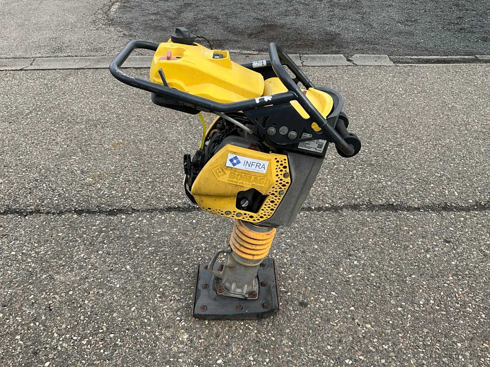 Nee Merk: Bomag Type: BT60 Bouwjaar: 2016 Serienummer: 101541123374 Bedrijfsgewicht: 58kg Afmeting voet l: 330mm Afmeting voet b: 270mm Merk motor: Honda GX R120 Motorvermogen (kW): 2kW Brandstof: Benzine