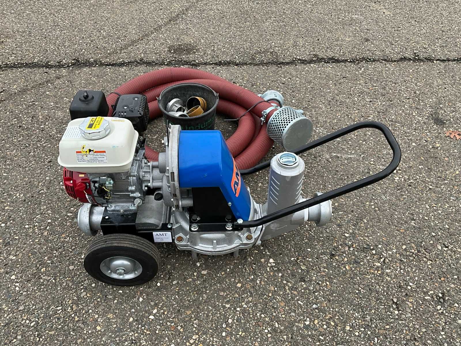 Ongebruikt, Inclusief aanzuigslang met stenenvanger, Honda GX120 benzine motor handgestart Nee Merk: AMT Model: 337G-GRE-96B Lengte: 110cm Breedte: 45cm Hoogte: 60cm