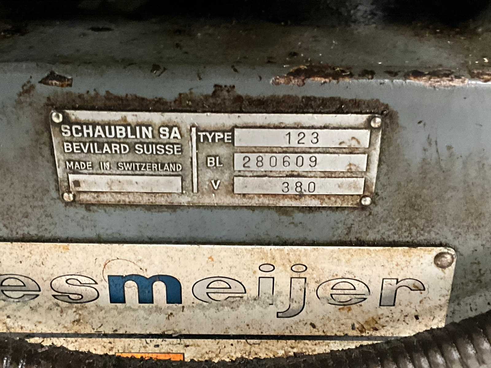 Stafaanvoer van 4400 mm lengte Er zijn geen toereikende hijsmiddelen beschikbaar om dit kavel te laden. Nee Merk: Schaublin Type: 123 Serienummer: 280609 Draailengte: 150mm Draai: 210mm Aantal snelheden: 4 Snelheid van n =: 200rpm Snelheid tot n =: 4500rpm Aantal gereedschapwisselstations: 6 Koelmiddelpomp: true Aansluiting: 380V Afmeting l: 1200mm Afmeting b: 1700mm Afmeting h: 1900mm