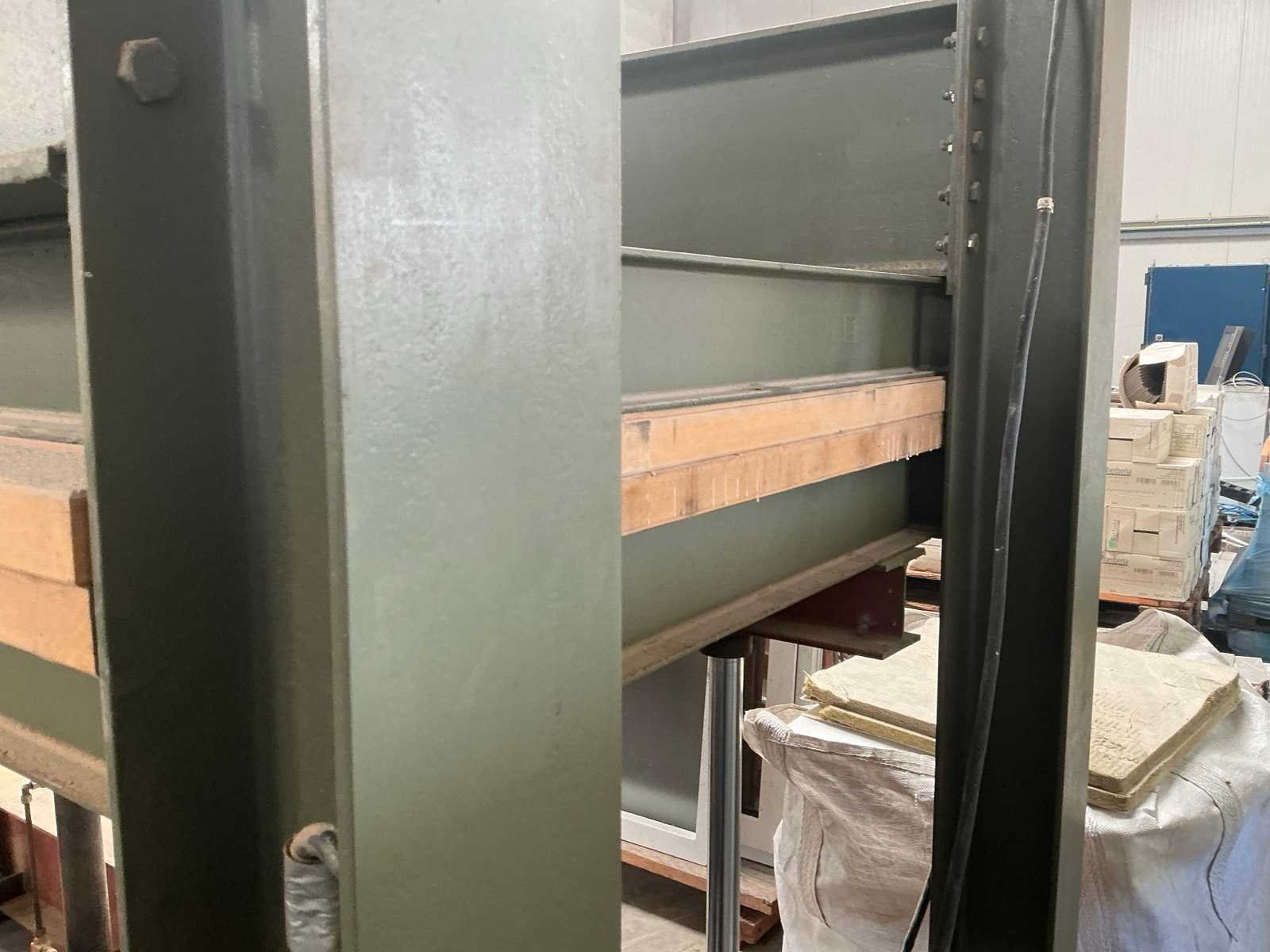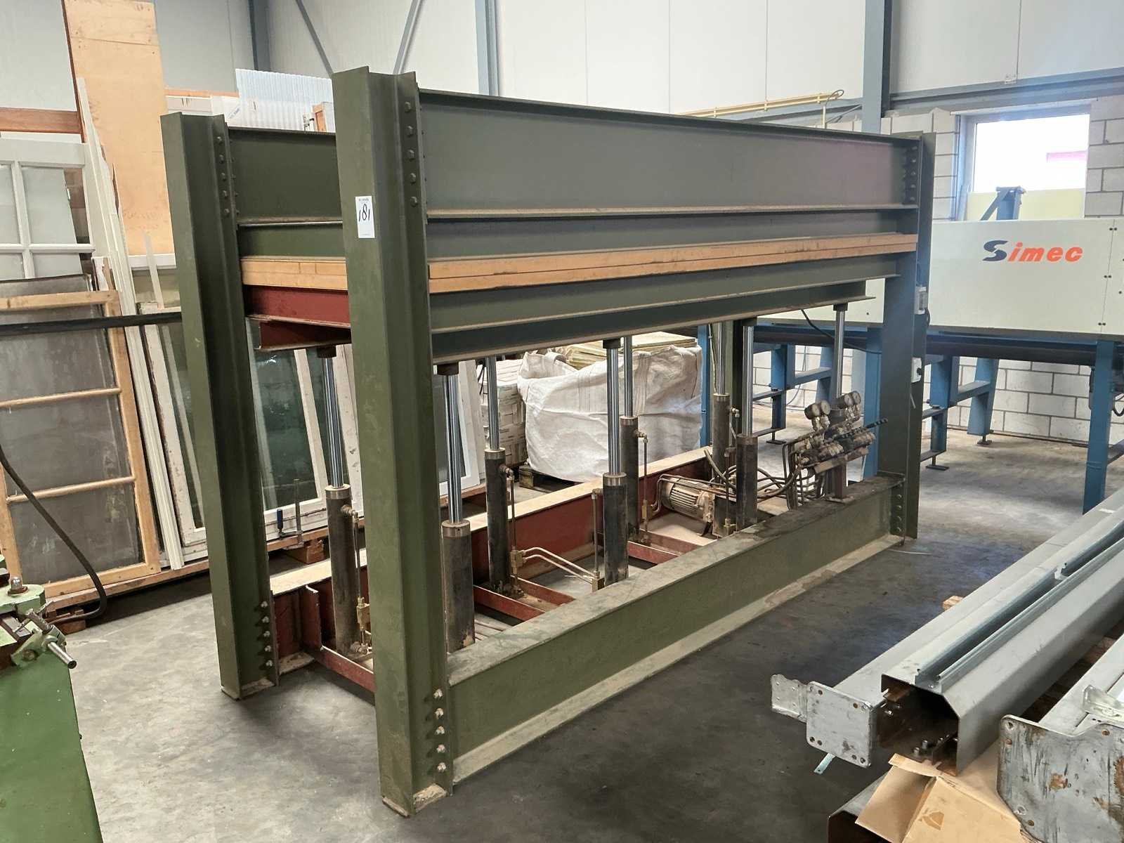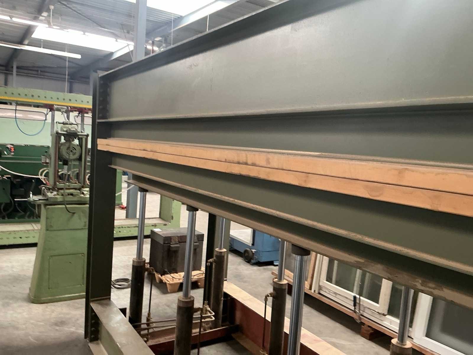 Capaciteit circa 3000x1220mm, persdruk onbekend, 8 afzonderlijk bedienbare cilinders Nee Aantal cilinders: 8 Aansluiting: 400V Afmeting l: 2350mm Afmeting b: 1250mm Afmeting h: 2150mm