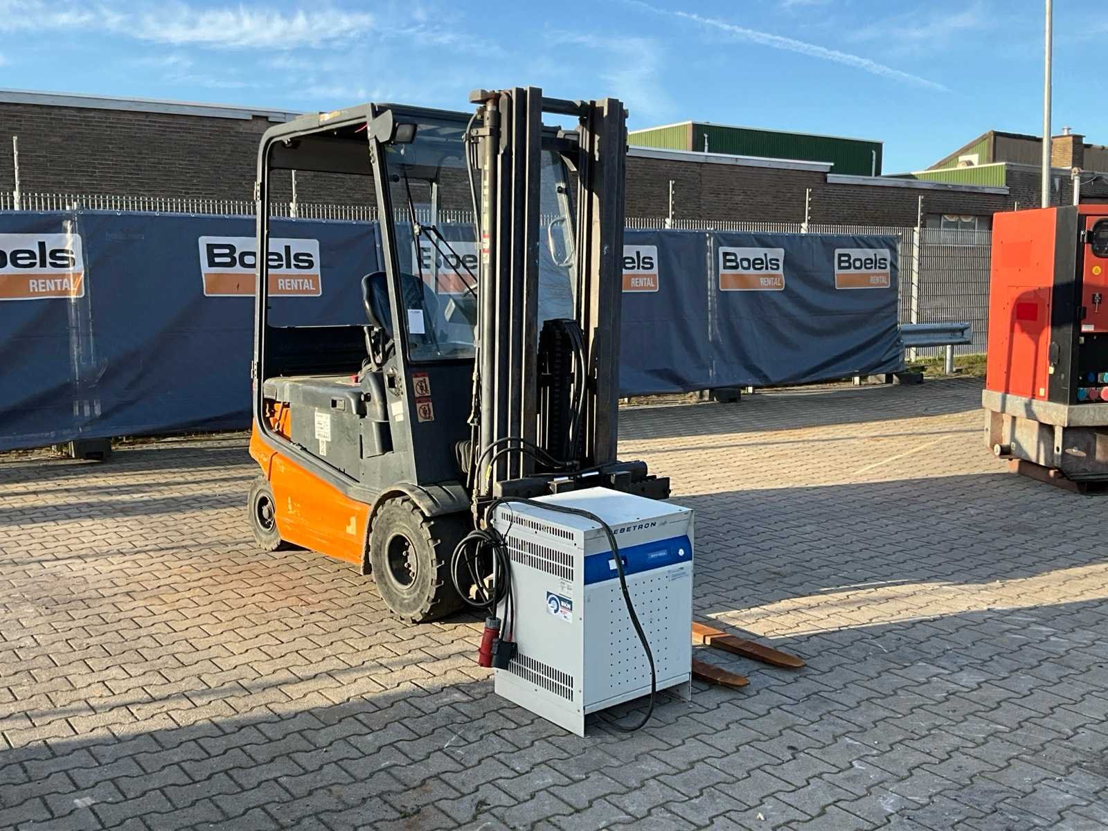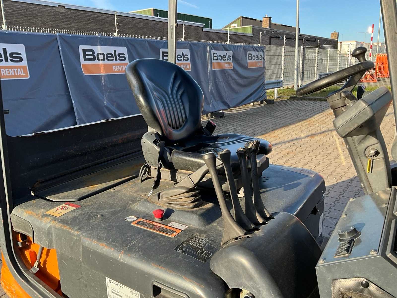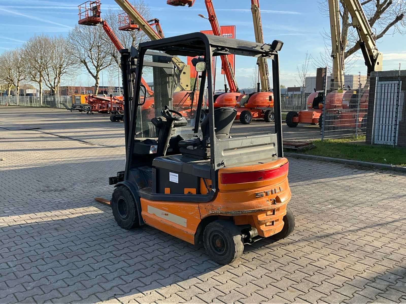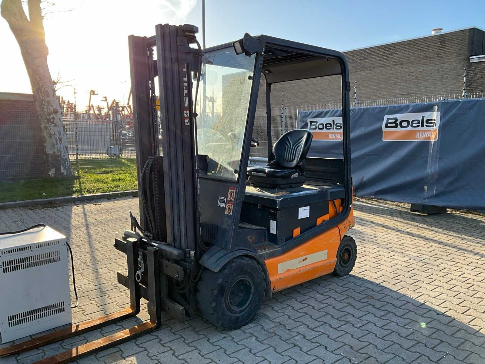 FEM2; working condition; Nee Merk: Still Type: R60-25 Bouwjaar: 2008 Serienummer: 516043000291 Brandstof: Elektrisch Mast: Triple Soort band: Volrubber banden Aantal wielen: 4 Afgelezen urenstand: 9463 Accu lader: true Free-lift: true Side-shift: true Eigen gewicht: 4900kg Hefvermogen: 2450kg Lepellengte: 1000mm Max. hefhoogte: 5000mm Vol rubber banden: true Minimale doorrijhoogte: 2200mm Totale afmeting L: 3500mm Totale afmeting Breedte: 1250mm Totale afmeting Hoogte: 2200mm