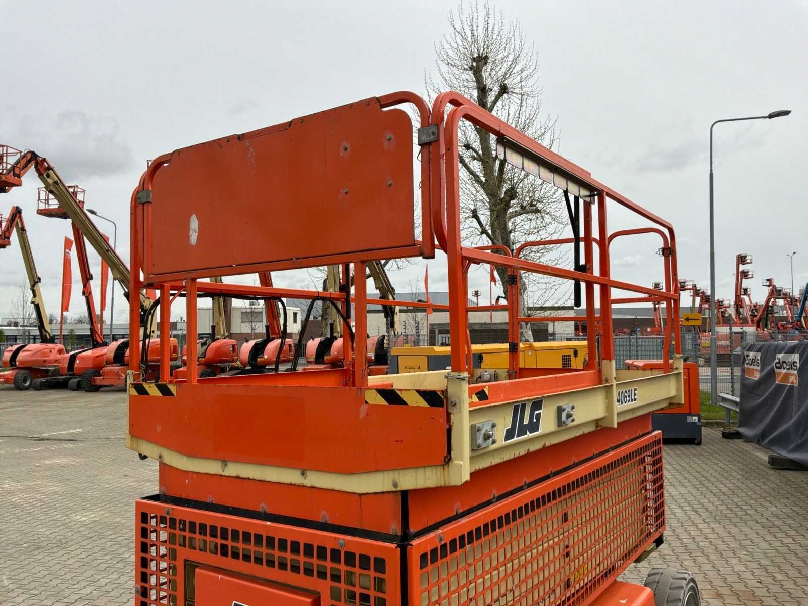 Gebruik: binnen; platform vloerhoogte 12190 mm; uitschuifbaar platform afmeting circa 3800x1650 mm; ingebouwde acculader 230 Volt; kooibediening; 230 Volt stroom aansluiting platform; transporthoogte circa 2050 mm; working condition; Nee Merk: JLG Type: 4069LE Bouwjaar: 2016 Serienummer: 0200254109 Elektrisch: true Schaarhoogwerker: true Werkhoogte: 14190mm Plateau afm. l: 2920mm Plateau afm. b: 1650mm Platform capaciteit: 360kg Accu lader: true Afgelezen urenstand: 276 Eigen gewicht: 5300kg Totale afmeting L: 3250mm Totale afmeting Breedte: 1800mm Totale afmeting Hoogte: 2900mm