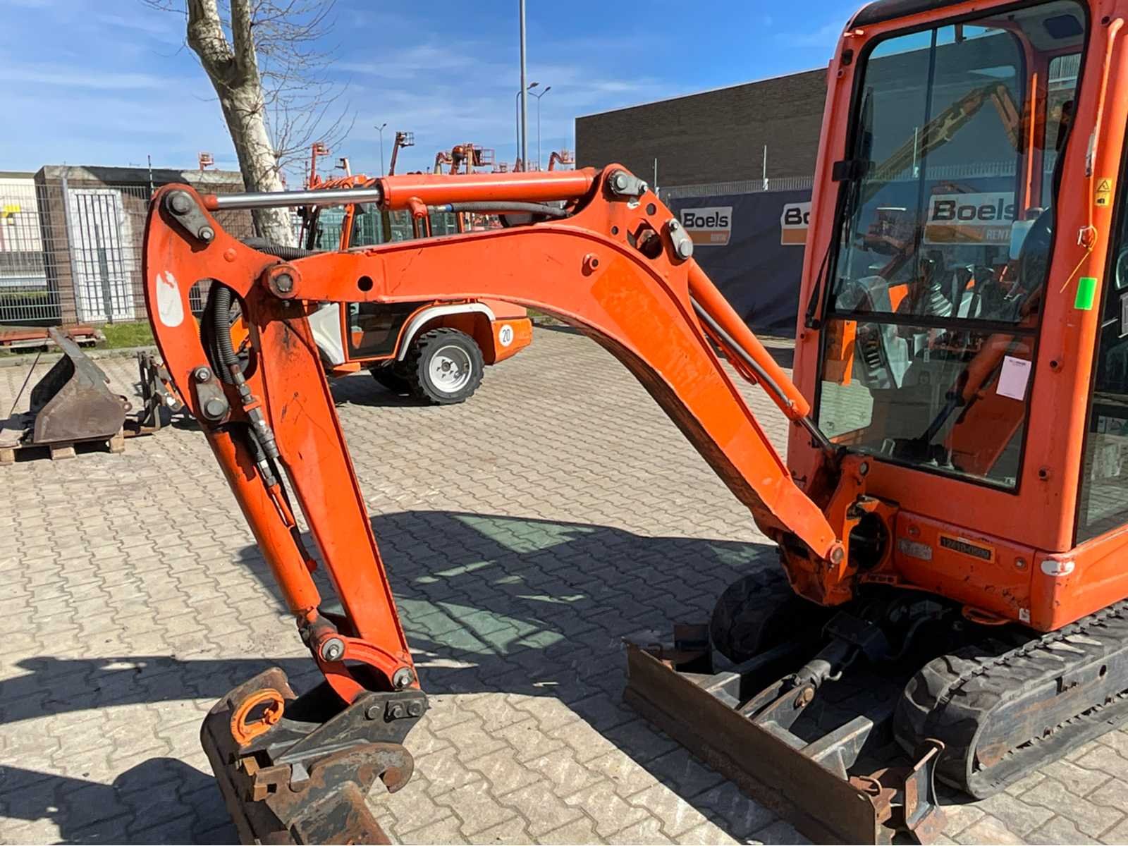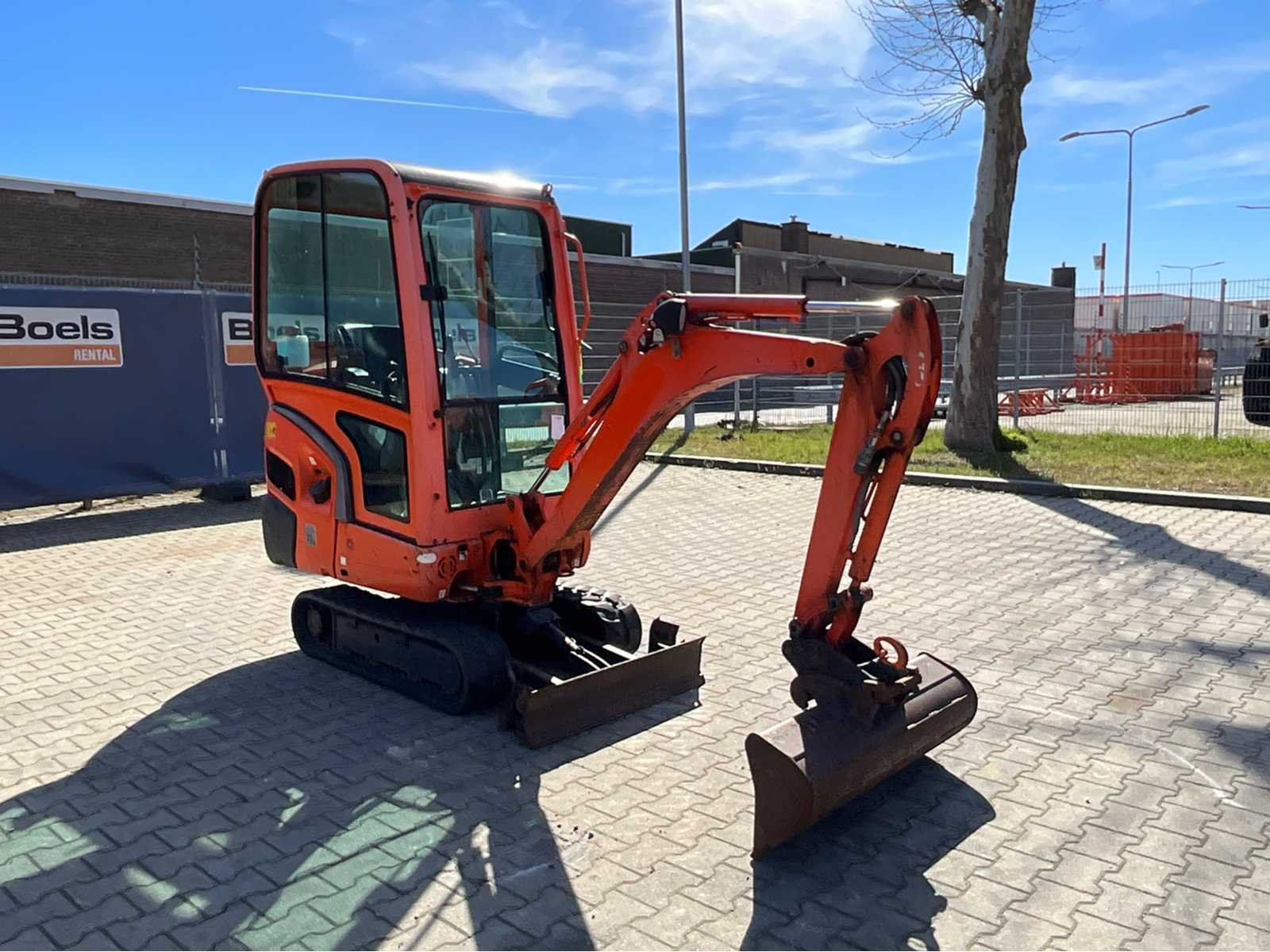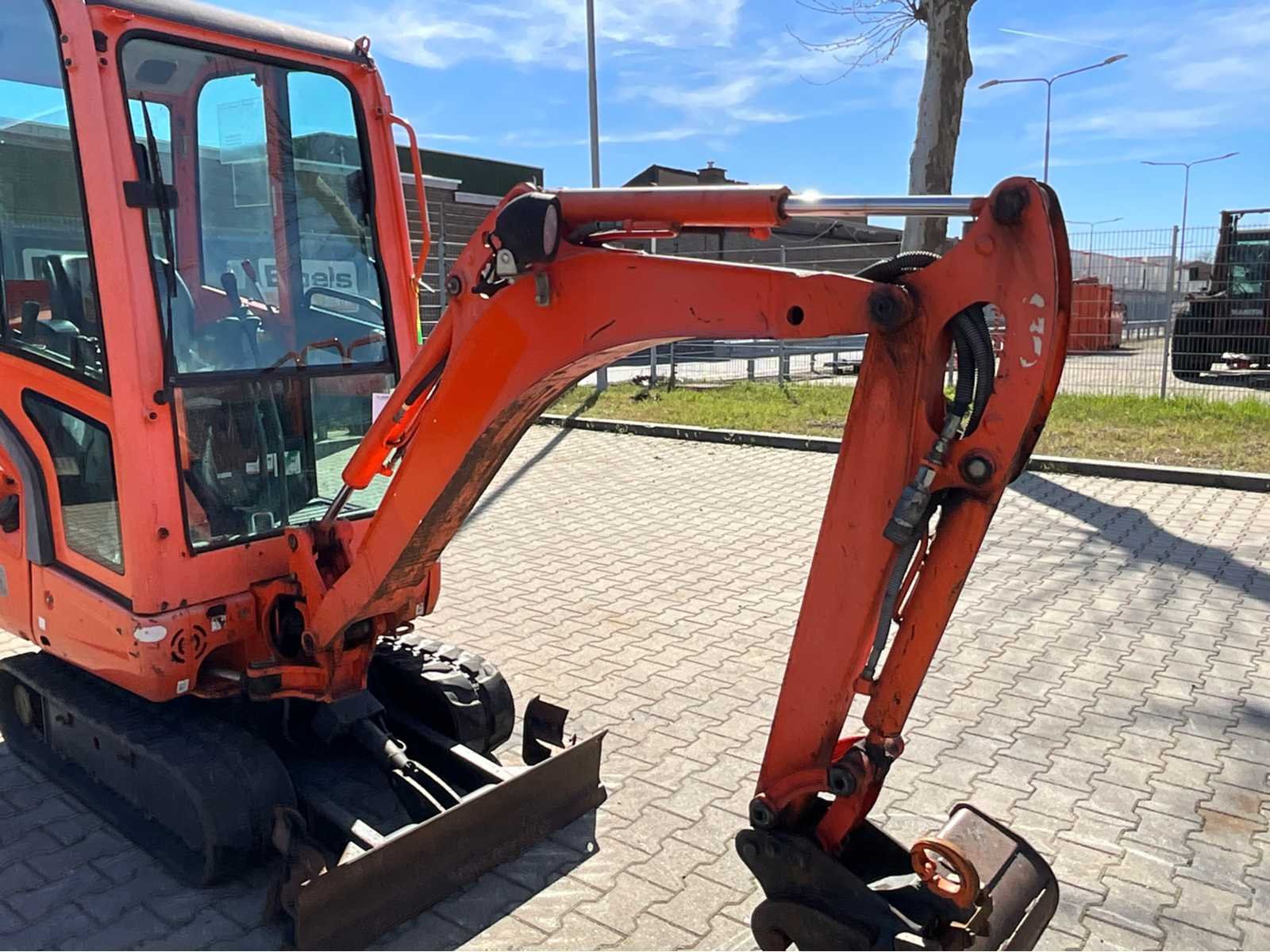 Gesloten cabine; rubber rupsbanden; rupsen hydraulisch in breedte verstelbaar 990 - 1240 mm; maximale uitstorthoogte 2250 mm; extra hydraulische functie; snelwissel; dozerblad breedte 1250 mm voorzien van verlengstuk; working condition; Nee Merk: Kubota Type: KX016-4G Bouwjaar: 2016 Serienummer: WKFRGB1200Z060180 Merk motor: Kubota Motorvermogen (kW): 9.6kW Aantal cilinders: 3 Brandstof: Diesel Max. werkbereik: 3730mm Max. graafdiepte: 2250mm Graafbak afm. l: 300mm Graafbak afm. b: 1000mm Graafbak afm. h: 250mm Rups breedte: 230mm Afgelezen urenstand: 2030 Eigen gewicht: 1625kg Totale afmeting L: 3750mm Totale afmeting Breedte: 1250mm Totale afmeting Hoogte: 2350mm